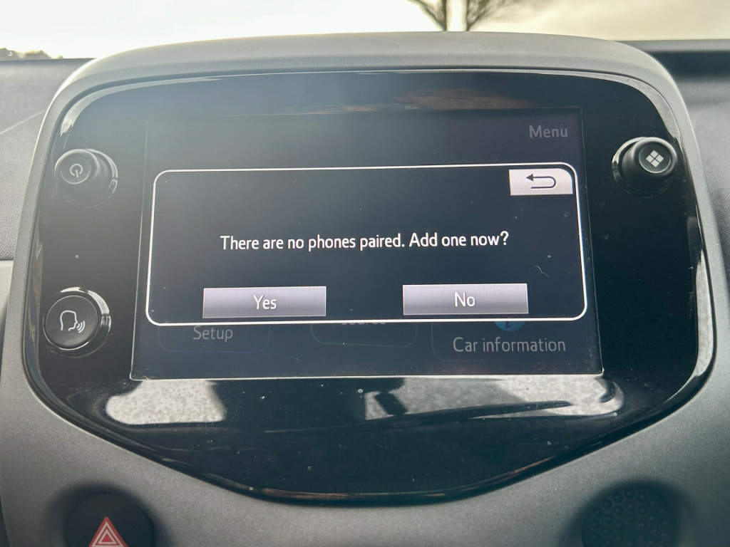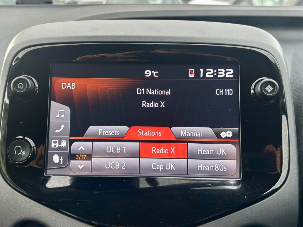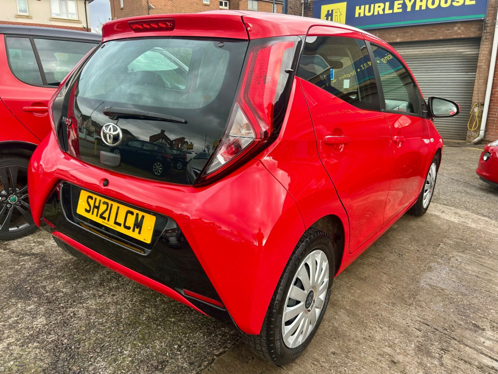 This 2021 Toyota Aygo 1.0 VVT-i x-play Hatchback with only 38000 miles on the clock is the perfect choice for city driving, with its compact size, 5 doors, and 4 seats making it easy to maneuver through urban streets. Fueled by efficient petrol, this Euro 6 compliant vehicle comes with a new MOT and Service before collection and is ULEZ compliant, ensuring it meets the latest emissions standards. Its 15in steel wheels, chrome interior door handles, body-colored door handles and mirrors, and electric front windows add to its sleek and modern design. With the added safety features of Safety Sense, including lane departure alert and pre-collision system, this hatchback guarantees a secure and enjoyable ride. in steel wheels, chrome interior door handles, door handles - body coloured, door mirrors - body colour, electric front windows, electrically adjustable heated door mirrors, integrated rear spoiler, rear window demister, space saver spare wheel, 3-spoke leather steering wheel, 4 seat capacity, body coloured side air vent surround, chrome insert on gear shift, clean air filter, cupholder - front and rear, glovebox, leather gear shift, manual air conditioning, manual rear view mirror, manual tilt steering wheel, rear headrests x2, recline and slide adjustment - driver and front passengers, seats - 50-50 split folding rear, seats - drivers height adjustment, steering wheel - audio and telephone controls, storage - front door pockets, storage - rear door pockets, storage pocket in central console, tonneau cover, unique design air vents with colour surround, vanity mirror on driver and passengers sun visor, 7in x-touch multimedia system, dab digital radio, front 12v power outlet, smartphone integration - powered by pioneer, usb and aux connection, abs - anti lock braking system, emergency brake-light signal - ebs - hazard type, force limiters on rear seatbelts, front passenger airbag on-off switch, front seat belt reminder, hac - hill start assist control, isofix fixing points, rear seat belt reminder, seat belt - pre-tensioners and force limiters, supplemental restraint system - srs - airbags - 6 airbags, toyota safety sense, vsc - vehicle stability control, daytime running lights - led and rear leds, headlights - electronic levelling, led rear brake lights, projector halogen headlight with led tracer lights, electric power steering - eps, reversing camera, tyre pressure warning system
