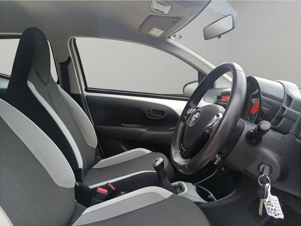 Here we have a striking example of the economical and reliable Toyota AYGO in the eye-catching GreyWhite colour. Having covered only 33172 miles with Full service history, you can be confident this car is in great condition. The car has recently been serviced. The car is ULEZ Compliant. The mileage is warranted and backed up by MOT data. MOT Expiry: 15 October 2026. This Car is HPI Checked as well as cleared for your peace of mind and we will provide you with a digital copy of the full report for free. The Full HPI report is available on our website in the documents section of this advert. It also has as standard a leather steering wheel and leather gear knob which help to lift this car to premium-feeling. The car is surprisingly spacious and the seats are extremely comfortable, making the Toyota Aygo ideal for any kind of journey. The car comes with 12 months AA breakdown cover. If a vehicle's MOT is less than 6 months, a fresh 12 months MOT can be provided. Supplied by us as a used car, with a multi-point detailed inspection of the car to be carried out upon purchase with the customer. We welcome all kinds of inspection/test drive by yourselves or by hiring the services of a professional mechanic before you purchase from us. We are a privately owned dealership based here in the district of East Hertfordshire we strive to deliver the best possible customer experience, but don't take our word for it, read our great reviews! We don't sell cars, we help you find 15in Steel Wheels - 6-Spoke, 3-Spoke Leather Steering Wheel, ABS - Anti Lock Braking System, AM-FM Radio, Air Conditioning, Air Vent Surrounds - Carbon Effect, Airbags - Curtain, Airbags - Driver, Airbags - Front Passenger, Airbags - Front Passenger Cut-Off Switch, Airbags - Front Side, Black Carbon Effect Diffuser, Bluetooth Connectivity, Bluetooth Music Streaming, Body Coloured Door Mirrors, Centre Console - Steel Grey, Clean Air Filter, Cupholders - Front, Cupholders - Rear, Daytime Running Lights - LED, Door Handles - Body Coloured, Driver and Front Passenger Sun Visors, EBS - Emergency Brake Signal, Electric Power Steering - EPS, Electric and Heated Door Mirrors, Front 12V Power Outlet,