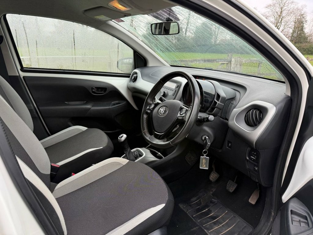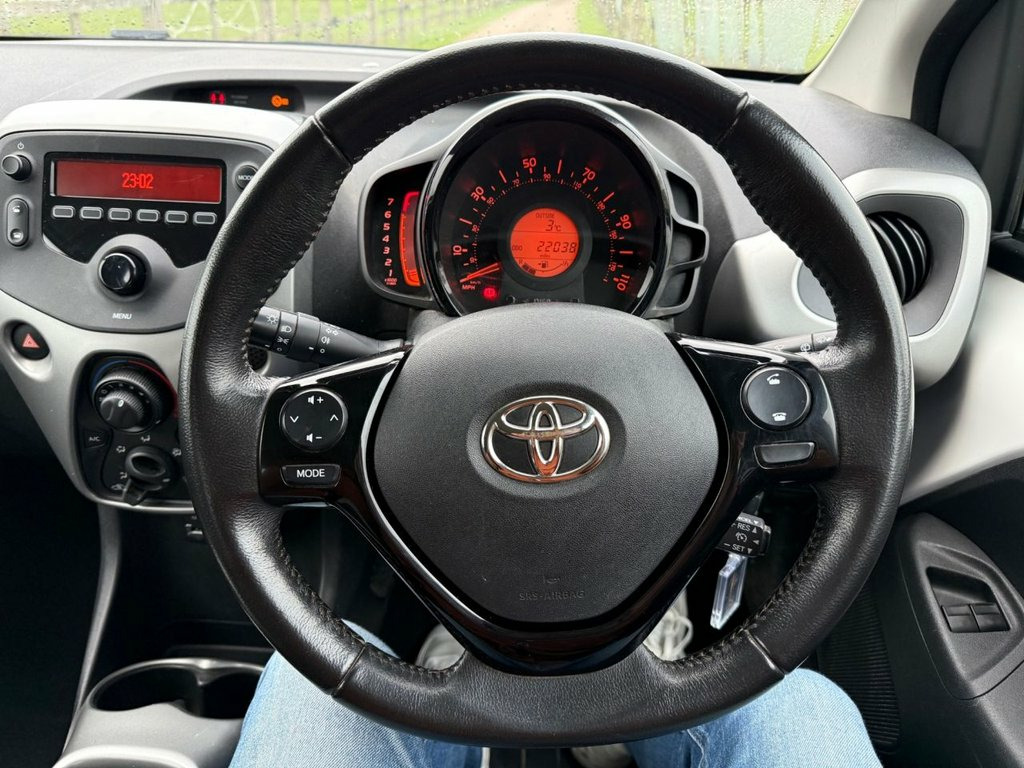 This 2015 Toyota AYGO VVT-i x-play presents an exceptional opportunity with its remarkably low mileage of just 21,942 miles. This well maintained vehicle has had only two previous owners and boasts a clear vehicle history check, offering peace of mind. Under the bonnet, you'll find an efficient 1.0L petrol engine, paired with the x-play trim, providing a practical and enjoyable driving experience. For your convenience, this AYGO includes Bluetooth connectivity for handsfree calls and Bluetooth music streaming, alongside air conditioning to ensure a comfortable journey in all conditions. The AYGO x-play stands out with its impressive fuel economy, achieving a remarkable 69 miles per gallon, which is significantly better than many other vehicles in its class. This efficiency, combined with its low CO2 emissions and low insurance group rating, makes it an incredibly economical choice for everyday driving. These highlights demonstrate how this particular AYGO offers a superior ownership experience, saving you money on running costs and making it an attractive option for budget conscious drivers. 15in Steel Wheels - 6-Spoke, 3-Spoke Leather Steering Wheel, ABS - Anti Lock Braking System, AM-FM Radio, Air Conditioning, Air Vent Surrounds - Carbon Effect, Airbags - Curtain, Airbags - Driver, Airbags - Front Passenger, Airbags - Front Passenger Cut-Off Switch, Airbags - Front Side, Black Carbon Effect Diffuser, Bluetooth Connectivity, Bluetooth Music Streaming, Body Coloured Door Mirrors, Centre Console - Steel Grey, Clean Air Filter, Cupholders - Front, Cupholders - Rear, Daytime Running Lights - LED, Door Handles - Body Coloured, Driver and Front Passenger Sun Visors, EBS - Emergency Brake Signal, Electric Power Steering - EPS, Electric and Heated Door Mirrors, Front 12V Power Outlet,
