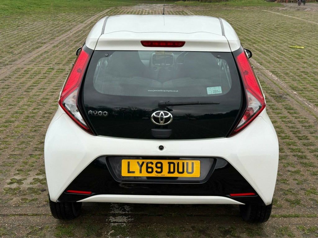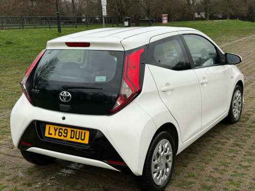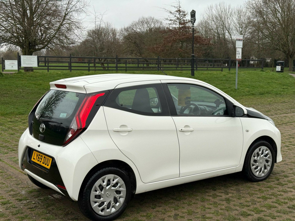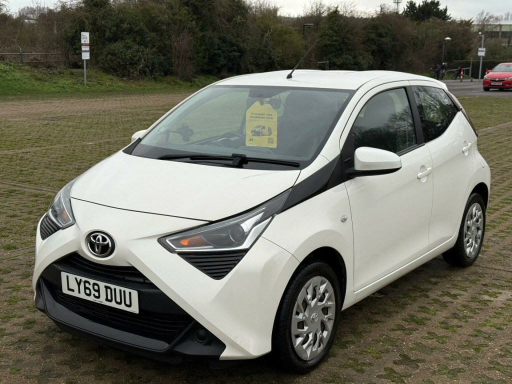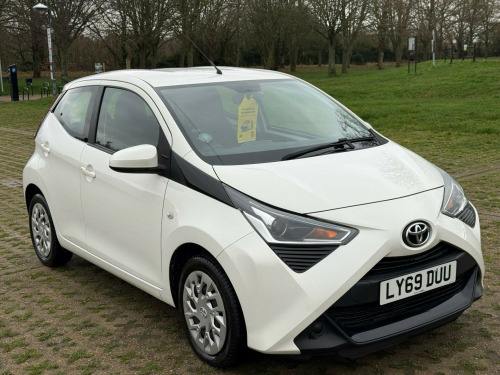 Toyota AYGO 1.0 VVT-i x-play Hatchback 5dr Fuel Type: PetrolTransmission: Automatic (x-shift)Colour: WhiteBody Type: Hatchback 5drHPI Status: ClearULEZ Compliant / ULEZ Free (Euro 6)Specification & FeaturesApple CarPlayTouchscreen Infotainment SystemRear View CameraAir ConditioningAlloy Wheels2 KeysLow Insurance GroupVery EconomicalComfortable SeatsCondition & MechanicalMechanically PerfectEngine-wise powerful (71 ps)Gearbox & suspension very smoothVery well-maintained carOverall ConditionThis AYGO looks & drives brilliant. A modern automatic hatchback with excellent technology and extremely low running costs. Ideal first car or city runaround.Just buy & drive - truly superb throughout.Peace of MindHPI ClearWarranted Mileage3 Months Warranty IncludedFresh Service IncludedFRESH SERVICEFRESH MOTFREE BREAKDOWN COVERNATIONWIDE DELIVERY AVAILABLEPart Exchange WelcomeView by Appointment OnlySummaryA clean, low mileage, high-spec automatic hatchback offering comfort, practicality and economy.First to see will buy. in steel wheels, 3-spoke leather steering wheel, 7in x-touch multimedia system, abs - anti lock braking system, bluetooth connectivity, chrome insert on gear shift, chrome inside door handles, clean air filter, cupholder - front and rear, dab digital radio, daytime running lights - led and rear leds, door handles - body coloured, door mirrors - body colour, electric front windows, electric power steering - eps, electrically adjustable heated door mirrors, emergency brake-light signal - ebs - hazard type, front 12v power outlet, front passenger airbag on-off switch, front seat belt reminder, glovebox, hac - hill start assist control, headlights - electronic levelling, isofix fixing points, integrated rear spoiler, leather gear shift, manual air conditioning, manual rear view mirror, manual tilt steering wheel, projector halogen headlight with led tracer lights, rear headrests x2, rear seat belt reminder, rear window demister, recline and slide adjustment - driver and front passengers, reversing camera, seat belt - pre-tensioners and force limiters, seats - 50-50 split folding rear, seats - drivers height adjustment, space saver spare wheel, steering wheel - audio and telephone controls, storage - front door pockets, storage - rear door pockets, storage pocket in central console, supplemental restraint system - srs - airbags - 6 airbags, tonneau cover, tyre pressure warning system, usb connection, unique design air vents with colour surround, vsc - vehicle stability control