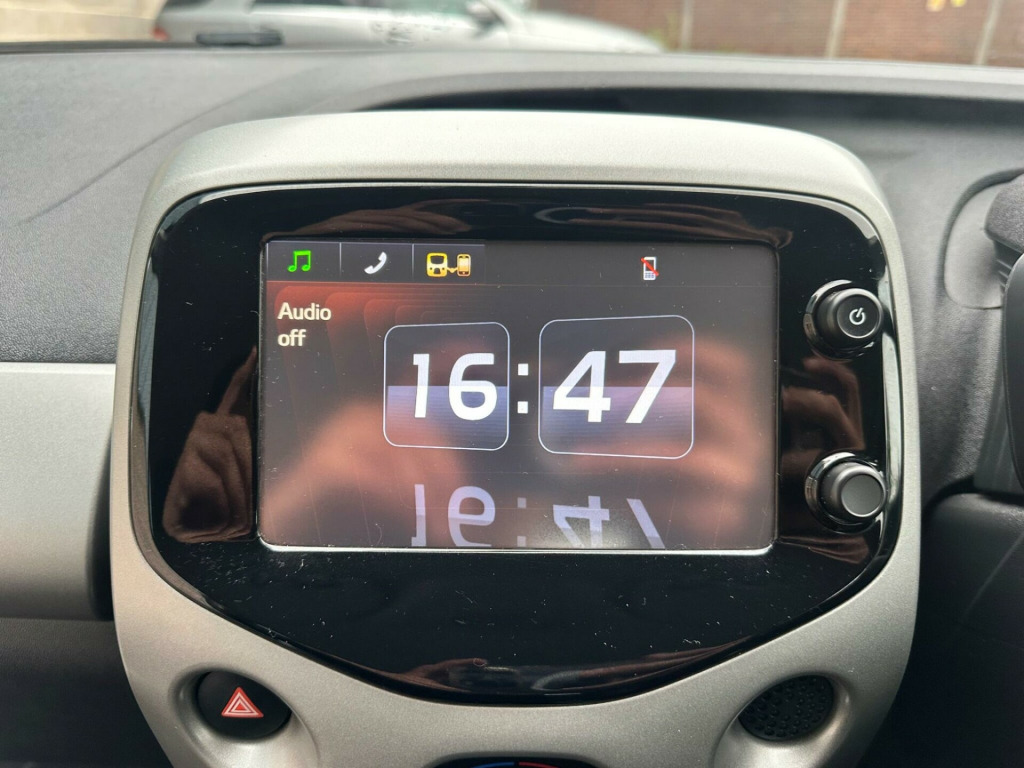 Boasting exceptionally low mileage for its age, this 2018 Toyota AYGO VVT-i x-play presents a superb ownership proposition. With a clear vehicle history check and a full service history, this Euro 6 compliant 1.0L petrol model is ready for its next adventure. The MOT remains valid until July 2026, and it comes with a 3 month warranty for your peace of mind. Inside, you'll find a 7in x-touch multimedia system with Bluetooth connectivity, allowing for seamless music streaming and hands free calls, complemented by manual air conditioning for comfortable journeys. Parking is made easier with the inclusion of a reversing camera and rear parking assistance.This Toyota AYGO stands out with its impressive fuel economy, achieving an excellent 54 miles per gallon, which indicates it is more economical than many similar vehicles. Furthermore, its low insurance group and low CO2 emissions highlight its affordability and environmental consciousness, making it an attractive choice for cost conscious drivers. in steel wheels, 3-spoke leather steering wheel, 7in x-touch multimedia system, abs - anti lock braking system, adjustable rear headrests, bluetooth connectivity, chrome insert on gear shift, chrome inside door handles, clean air filter, cupholder - front and rear, dab digital radio, daytime running lights - led and rear leds, door handles - body coloured, door mirrors - body colour, electric front windows, electric power steering - eps, electrically adjustable heated door mirrors, emergency brake-light signal - ebs - hazard type, front 12v power outlet, front passenger airbag on-off switch, front seat belt reminder, glovebox, hac - hill start assist control, headlights - electronic levelling, isofix fixing points, integrated rear spoiler, leather gear shift, manual air conditioning, manual rear view mirror, manual tilt steering wheel, projector halogen headlight with led tracer lights, rear headrests x2, rear seat belt reminder, rear window demister, recline and slide adjustment - driver and front passengers, reversing camera, seat belt - pre-tensioners and force limiters, seats - 50-50 split folding rear, seats - drivers height adjustment, steering wheel - audio and telephone controls, storage - front door pockets, storage - rear door pockets, storage pocket in central console, supplemental restraint system - srs - airbags - 6 airbags, tonneau cover, tyre pressure warning system, tyre repair kit, usb connection, vsc - vehicle stability control