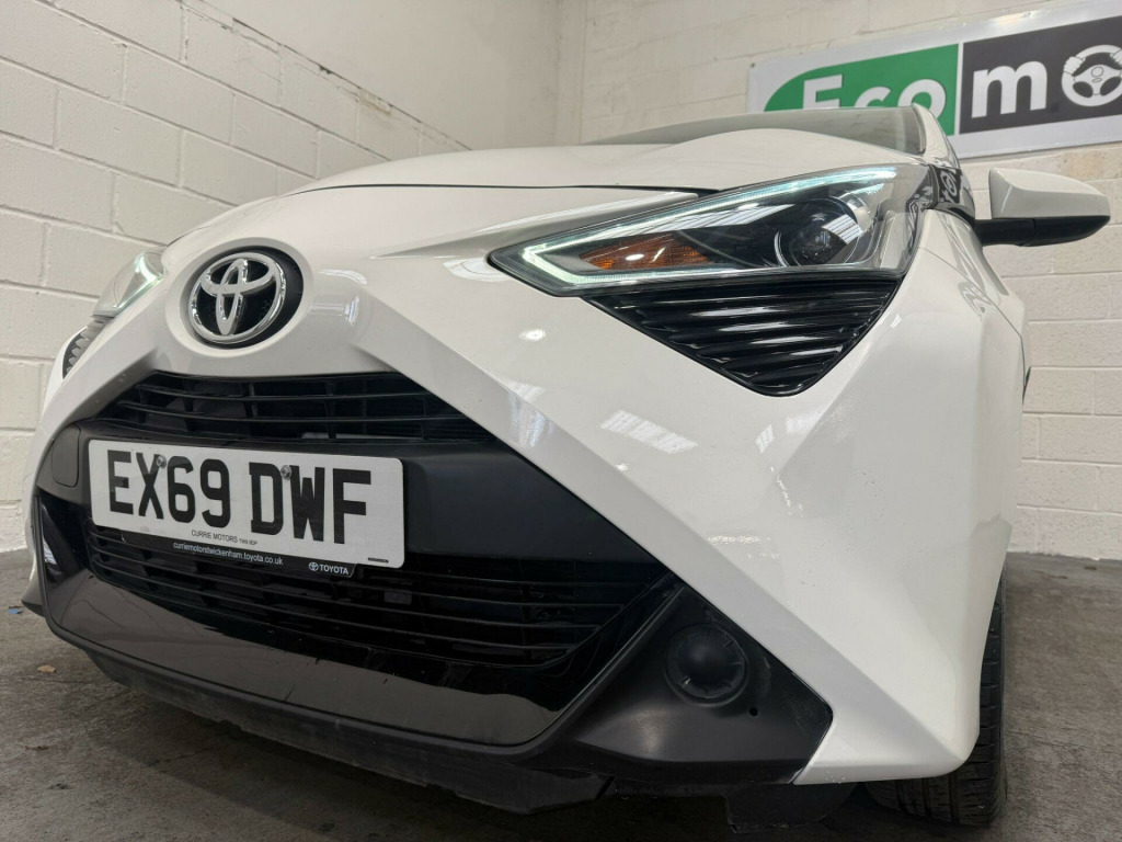 Discover this exceptional 2019 Toyota AYGO VVT-i x-play, boasting an incredibly low mileage of just 1952 miles, making it a truly unique find for its age. This stylish hatchback is powered by an efficient 1.0L Petrol Engine, meeting Euro 6 emission standards. Inside, you'll find the convenient 7in x-touch Multimedia System, complete with Bluetooth connectivity for seamless audio streaming and hands-free calls. Stay comfortable on every journey with manual air conditioning, and manoeuvre with confidence thanks to the integrated reversing camera, offering valuable rear parking assistance.This Toyota AYGO x-play is designed to be economical and affordable to run, highlighted by an impressive fuel economy of 54 miles per gallon. Its low insurance group rating further contributes to its cost effectiveness, making it an attractive option for many drivers. Additionally, its low CO2 emissions indicate a more environmentally friendly performance compared to similar vehicles. These combined highlights demonstrate how this AYGO offers a superior ownership experience, balancing efficiency, technology, and practicality. in steel wheels, 3-spoke leather steering wheel, 7in x-touch multimedia system, abs - anti lock braking system, adjustable rear headrests, bluetooth connectivity, chrome insert on gear shift, chrome inside door handles, clean air filter, cupholder - front and rear, dab digital radio, daytime running lights - led and rear leds, door handles - body coloured, door mirrors - body colour, electric front windows, electric power steering - eps, electrically adjustable heated door mirrors, emergency brake-light signal - ebs - hazard type, front 12v power outlet, front passenger airbag on-off switch, front seat belt reminder, glovebox, hac - hill start assist control, headlights - electronic levelling, isofix fixing points, integrated rear spoiler, leather gear shift, manual air conditioning, manual rear view mirror, manual tilt steering wheel, projector halogen headlight with led tracer lights, rear headrests x2, rear seat belt reminder, rear window demister, recline and slide adjustment - driver and front passengers, reversing camera, seat belt - pre-tensioners and force limiters, seats - 50-50 split folding rear, seats - drivers height adjustment, steering wheel - audio and telephone controls, storage - front door pockets, storage - rear door pockets, storage pocket in central console, supplemental restraint system - srs - airbags - 6 airbags, tonneau cover, tyre pressure warning system, tyre repair kit, usb connection, vsc - vehicle stability control