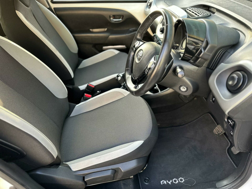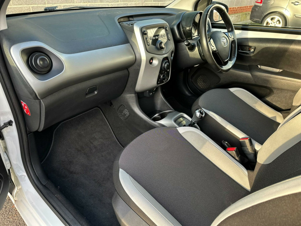 This 2017 Toyota AYGO VVT-i x-play presents an exceptional find with its remarkably low mileage of just 21,300 miles, a significant advantage for its age. This Euro 6-compliant 1.0-litre petrol model boasts a clear vehicle history check and an MOT valid until November 2026, offering peace of mind. Inside, you'll appreciate the convenience of Bluetooth connectivity and the comfort of air conditioning, making every journey more enjoyable.The AYGO x-play stands out with its impressive fuel economy, achieving a remarkable 67 miles per gallon, which is considerably better than many other vehicles in its class. Furthermore, its low insurance group and low CO2 emissions contribute to lower running costs, making it a very economical choice for everyday driving.We offer an Extended comprehensive Parts/ Labour warranty ranging from 3 to 36 months. Over 80 vehicles are in stock; all cars are HPI-checked (clear). We are dedicated to providing the best customer experience before and after your purchase; therefore, Mazz Motors is Highly Rated by our customers' Reviews on ''Auto Trader High RatedAppointments Only!!! in steel wheels, 15in wheel caps, 3-spoke leather steering wheel, abs - anti lock braking system, am-fm radio, air conditioning, air vent surrounds - carbon effect, airbags - curtain, airbags - driver, airbags - front passenger, airbags - front passenger cut-off switch, airbags - front side, black carbon effect diffuser, bluetooth connectivity, body coloured door mirrors, centre console - steel grey, chrome insert on gear shift, chrome inside door handles, clean air filter, cupholders - front, cupholders - rear, dab digital radio, daytime running lights - led, door handles - body coloured, driver and passenger sun visors with mirror, ebs - emergency brake signal, electric power steering - eps, electric and heated door mirrors, front 12v power outlet, front power windows, front x-tension - carbon effect, gear shift surround - steel grey, gloss black front x, glovebox, hac - hill start assist control, headlights - electronic levelling, high mounted rear brake light, isofix child restraint system, immobiliser, interior light, intermittent windscreen wipers, leather gear shift knob, projector halogen headlight with led tracer lights, rear headrests, rear spoiler, reclining front seats, remote central locking, seat belt - pre-tensioners and force limiters, seat belt reminder - front and rear, seats - 50-50 split folding rear, seats - drivers height adjustment, seats - sliding front, steel grey dashboard, steering wheel - audio controls, steering wheel - manual tilt adjustment, storage - central console, storage - front door pockets, storage - rear door pockets, tonneau cover - retractable, tyre pressure warning system, tyre repair kit, usb and aux in, vsc - vehicle stability control