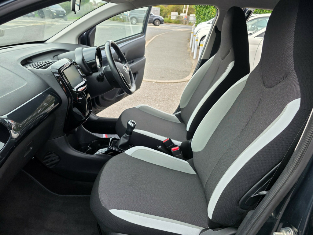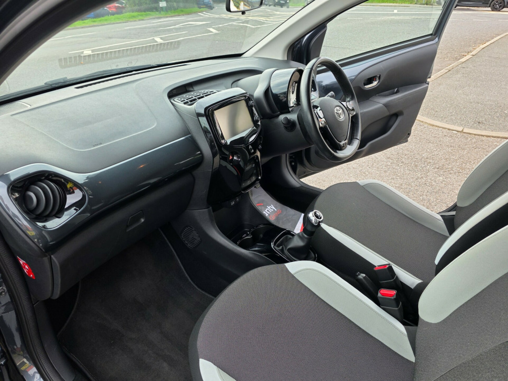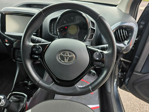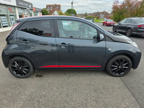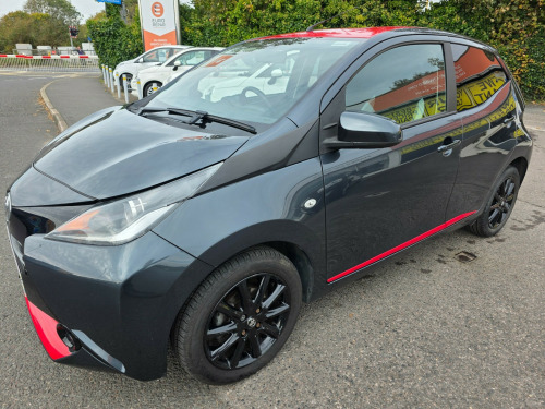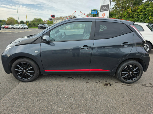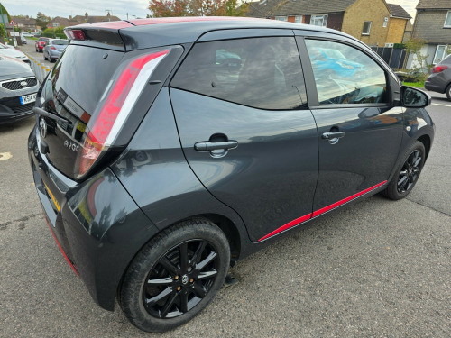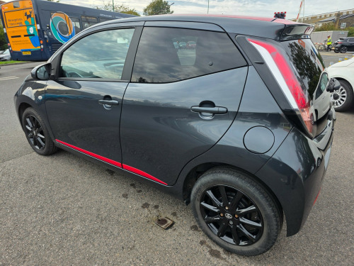 This 2017 Toyota Aygo 1.0 VVT-i x-press Hatchback has only 21725 miles on the clock and runs on Petrol. With an MOT that expires on 17/11/2025, this 5-door, 4-seater vehicle is ULEZ compliant, making it perfect for driving in low emission zones. It includes features such as 15in Alloy Wheels, Chrome Inside Door Handles, Body Coloured Door Handles and Door Mirrors, as well as Electric Front Windows. This Euro 6 car with 68 ps is a reliable and efficient hatchback, ideal for city driving and long journeys alike.ZERO TAX ON THIS VEHICLE !!!! in alloy wheels - 10 spoke - gloss black, chrome inside door handles, door handles - body coloured, door mirrors - body colour, electric front windows, electrically adjustable heated door mirrors, front x-tension - gloss black, gloss black diffuser, gloss black front x, integrated rear spoiler, outburst, rear privacy glass, rear window demister, red front bumper accent, red rear accent, red side sills, roof decals - full roof red, tyre repair kit, 3-spoke leather steering wheel, air vent surrounds - gloss black, automatic air conditioning, body coloured dashboard, centre console - gloss black, chrome insert on gear shift, clean air filter, cupholder - front and rear, gear shift surround - gloss black, glovebox, leather gear shift, manual rear view mirror, rear headrests x2, recline and slide adjustment - driver and front passengers, seats - 50-50 split folding rear, seats - drivers height adjustment, steering wheel - audio and telephone controls, steering wheel - manual tilt adjustment, storage - front door pockets, storage - rear door pockets, storage pocket in central console, tonneau cover, abs - anti lock braking system, ebs - emergency brake signal, front passenger airbag on-off switch, front seat belt reminder, hac - hill start assist control, isofix fixing points, rear seat belt reminder, remote central locking, seat belt - pre-tensioners and force limiters, supplemental restraint system - srs - airbags - 6 airbags, vsc - vehicle stability control, dab digital radio, front 12v power outlet, usb connection, x-touch 7in multimedia touch screen and reversing camera, daytime running lights - led, dusk sensing headlights, front fog lights, headlights - electronic levelling, projector halogen headlight with led tracer lights, electric power steering - eps, reversing camera, speed limiter, tyre pressure warning system