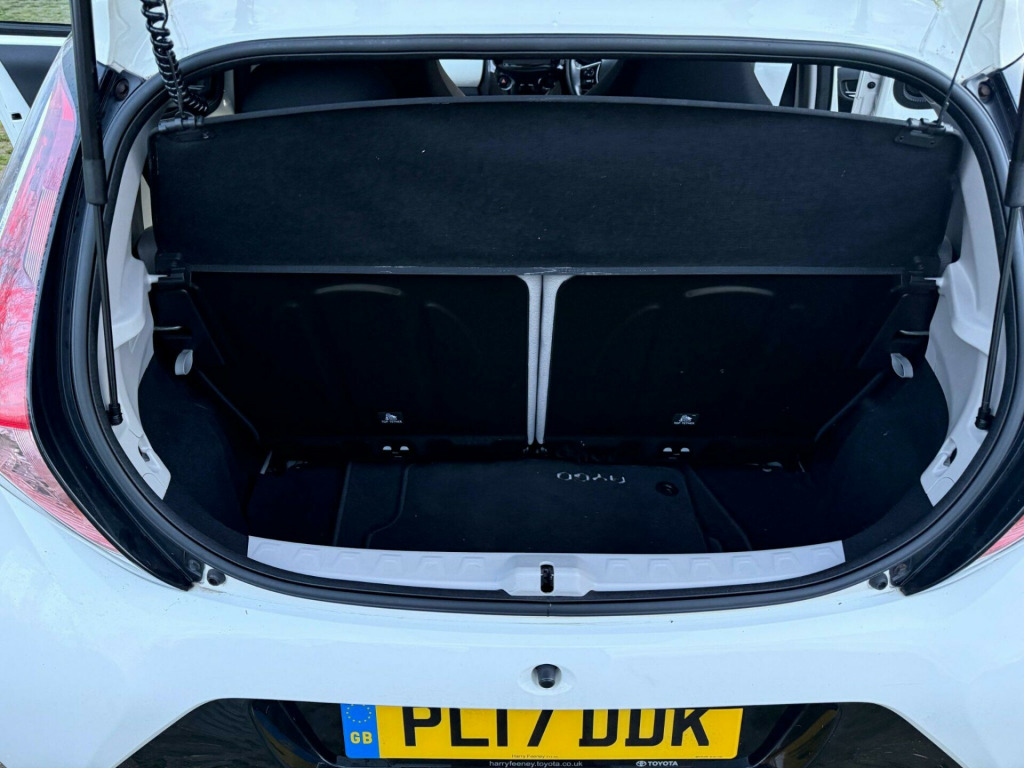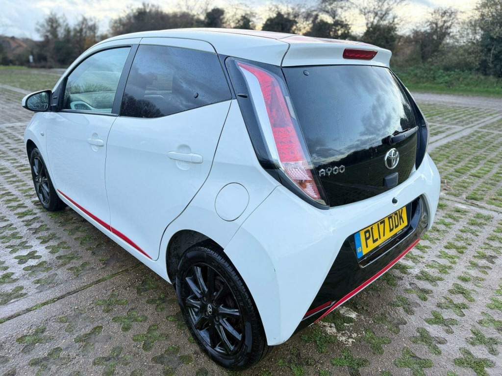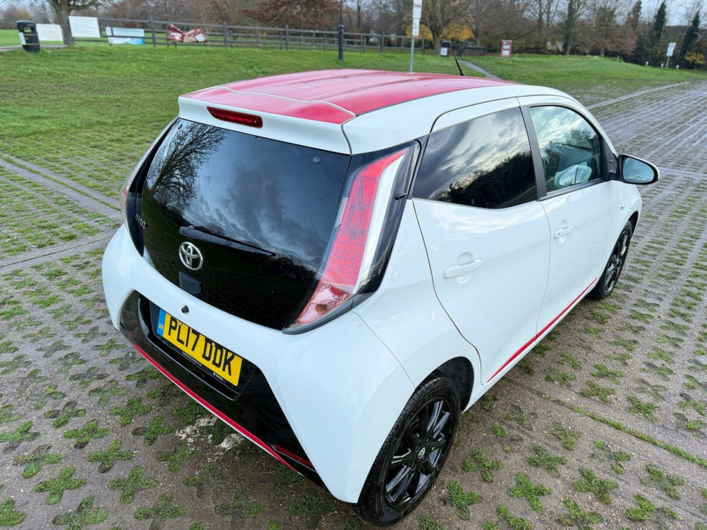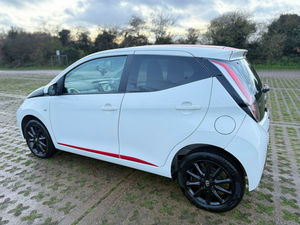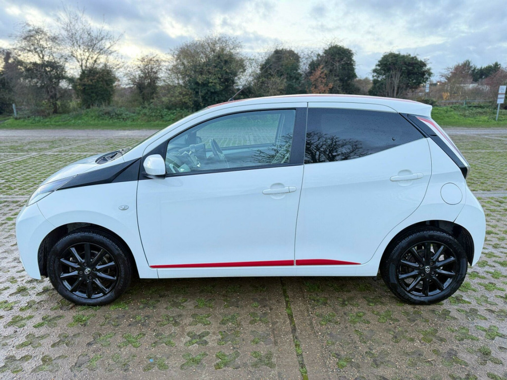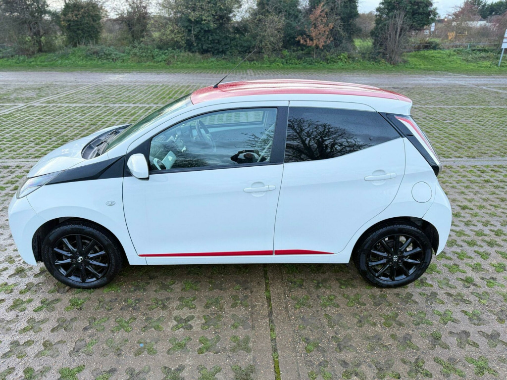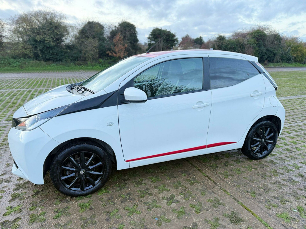 Toyota AYGO 1.0 VVT-i x-press Hatchback 5dr Petrol Manual Euro 6 (68 ps)HIGHLIGHTSParking CameraBluetoothLocking Wheel Nut KeyAlloy WheelsAir ConditioningHPI ClearWarranted MileageULEZ Free3 Months Warranty Included (Extendable up to 2 Years)Mechanically PerfectEngine-wise PowerfulGearbox & Suspension Very SmoothVery Well MaintainedComfortable SeatsLow InsuranceVery EconomicalLooks & Drives SuperbJust Buy & DriveFirst to See Will BuyView By Appointment OnlyPart Exchange WelcomeFREE BREAKDOWN COVER NATIONWIDE DELIVERY AVAILABLE in alloy wheels - 10 spoke - gloss black, 3-spoke leather steering wheel, abs - anti lock braking system, air vent surrounds - gloss black, automatic air conditioning, body coloured dashboard, centre console - gloss black, chrome insert on gear shift, chrome inside door handles, clean air filter, cupholder - front and rear, dab digital radio, daytime running lights - led, door handles - body coloured, door mirrors - body colour, dusk sensing headlights, ebs - emergency brake signal, electric front windows, electric power steering - eps, electrically adjustable heated door mirrors, front 12v power outlet, front fog lights, front passenger airbag on-off switch, front seat belt reminder, front x-tension - gloss black, gear shift surround - gloss black, gloss black diffuser, gloss black front x, glovebox, hac - hill start assist control, headlights - electronic levelling, isofix fixing points, integrated rear spoiler, leather gear shift, manual rear view mirror, outburst, projector halogen headlight with led tracer lights, rear headrests x2, rear privacy glass, rear seat belt reminder, rear window demister, recline and slide adjustment - driver and front passengers, red front bumper accent, red rear accent, red side sills, remote central locking, reversing camera, roof decals - full roof red, seat belt - pre-tensioners and force limiters, seats - 50-50 split folding rear, seats - drivers height adjustment, speed limiter, steering wheel - audio and telephone controls, steering wheel - manual tilt adjustment, storage - front door pockets, storage - rear door pockets, storage pocket in central console, supplemental restraint system - srs - airbags - 6 airbags, tonneau cover, tyre pressure warning system, tyre repair kit, usb connection, vsc - vehicle stability control, x-touch 7in multimedia touch screen and reversing camera