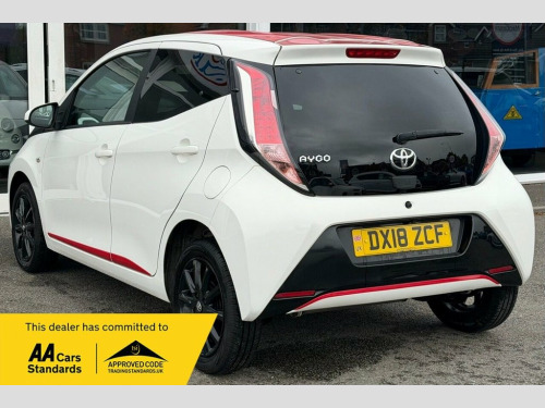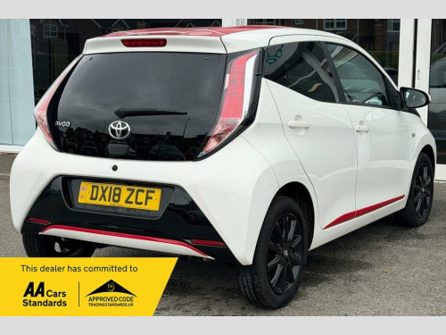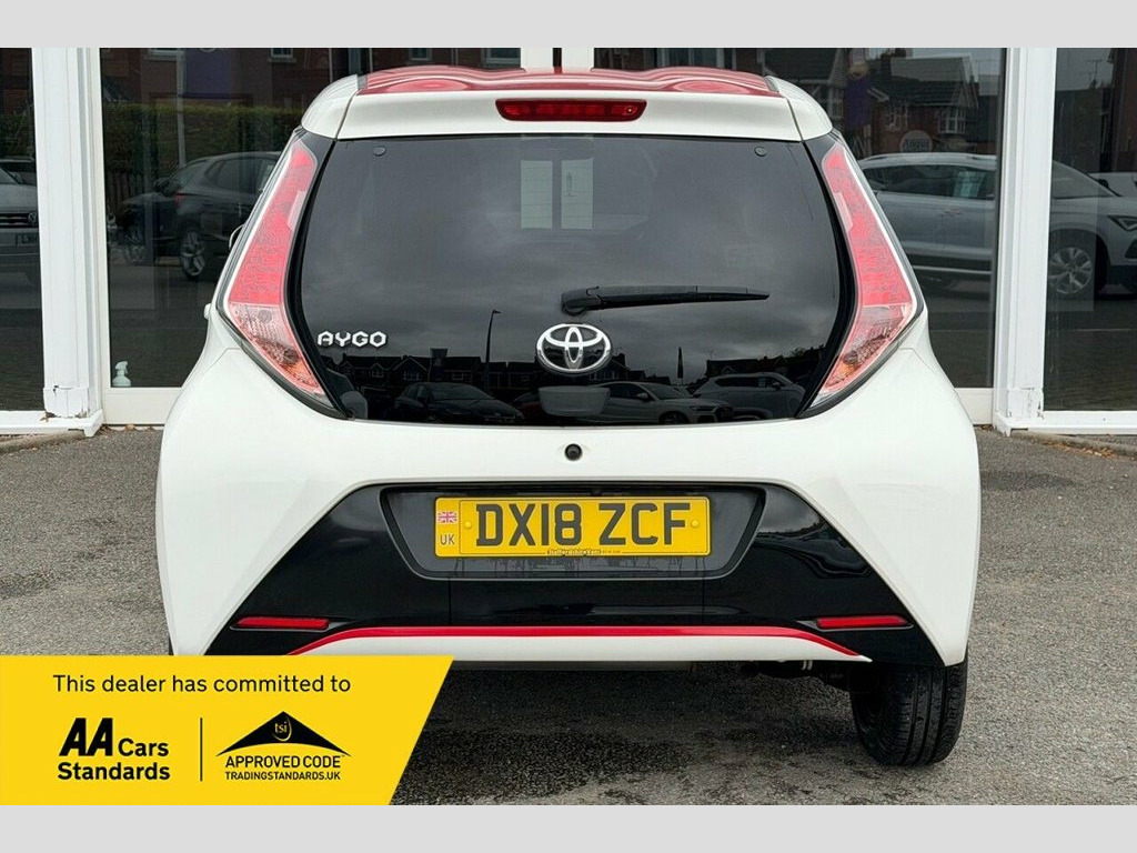 With an excellent service history and MOT valid until August 2026, this 2018 Toyota AYGO VVT-i x-press offers excellent peace of mind. This Euro 6 compliant, 1.0L petrol model comes with a 3 month warranty and was last serviced on 30th July 2025 at 46,379 miles. Inside, you'll find automatic air conditioning with climate control, an x-touch 7 inch multimedia touch screen complete with Bluetooth and a reversing camera for easy parking. Dusk sensing headlights automatically illuminate when needed, adding to the convenience. This Toyota AYGO x-press stands out with its impressive fuel economy, achieving a remarkable 69 miles per gallon, which is better than many other vehicles in its class. Furthermore, its low CO2 emissions and low insurance group rating mean that running costs are kept to a minimum, making it an economical choice for everyday driving. ========= Specification: x-touch 7in Multimedia Touchscreen Reversing Camera LED Daytime Running Lights Automatic Air Conditioning 15in Gloss Black Alloy Wheels Gloss Black Interior Trim Rear Privacy Glass Roof Decals – Red Full Roof Projector Halogen Headlights Hill Start Assist Control (HAC) 50-50 Split Folding Rear Seats Leather Steering Wheel & Gear Shift DAB Digital Radio + USB Connection ========= Service History: 24/02/2021 - 12,272 miles - Independent 07/03/2022 - 19,282 miles - Independent 20/02/2023 - 29,145 miles - Independent 26/03/2024 - 38,497 miles - Independent 30/07/2025 - 46,379 miles - Ind 15in Alloy Wheels - 10 Spoke - Gloss Bla, 3-Spoke Leather Steering Wheel, ABS - Anti Lock Braking System, Air Vent Surrounds - Gloss Black, Automatic Air Conditioning, Body Coloured Dashboard, Centre Console - Gloss Black, Chrome Insert on Gear Shift, Chrome Inside Door Handles, Clean Air Filter, Cupholder - Front and Rear, DAB Digital Radio, Daytime Running Lights - LED, Door Handles - Body Coloured, Door Mirrors - Body Colour, Dusk Sensing Headlights, EBS - Emergency Brake Signal, Electric Front Windows, Electric Power Steering - EPS, Electrically Adjustable Heated Door Mirr, Front 12V Power Outlet, Front Fog Lights, Front Passenger Airbag On-Off Switch, Front Seat Belt Reminder, Front x-t