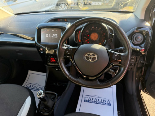 Toyota Aygo 1.0 VVT-i X-Press – Low Miles | Reverse Camera | Great Spec Petrol | Manual | Euro 6 | 68 PS | 46,835 Miles | MOT Until 07-10-2026 This Toyota Aygo 1.0 VVT-i X-Press is a smart, low-mileage example of Toyota's ultra-reliable and economical city hatchback. With just 46,835 miles from new, two former keepers, and four services up to 42k, it has been well maintained throughout. Powered by the efficient 1.0-litre VVT-i petrol engine producing 68 PS, it delivers great fuel economy, low insurance costs, and easy-to-drive performance. Being Euro 6 compliant, it's perfect for city driving and clean-air zones. Finished in black with a dark cloth interior, this X-Press model comes equipped with a touchscreen infotainment system, Bluetooth, a reverse camera, and all the stylish details that make the Aygo such a popular choice. A clean, well-kept example of the Toyota Aygo — offering reliability, low running costs, and plenty of modern features. 2017 (67) TOYOTA AYGO 1.0 VVT-i x-press Hatchback 5dr is offered to you for sale in Pudsey, Leeds, finished in black TOYOTA AYGO 1.0 VVT-i x-press Hatchback 5dr is one of many handpicked used cars that used car dealer, Catalina of Stanningley, Pudsey, Leeds have available for sale 15in Alloy Wheels - 10 Spoke - Gloss Bla, 3-Spoke Leather Steering Wheel, ABS - Anti Lock Braking System, Air Vent Surrounds - Gloss Black, Automatic Air Conditioning, Body Coloured Dashboard, Centre Console - Gloss Black, Chrome Insert on Gear Shift, Chrome Inside Door Handles, Clean Air Filter, Cupholder - Front and Rear, DAB Digital Radio, Daytime Running Lights - LED, Door Handles - Body Coloured, Door Mirrors - Body Colour, Dusk Sensing Headlights, EBS - Emergency Brake Signal, Electric Front Windows, Electric Power Steering - EPS, Electrically Adjustable Heated Door Mirr, Front 12V Power Outlet, Front Fog Lights, Front Passenger Airbag On-Off Switch, Front Seat Belt Reminder, Front x-t