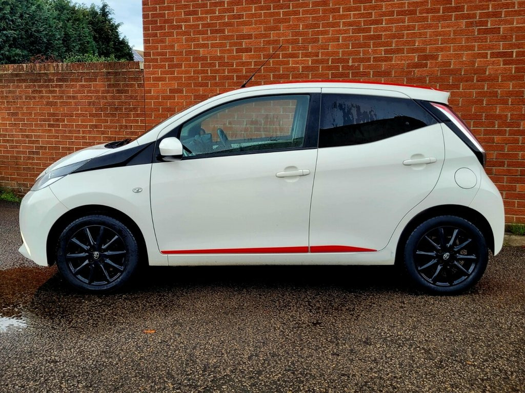 BETTER PHOTOS TO FOLLOW ONCE VALETED ......... I've a few Aygo's in stock, but this is defiantly the funkiest. It has lovely low miles, great spec and is in the best selling colour, Because of It's low running costs, it appeals to all ages and genders, but especially to the younger ones as the insurance cost is one of the lowest. Spec includes -- Air con, Media system with Parking reverse camera, DAB Radio & Blue tooth / USB & AUX phone connection, . ANY INSPECTION MORE THAN WELCOME, 15in Alloy Wheels - 10 Spoke - Gloss Bla, 3-Spoke Leather Steering Wheel, ABS - Anti Lock Braking System, Air Vent Surrounds - Gloss Black, Automatic Air Conditioning, Body Coloured Dashboard, Centre Console - Gloss Black, Chrome Insert on Gear Shift, Chrome Inside Door Handles, Clean Air Filter, Cupholder - Front and Rear, DAB Digital Radio, Daytime Running Lights - LED, Door Handles - Body Coloured, Door Mirrors - Body Colour, Dusk Sensing Headlights, EBS - Emergency Brake Signal, Electric Front Windows, Electric Power Steering - EPS, Electrically Adjustable Heated Door Mirr, Front 12V Power Outlet, Front Fog Lights, Front Passenger Airbag On-Off Switch, Front Seat Belt Reminder, Front x-t