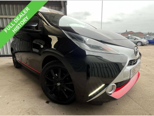 Moto Vation Car Sales are offering this AUTOMATIC Toyota Aygo in a desirable colour- Black with a colour combo interior. Low miles for the age- 72K, it is clear it has been loved. Would make a great first time car with its low running and insurance costs. Supplied with a Full Years MOT until 22/10/26 and Full Main Dealer Service History attached with 8 stamps- last at 72K in 9/25. Bosting a great specification including a Multi Functional Steering Wheel, AUX, USB, Bluetooth, Black Alloys, Reverse Camera, and DAB. £195 Annual Tax. Please confirm with a Sales Executive the amount of keys this vehicle comes with. All of our vehicles come with a 3 months Nationwide warranty and a 12 months basic AA breakdown cover. Please read our reviews! Please note- the above vehicle specification is confirmed and correct. The vehicle specification listed elsewhere may sometimes be inaccurate so please check with the Sales team when enquiring to clarify this prior to purchase. Bold Black, 15in Alloy Wheels - 10 Spoke - Machined , 15in Alloy Wheels - 10 Spoke - Gloss Bla, 3-Spoke Leather Steering Wheel, ABS - Anti Lock Braking System, Air Vent Surrounds - Gloss Black, Automatic Air Conditioning, Body Coloured Dashboard, Centre Console - Gloss Black, Chrome Insert on Gear Shift, Chrome Inside Door Handles, Clean Air Filter, Cupholder - Front and Rear, DAB Digital Radio, Daytime Running Lights - LED, Door Handles - Body Coloured, Door Mirrors - Body Colour, Dusk Sensing Headlights, EBS - Emergency Brake Signal, Electric Front Windows, Electric Power Steering - EPS, Electrically Adjustable Heated Door Mirr, Front 12V Power Outlet, Front Fog Lights, Front Passenger Air