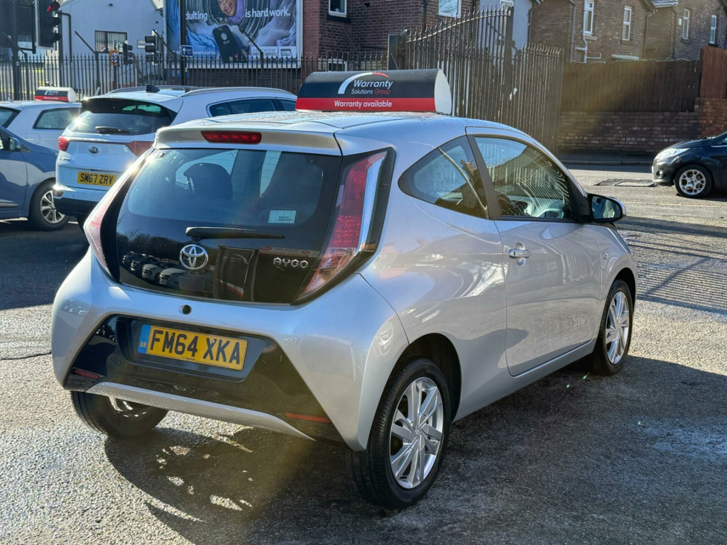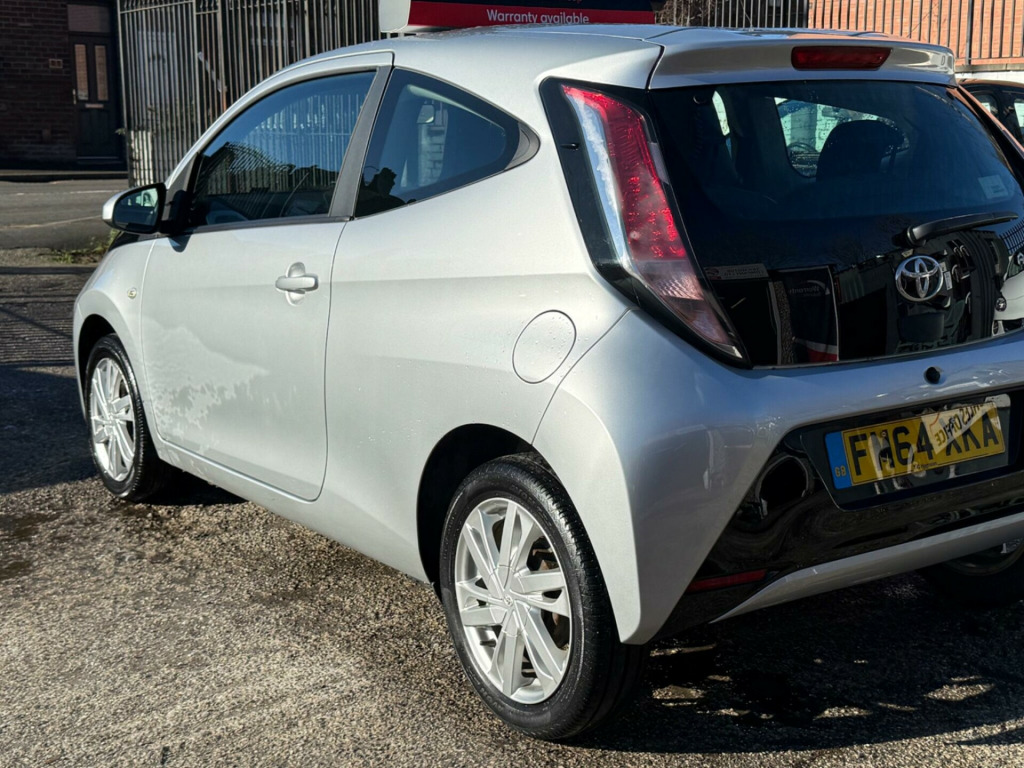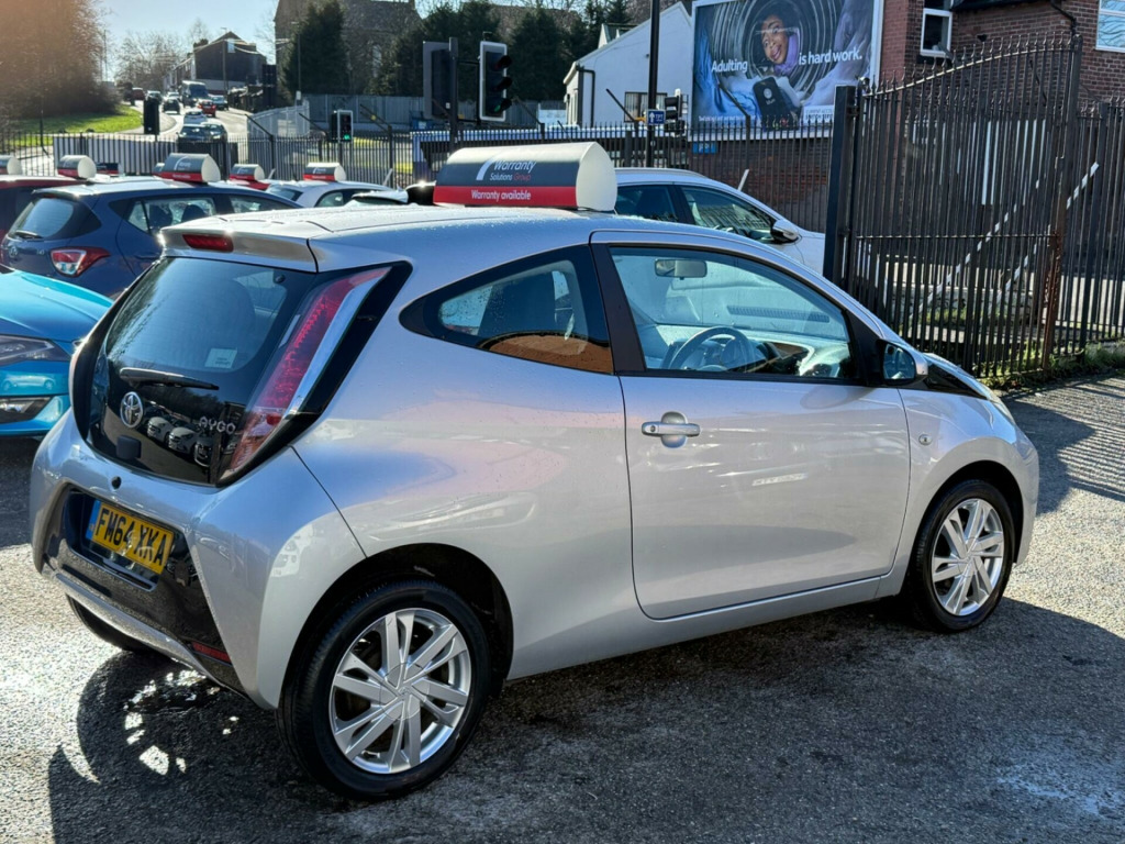 With an MOT valid until November 2026, this 2015 Toyota AYGO VVT-i x-pression offers excellent peace of mind. This model, featuring a 1.0L petrol engine, comes with a full service history, with its last service recorded at 70,471 miles. For your convenience, it includes a rear view camera with parking assistance, Bluetooth connectivity for music streaming and calls, and air conditioning. A 3 month warranty is also included for added reassurance.This Toyota AYGO stands out with its impressive fuel economy, achieving a remarkable 69 miles per gallon, which is better than many other vehicles in its class. Furthermore, its low insurance group rating and low CO2 emissions indicate that running costs are kept to a minimum, making it an economical choice for everyday driving.. 15in Alloy Wheels - 6 Double-Spoke - Silver, 3-Spoke Leather Steering Wheel, ABS - Anti Lock Braking System, AM-FM Radio, Air Conditioning, Air Vent Surrounds - Gloss Black, Airbags - Curtain, Airbags - Driver, Airbags - Front Passenger, Airbags - Front Passenger Cut-Off Switch, Airbags - Front Side, Bluetooth Connectivity, Bluetooth Music Streaming, Body Coloured Dashboard, Body Coloured Door Mirrors, Centre Console - Gloss Black, Chrome Insert on Gear Shift, Chrome Inside Door Handles, Clean Air Filter, Cupholders - Front, Cupholders - Rear, DAB Digital Radio, Daytime Running Lights - LED, Door Handles - Body Coloured, Driver and Front Passenger Sun Visors, EBS - Emergency Brake Signal, Electric Power Steering - EPS, Electric and Heated Door Mirrors, Front 12V Power Outlet, Front Console Box, Front Fog Lights, Front Power Windows, Front x-tension - Gloss Black, Gear Shift Surround - Gloss Black, Gloss Black Diffuser, Gloss Black Front X, Glovebox, HAC - Hill Start Assist Control, Headlights - Halogen, High Mounted Rear Brake Light, ISOFIX Child Restraint System, Immobiliser, Instrument Panel - Body Coloured, Interior Light, Intermittent Windscreen Wipers, Leather Gear Shift Knob, Mirror Link, Mirror on Sun Visors, Rear Headrests, Rear Spoiler, Rear View Camera, Rear Window Defogger, Reclining and Sliding Front Seats, Remote Central Locking, Seat Belt Warning - Driver, Seat Belt Warning - Front Passenger, Seat Belt Warning - Rear, Seats - 50-50 Split Folding Rear, Seats - Drivers Height Adjustment, Seats - Front Sport, Speakers x4, Speed Limiter, Steering Wheel - Audio Controls, Steering Wheel - Manual Tilt Adjustment, Steering Wheel - Multifunction, Storage - Door Pockets, Sunvisor - Driver and Passenger with Cover and Light, Tachometer, Tonneau Cover - Retractable, Tyre Pressure Warning System, Tyre Repair Kit, USB and Aux In, VSC - Vehicle Stability Control, x-touch - 7in Touch Screen. Full service history