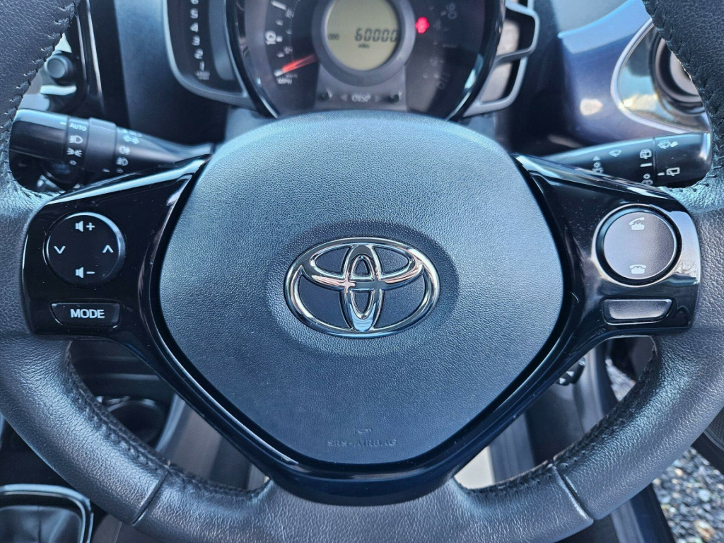 Documented service history... October 2026 Mot... This 2014 Toyota AYGO VVT-i x-pression is a remarkably economical choice, boasting an impressive 69 miles per gallon. This particular model, with its 1.0 litre petrol engine, offers a blend of practicality and modern convenience. It comes equipped with Bluetooth connectivity for seamless phone calls and music streaming, a rear view camera to aid with parking, and air conditioning to ensure a comfortable cabin environment.The AYGO x-pression stands out due to its low insurance group and low CO2 emissions, which indicate it is more affordable to run and more environmentally friendly than many other vehicles in its class. These highlights make it an attractive option for drivers seeking a cost effective and sensible car. air fabric with leather bolsters - grey, 15in alloy wheels - 6 double-spoke - silver, 3-spoke leather steering wheel, abs - anti lock braking system, am-fm radio, air conditioning, air vent surrounds - gloss black, airbags - curtain, airbags - driver, airbags - front passenger, airbags - front passenger cut-off switch, airbags - front side, bluetooth connectivity, bluetooth music streaming, body coloured dashboard, body coloured door mirrors, centre console - gloss black, chrome insert on gear shift, chrome inside door handles, clean air filter, cupholders - front, cupholders - rear, dab digital radio, daytime running lights - led, door handles - body coloured, driver and front passenger sun visors, ebs - emergency brake signal, electric power steering - eps, electric and heated door mirrors, front 12v power outlet, front console box, front fog lights, front power windows, front x-tension - gloss black, gear shift surround - gloss black, gloss black diffuser, gloss black front x, glovebox, hac - hill start assist control, headlights - halogen, high mounted rear brake light, isofix child restraint system, immobiliser, instrument panel - body coloured, interior light, intermittent windscreen wipers, leather gear shift knob, mirror link, mirror on sun visors, rear headrests, rear spoiler, rear view camera, rear window defogger, reclining and sliding front seats, remote central locking, seat belt warning - driver, seat belt warning - front passenger, seat belt warning - rear, seats - 50-50 split folding rear, seats - drivers height adjustment, seats - front sport, speakers x4, speed limiter, steering wheel - audio controls, steering wheel - manual tilt adjustment, steering wheel - multifunction, storage - door pockets, sunvisor - driver and passenger with cover and light, tachometer, tonneau cover - retractable, tyre pressure warning system, tyre repair kit, usb and aux in, vsc - vehicle stability control, x-touch - 7in touch screen