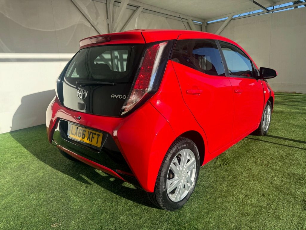 An excellent example of the stylish and efficient Toyota AYGO 1.0 VVT-i x-pression, finished in a vibrant red exterior. This compact and economical hatchback is perfect for city driving, offering low running costs, easy manoeuvrability, and modern styling. With its reliable 1.0-litre petrol engine and practical 5-door layout, it?s ideal for new drivers, daily commuters, or anyone seeking a dependable and budget-friendly car with great fuel efficiency. Key Features Include: Reverse camera Cruise Control Bluetooth connectivity Air conditioning Alloy wheels Electric windows 2 keys This vehicle comes with 5 doors, 5 seats, and has covered 100,647 miles. It was first registered in 2016, runs on Petrol, and features a Manual gearbox. The car is ULEZ compliant, HPI clear, and comes with a valid MOT until November 2026. What?s Included: 1 year of free AA breakdown cover Free 90-day warranty Part exchange welcome Flexible finance options Extended warranties, drive away insurances, and servicing available at additional costs We also offer nationwide delivery at an additional cost?have the car delivered directly to your door, or visit our dealership to view and collect at your convenience. Visit or Contact Us - We?re open 7 days a week Unit E4, Middlesex Business Centre, Bridge Road, Southall, London, UB2 4AB Contact us today to arrange a viewing, test drive, or to discuss your finance options. 15in Alloy Wheels, 3-Spoke Leather Steering Wheel, ABS - Anti Lock Braking System, AM-FM Radio, Air Conditioning, Air Vent Surrounds - Gloss Black, Airbags - Curtain, Airbags - Driver, Airbags - Front Passenger, Airbags - Front Passenger Cut-Off Switch, Airbags - Front Side, Bluetooth Connectivity, Body Coloured Dashboard, Body Coloured Door Mirrors, Centre Console - Gloss Black, Chrome Insert on Gear Shift, Chrome Inside Door Handles, Clean Air Filter, Cupholders - Front, Cupholders - Rear, DAB Digital Radio, Daytime Running Lights - LED, Door Handles - Body Coloured, Driver and Passenger Sun Visors with Mir, EBS - Emergency Brake Signal, Electric Power Steering - EPS, Electric and Heated D