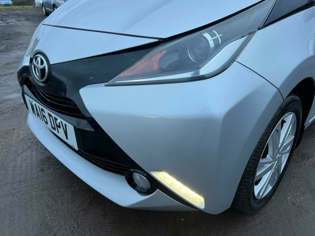 Discover this 2016 Toyota AYGO VVT-i x-pression, a compact car that offers an economical and practical driving experience. This particular model benefits from a 1.0L petrol engine and meets Euro 6 emission standards, contributing to its efficiency. Inside, you'll find comfortable air conditioning to keep you cool, and the convenience of Bluetooth connectivity for your music and calls. Parking is made easier with the integrated rear view camera, and the stylish 15 inch silver alloy wheels add a touch of flair.This Toyota AYGO stands out with its impressive fuel economy, achieving up to 69 miles per gallon, which indicates it is more economical than many other vehicles in its class. Furthermore, its low insurance group rating suggests that running costs will be kept to a minimum. The low CO2 emissions also highlight its environmental consideration, making it a sensible choice for the cost conscious and environmentally aware driver. ar camera, 15in alloy wheels - 10 spoke - silver, 15in alloy wheels, 3-spoke leather steering wheel, abs - anti lock braking system, am-fm radio, air conditioning, air vent surrounds - gloss black, airbags - curtain, airbags - driver, airbags - front passenger, airbags - front passenger cut-off switch, airbags - front side, bluetooth connectivity, body coloured dashboard, body coloured door mirrors, centre console - gloss black, chrome insert on gear shift, chrome inside door handles, clean air filter, cupholders - front, cupholders - rear, dab digital radio, daytime running lights - led, door handles - body coloured, driver and passenger sun visors with mirror, ebs - emergency brake signal, electric power steering - eps, electric and heated door mirrors, front 12v power outlet, front fog lights, front power windows, front x-tension - gloss black, gear shift surround - gloss black, gloss black diffuser, gloss black front x, glovebox, hac - hill start assist control, headlights - electronic levelling, high mounted rear brake light, isofix child restraint system, immobiliser, interior light, intermittent windscreen wipers, leather gear shift knob, projector halogen headlight with led tracer lights, rear headrests, rear spoiler, rear view camera, reclining front seats, remote central locking, seat belt - pre-tensioners and force limiters, seat belt reminder - front and rear, seats - 50-50 split folding rear, seats - drivers height adjustment, seats - sliding front, speed limiter, steering wheel - audio controls, steering wheel - manual tilt adjustment, storage - central console, storage - front door pockets, storage - rear door pockets, tonneau cover - retractable, tyre pressure warning system, tyre repair kit, usb and aux in, vsc - vehicle stability control, x-touch - 7in touch screen