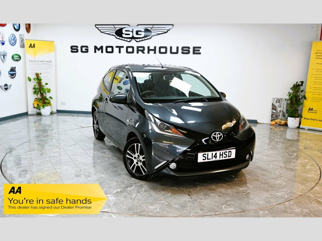 TOP SPEC - TOYOTA AYGO 1.0 VVT-i X-PRESSION / ULEZ # FULL SERVICE HISTORY + REVERSING CAMERA + CRUISE CONTROL + HALF LEATHER INTERIOR + TOYOTA TOUCHSCREEN MULTIMEDIA / BLUETOOTH / BT AUDIO / DAB RADIO / AUX / USB + 5 SPEED MANUAL GEARBOX + ALLOY WHEELS + STEERING CONTROLS + AUTO LIGHTS + ALL ELECTRIC WINDOWS + CLIMATE CONTROL + ELECTRIC DOOR MIRRORS + REAR HEATED SCREEN ### FRESH SERVICE + 12 MONTHS MOT ### CHECKED & INSPECTED ##### FREE 6 MONTHS NATIONWIDE WARRANTY (ALL MECHANICAL & ELECTRICAL - PARTS AND LABOUR INCLUDED) +++ FREE 12 MONTHS AA BREAKDOWN COVER ##### 0% DEPOSIT FINANCE AVAILABLE ##### ALL HPI CLEAR +++ ANY P/X WELCOME. Road Tax Opt, We accept all major CREDIT & DEBIT Cards, 5 Days Drive Away Insurance OPTIONAL, Located 5 mins from Hoddesdon OR Broxbourne train station, 21 High Street, EN11 8SX 15in Alloy Wheels - 6 Double-Spoke - Sil, 3-Spoke Leather Steering Wheel, ABS - Anti Lock Braking System, Air Conditioning, Air Vent Surrounds - Gloss Black, Airbags - Curtain, Airbags - Driver, Airbags - Front Passenger, Airbags - Front Passenger Cut-Off Switch, Airbags - Front Side, AM-FM Radio, Bluetooth Connectivity, Bluetooth Music Streaming, Body Coloured Dashboard, Body Coloured Door Mirrors, Centre Console - Gloss Black, Chrome Insert on Gear Shift, Chrome Inside Door Handles, Clean Air Filter, Cupholders - Front, Cupholders - Rear, DAB Digital Radio, Daytime Running Lights - LED, Door Handles - Body Coloured, Driver and Front Passenger Sun Visors, EBS - Emergency Brake Signal, Elect