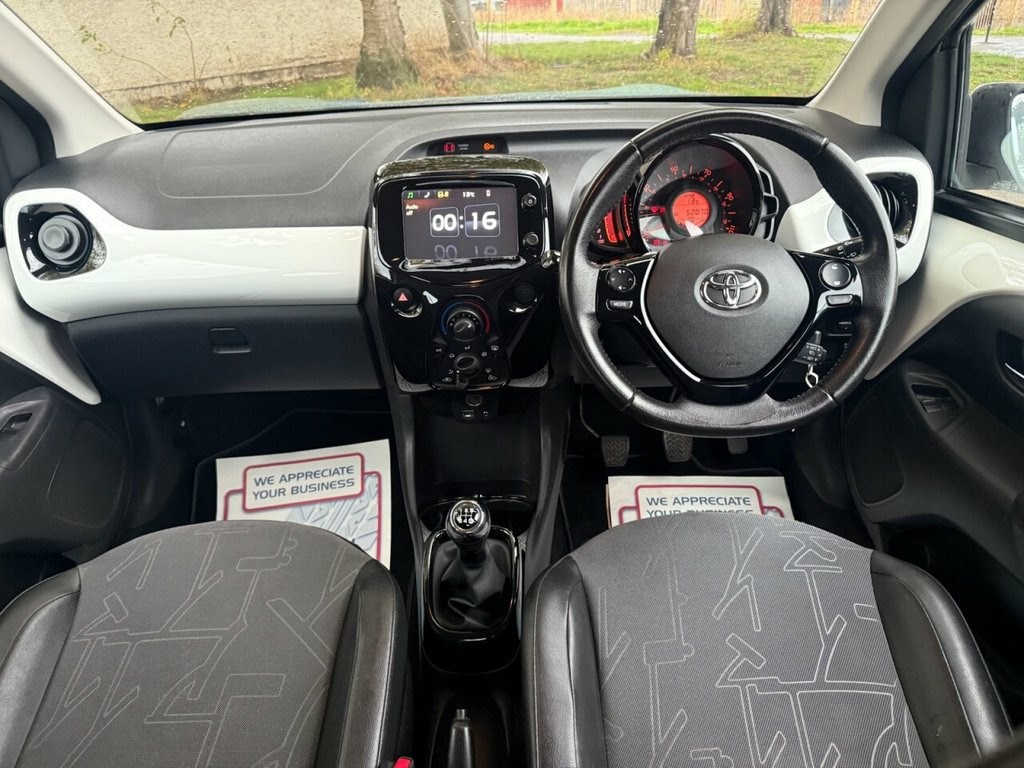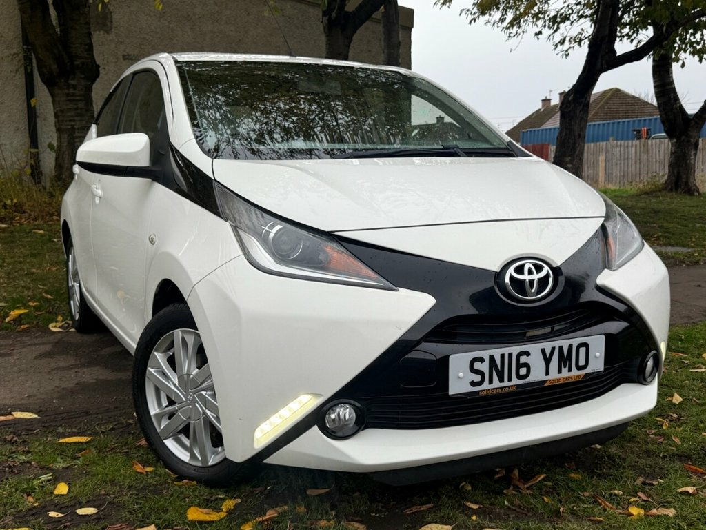 JUST SERVICED ALONG WITH NEW CLUTH / 12 MONTHS MOT INCLUDED + 3 MONTHS PARTS & LABOUR WARRANTY This 2016 Toyota AYGO VVT-i x-pression is a superb example with a full service history and only 50070 miles, which is low for its age. This Euro 6 compliant model features a 1.0L petrol engine and comes with a 3 month warranty for your peace of mind. The x-pression trim level includes desirable features such as air conditioning, Bluetooth connectivity for seamless phone integration, and a rear view camera to assist with parking. You will find this AYGO to be an economical choice, boasting an impressive fuel economy of 69 mpg, which is better than many similar vehicles. Its low CO2 emissions and low insurance group also contribute to its affordability, making it an attractive option for those seeking a cost effective and practical car. A 12 month MOT will be provided on purchase, ensuring its roadworthiness. 15in Alloy Wheels, 3-Spoke Leather Steering Wheel, ABS - Anti Lock Braking System, AM-FM Radio, Air Conditioning, Air Vent Surrounds - Gloss Black, Airbags - Curtain, Airbags - Driver, Airbags - Front Passenger, Airbags - Front Passenger Cut-Off Switch, Airbags - Front Side, Bluetooth Connectivity, Body Coloured Dashboard, Body Coloured Door Mirrors, Centre Console - Gloss Black, Chrome Insert on Gear Shift, Chrome Inside Door Handles, Clean Air Filter, Cupholders - Front, Cupholders - Rear, DAB Digital Radio, Daytime Running Lights - LED, Door Handles - Body Coloured, Driver and Passenger Sun Visors with Mir, EBS - Emergency Brake Signal, Electric Power Steering - EPS, Electric and Heated D