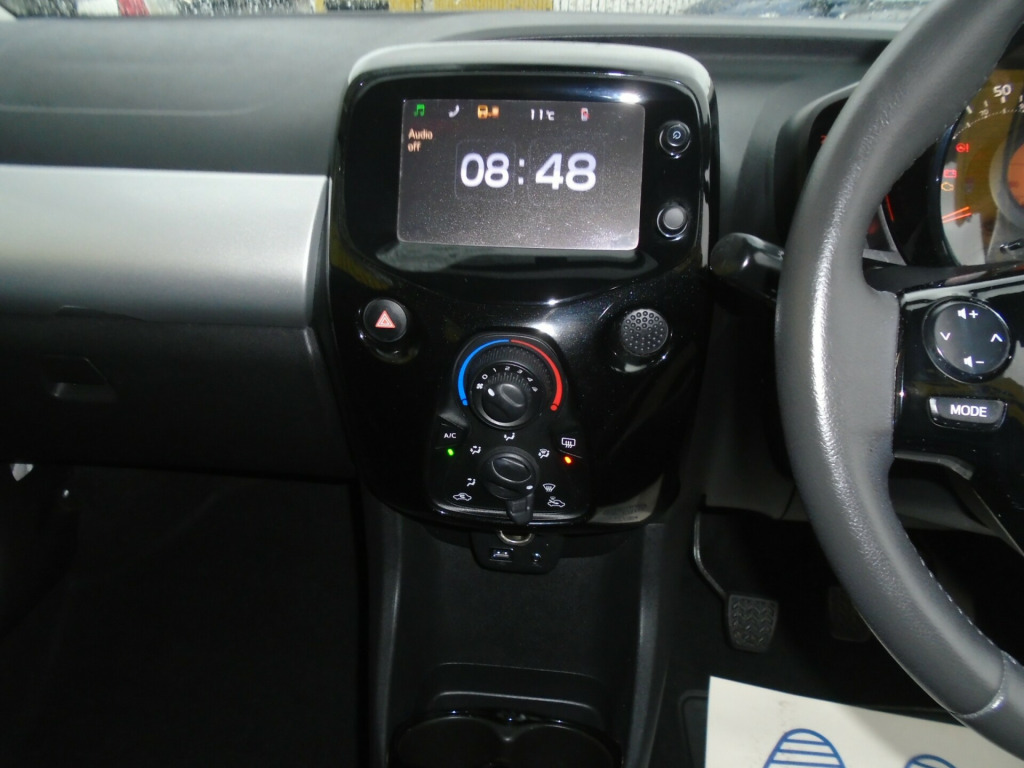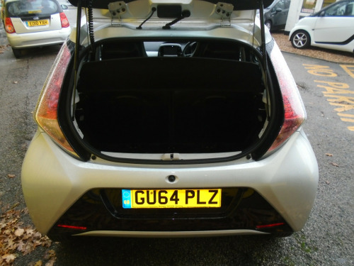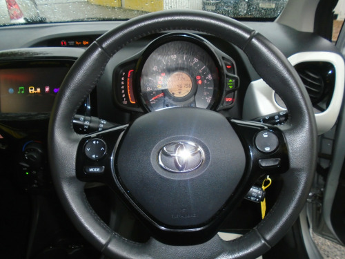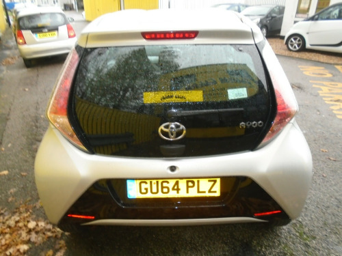 This 2014 Toyota Aygo 1.0 VVT-i x-pression Hatchback with a mileage of 46700 miles is the perfect city car, with its compact yet spacious design and fuel-efficient petrol engine. With an MOT that expires on 15/06/2026 and being ULEZ compliant, it's ready for the road. This 5-door hatchback comfortably seats 4 people and comes with features like 15in Alloy Wheels, Electric and Heated Door Mirrors, Body Coloured Door Mirrors and Door Handles, and Chrome Inside Door Handles. With its Euro 5 (68 ps) engine, this reliable car is not only stylish but also practical for daily use., 07833 580083 in alloy wheels - 6 double-spoke - silver, body coloured door mirrors, chrome inside door handles, door handles - body coloured, electric and heated door mirrors, front power windows, front x-tension - gloss black, gloss black diffuser, gloss black front x, intermittent windscreen wipers, rear spoiler, rear window defogger, tyre repair kit, 3-spoke leather steering wheel, air conditioning, air vent surrounds - gloss black, body coloured dashboard, centre console - gloss black, chrome insert on gear shift, clean air filter, cupholders - front, cupholders - rear, driver and front passenger sun visors, front console box, gear shift surround - gloss black, glovebox, instrument panel - body coloured, interior light, leather gear shift knob, mirror on sun visors, rear headrests, reclining and sliding front seats, seats - 50-50 split folding rear, seats - drivers height adjustment, seats - front sport, steering wheel - audio controls, steering wheel - manual tilt adjustment, steering wheel - multifunction, storage - door pockets, sunvisor - driver and passenger with cover and light, tonneau cover - retractable, abs - anti lock braking system, airbags - curtain, airbags - driver, airbags - front passenger, airbags - front passenger cut-off switch, airbags - front side, ebs - emergency brake signal, hac - hill start assist control, isofix child restraint system, immobiliser, remote central locking, seat belt warning - driver, seat belt warning - front passenger, seat belt warning - rear, vsc - vehicle stability control, am-fm radio, bluetooth connectivity, bluetooth music streaming, dab digital radio, front 12v power outlet, mirror link, speakers x4, usb and aux in, x-touch - 7in touch screen, daytime running lights - led, front fog lights, headlights - halogen, high mounted rear brake light, electric power steering - eps, rear view camera, speed limiter, tachometer, tyre pressure warning system, all cars come fully serviced, alloy wheels, service history, £20 tax