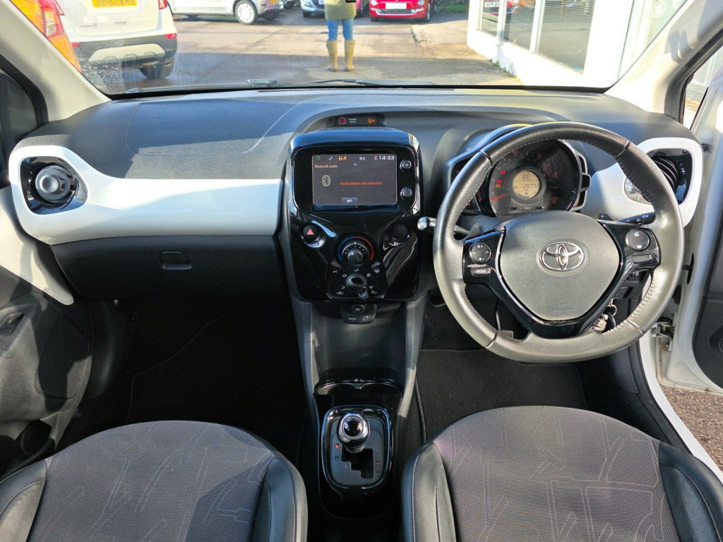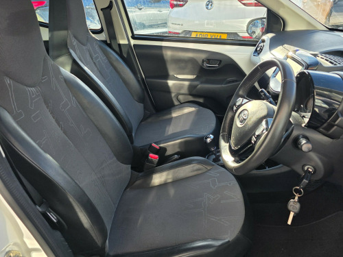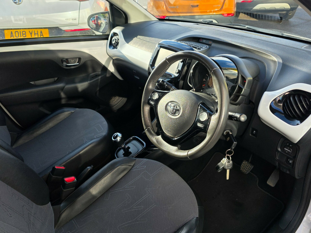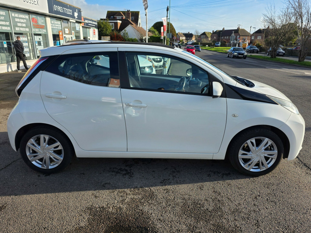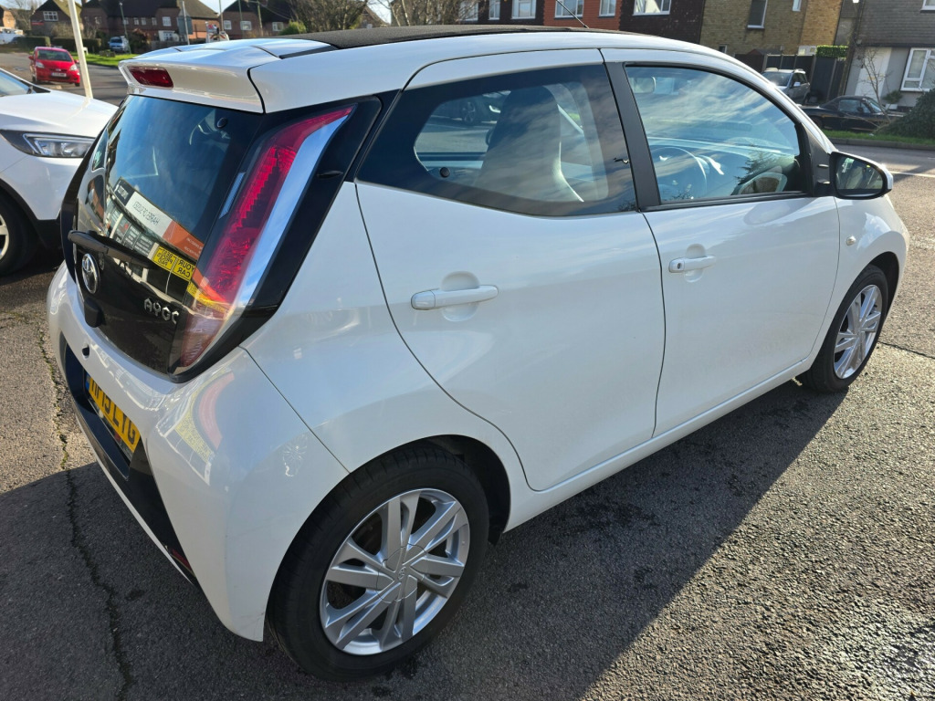 A rare beauty has just arrived, excellent condition. Prepared to a very high standard and supplied with an award winning 6 month warranty. This 2015 Toyota Aygo 1.0 VVT-i x-pression Hatchback with only 28772 miles on the clock is the perfect city car. Powered by a petrol engine, it is ULEZ compliant and comes with MOT valid until 30/03/2026. With 4 seats and 5 doors, this hatchback is practical and versatile for everyday use. The x-pression model includes 15in Alloy Wheels, Body Coloured Door Mirrors, Chrome Inside Door Handles, and Electric and Heated Door Mirrors, making it both stylish and functional. This Euro 5 compliant car is a great choice for anyone looking for a reliable and economical vehicle for urban driving. in alloy wheels - 6 double-spoke - silver, body coloured door mirrors, chrome inside door handles, door handles - body coloured, electric and heated door mirrors, front power windows, front x-tension - gloss black, gloss black diffuser, gloss black front x, intermittent windscreen wipers, rear spoiler, rear window defogger, tyre repair kit, 3-spoke leather steering wheel, air conditioning, air vent surrounds - gloss black, body coloured dashboard, centre console - gloss black, chrome insert on gear shift, clean air filter, cupholders - front, cupholders - rear, driver and front passenger sun visors, front console box, gear shift surround - gloss black, glovebox, instrument panel - body coloured, interior light, leather gear shift knob, mirror on sun visors, rear headrests, reclining and sliding front seats, seats - 50-50 split folding rear, seats - drivers height adjustment, seats - front sport, steering wheel - audio controls, steering wheel - manual tilt adjustment, steering wheel - multifunction, storage - door pockets, sunvisor - driver and passenger with cover and light, tonneau cover - retractable, abs - anti lock braking system, airbags - curtain, airbags - driver, airbags - front passenger, airbags - front passenger cut-off switch, airbags - front side, ebs - emergency brake signal, hac - hill start assist control, isofix child restraint system, immobiliser, remote central locking, seat belt warning - driver, seat belt warning - front passenger, seat belt warning - rear, vsc - vehicle stability control, am-fm radio, bluetooth connectivity, bluetooth music streaming, dab digital radio, front 12v power outlet, mirror link, speakers x4, usb and aux in, x-touch - 7in touch screen, daytime running lights - led, front fog lights, headlights - halogen, high mounted rear brake light, electric power steering - eps, rear view camera, tachometer, tyre pressure warning system