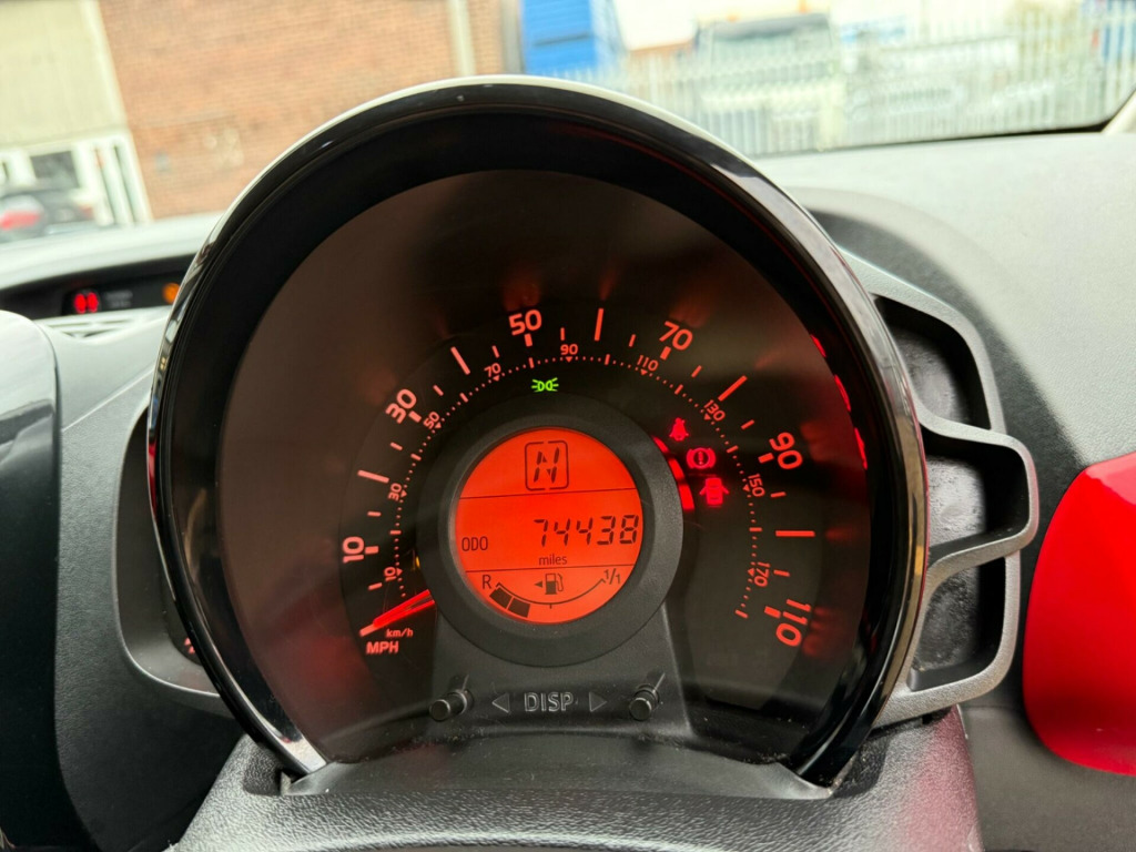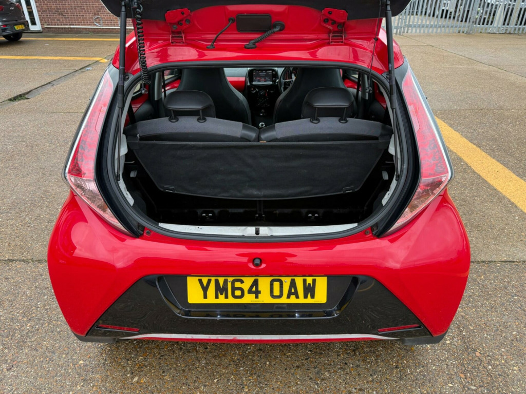 This 2014 Toyota AYGO VVT-i x-pression is a standout choice, boasting a clear vehicle history check and having been owned by only two careful owners. This particular model, the x-pression trim, is equipped with a responsive 1.0L petrol engine. For your convenience and comfort, it features air conditioning, Bluetooth connectivity for both music streaming and handsfree calls, and a rear view camera to assist with parking.The AYGO VVT-i x-pression offers excellent value, with a remarkable fuel economy of 67 miles per gallon, making it a very economical choice for your daily journeys. Its low CO2 emissions and low insurance group rating further highlight its cost effectiveness compared to similar vehicles. This combination of efficiency, practicality, and desirable features makes it a smart and appealing option. air fabric with leather bolsters - grey, 15in alloy wheels - 6 double-spoke - silver, 3-spoke leather steering wheel, abs - anti lock braking system, am-fm radio, air conditioning, air vent surrounds - gloss black, airbags - curtain, airbags - driver, airbags - front passenger, airbags - front passenger cut-off switch, airbags - front side, bluetooth connectivity, bluetooth music streaming, body coloured dashboard, body coloured door mirrors, centre console - gloss black, chrome insert on gear shift, chrome inside door handles, clean air filter, cupholders - front, cupholders - rear, dab digital radio, daytime running lights - led, door handles - body coloured, driver and front passenger sun visors, ebs - emergency brake signal, electric power steering - eps, electric and heated door mirrors, front 12v power outlet, front console box, front fog lights, front power windows, front x-tension - gloss black, gear shift surround - gloss black, gloss black diffuser, gloss black front x, glovebox, hac - hill start assist control, headlights - halogen, high mounted rear brake light, isofix child restraint system, immobiliser, instrument panel - body coloured, interior light, intermittent windscreen wipers, leather gear shift knob, mirror link, mirror on sun visors, rear headrests, rear spoiler, rear view camera, rear window defogger, reclining and sliding front seats, remote central locking, seat belt warning - driver, seat belt warning - front passenger, seat belt warning - rear, seats - 50-50 split folding rear, seats - drivers height adjustment, seats - front sport, speakers x4, steering wheel - audio controls, steering wheel - manual tilt adjustment, steering wheel - multifunction, storage - door pockets, sunvisor - driver and passenger with cover and light, tachometer, tonneau cover - retractable, tyre pressure warning system, tyre repair kit, usb and aux in, vsc - vehicle stability control, x-touch - 7in touch screen