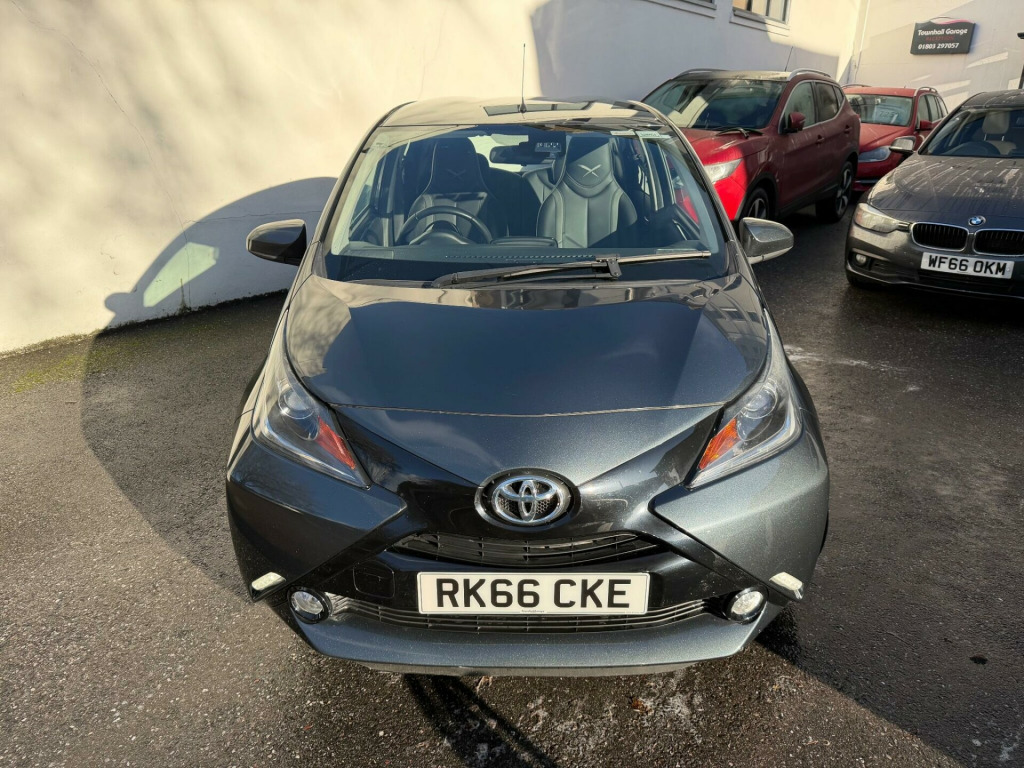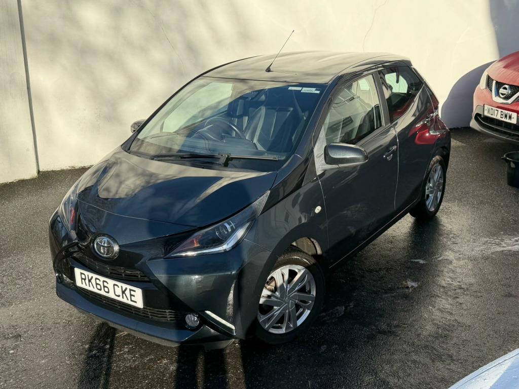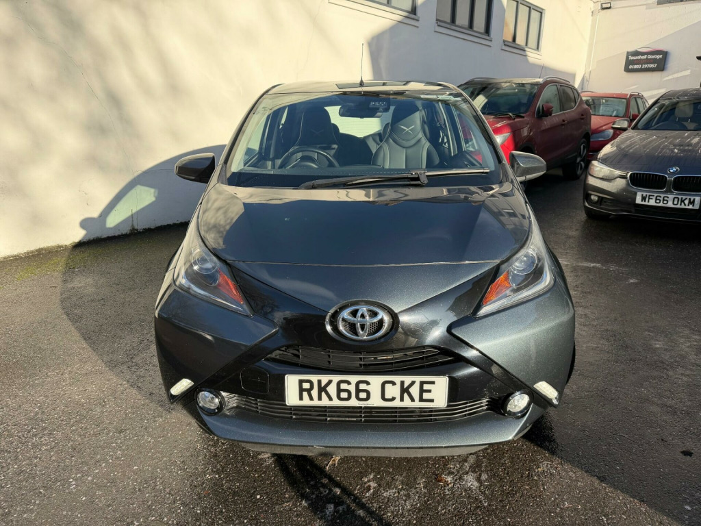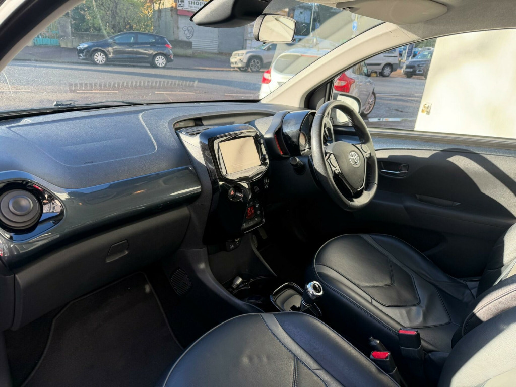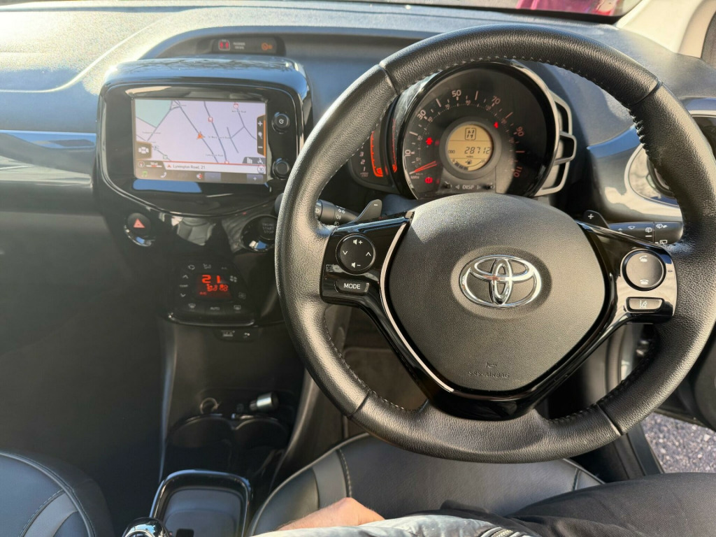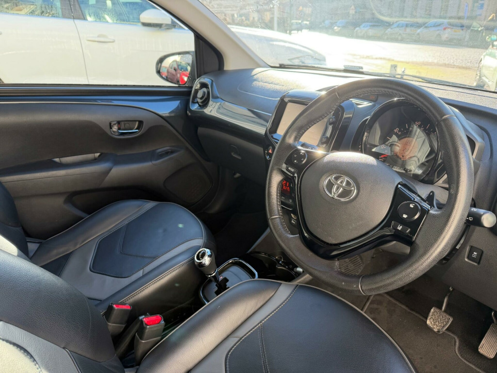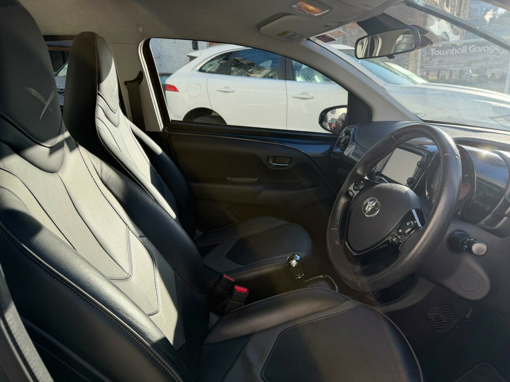 JUST ARRIVED IN - This 2017 Toyota AYGO VVT-i x-pression is a standout choice with exceptionally low mileage for its age, having covered just 28,000 miles. This particular model, the x-pression trim, Only £20 Road Tax - is powered by an efficient 1.0L petrol engine and meets the Euro 6 emission standards. It comes equipped with a range of notable features With Full Leater Interior, Sat Nav, designed for your convenience and safety, including Pre Collision Brake Assist, Autonomous Emergency Braking, and Lane Change Assist, and for your entertainment and connectivity needs, it includes Bluetooth connectivity.The highlights of this Toyota AYGO demonstrate its superior value compared to other vehicles in its class. Its impressive fuel economy of 67 mpg means fewer trips to the petrol station, making it a very economical choice. Furthermore, its low insurance group rating contributes to lower running costs, and its low CO2 emissions are beneficial for the environment. These factors combine to make this AYGO a smart and practical option for many drivers. in alloy wheels, 3-spoke leather steering wheel, abs - anti lock braking system, am-fm radio, air conditioning, air vent surrounds - gloss black, airbags - curtain, airbags - driver, airbags - front passenger, airbags - front passenger cut-off switch, airbags - front side, autonomous emergency braking, bluetooth connectivity, body coloured dashboard, body coloured door mirrors, centre console - gloss black, chrome insert on gear shift, chrome inside door handles, clean air filter, cupholders - front, cupholders - rear, dab digital radio, daytime running lights - led, door handles - body coloured, driver and passenger sun visors with mirror, ebs - emergency brake signal, electric power steering - eps, electric and heated door mirrors, front 12v power outlet, front fog lights, front power windows, front x-tension - gloss black, gear shift surround - gloss black, gloss black diffuser, gloss black front x, glovebox, hac - hill start assist control, headlights - electronic levelling, high mounted rear brake light, isofix child restraint system, immobiliser, interior light, intermittent windscreen wipers, lane change assist, leather gear shift knob, pre-collision brake assist, projector halogen headlight with led tracer lights, rear headrests, rear spoiler, rear view camera, reclining front seats, remote central locking, seat belt - pre-tensioners and force limiters, seat belt reminder - front and rear, seats - 50-50 split folding rear, seats - drivers height adjustment, seats - sliding front, steering wheel - audio controls, steering wheel - manual tilt adjustment, storage - central console, storage - front door pockets, storage - rear door pockets, tonneau cover - retractable, tyre pressure warning system, tyre repair kit, usb and aux in, vsc - vehicle stability control, x-touch - 7in touch screen, x-wave electrically retractable canvas black roof, x-nav, flair fabric with leather bolsters - grey