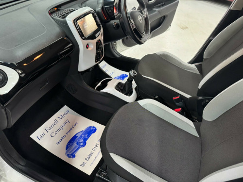 This 2016 Toyota AYGO VVT-i x-pure presents an exceptional ownership proposition with its remarkably low mileage of just 40,800 miles, a testament to its careful use. This Euro 6 compliant 1.0L petrol model boasts a full service history and has had only two previous owners, ensuring a well maintained and reliable vehicle. For your peace of mind, it comes with a 3 month warranty and a full 12 months MOT will be provided upon purchase. Inside, you'll find practical features such as air conditioning for comfortable journeys, Bluetooth connectivity for seamless audio streaming and hands free calls, and a rear view camera complete with parking assistance to make manoeuvring effortless.The appeal of this AYGO is further enhanced by its impressive running costs, making it a smart choice for budget conscious drivers. Its outstanding fuel economy of 69 mpg means fewer trips to the petrol station, and its low insurance group rating contributes to affordable ownership. Furthermore, its low CO2 emissions highlight its environmental consideration. These factors combined indicate that this particular AYGO offers a superior ownership experience compared to many other vehicles in its class.. 15in Alloy Wheels - 5 Double-Spoke - Machined White, 3-Spoke Leather Steering Wheel, ABS - Anti Lock Braking System, AM-FM Radio, Air Conditioning, Air Vent Surrounds - White Flash, Airbags - Curtain, Airbags - Driver, Airbags - Front Passenger, Airbags - Front Passenger Cut-Off Switch, Airbags - Front Side, Bluetooth Connectivity, Body Coloured Door Mirrors, Centre Console - Silver White, Chrome Insert on Gear Shift, Chrome Inside Door Handles, Clean Air Filter, Cupholders - Front, Cupholders - Rear, DAB Digital Radio, Daytime Running Lights - LED, Door Handles - Body Coloured, Driver and Passenger Sun Visors with Mirror, EBS - Emergency Brake Signal, Electric Power Steering - EPS, Electric and Heated Door Mirrors, Front 12V Power Outlet, Front Fog Lights, Front Power Windows, Front x-tension - Silver Splash, Gear Shift Surround - Silver White, Gloss Black Dashboard, Glovebox, HAC - Hill Start Assist Control, Headlights - Electronic Levelling, High Mounted Rear Brake Light, ISOFIX Child Restraint System, Immobiliser, Interior Light, Intermittent Windscreen Wipers, Leather Gear Shift Knob, Privacy Glass - Rear, Projector Halogen Headlight with LED Tracer Lights, Rear Headrests, Rear Spoiler, Rear View Camera, Reclining Front Seats, Remote Central Locking, Seat Belt - Pre-Tensioners and Force Limiters, Seat Belt Reminder - Front and Rear, Seats - 50-50 Split Folding Rear, Seats - Drivers Height Adjustment, Seats - Sliding Front, Silver Splash Diffuser, Silver Splash Front X, Speed Limiter, Steering Wheel - Audio Controls, Steering Wheel - Manual Tilt Adjustment, Storage - Central Console, Storage - Front Door Pockets, Storage - Rear Door Pockets, Tonneau Cover - Retractable, Tyre Pressure Warning System, Tyre Repair Kit, USB and Aux In, VSC - Vehicle Stability Control, White Flash Alloy Wheel Centre Caps, x-touch - 7in Touch Screen. Full service history