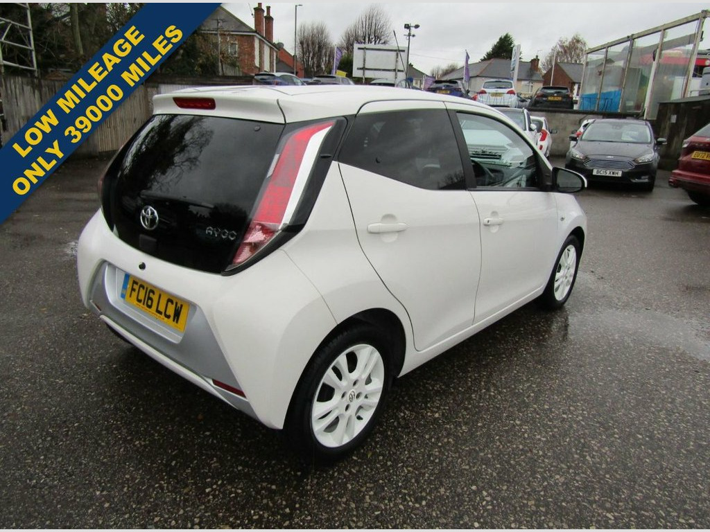 LOW MILEAGE AYGO ,, ONLY COVERED 39000 MILES, ,,GREAT ECONOMY OVER 60 MPG,,, LOW INSURANCE GROUP, ,LOW RUNNING COSTS,,,, PLEASE CALL TO BOOK AN APPOINTMENT TO VIEW AND BOOK A TEST DRIVE,,,0115961389,,,PART EXCHANGE WELCOME,, ,FINANCE PACKAGES AVAILABLE,, ,WE ARE A LOCAL BUSINESS WITH OVER 30 YEARS TRADING HISTORY,,,WE HAVE OUR OWN WORKSHOP FACILITIES AND M.O.T STATION. 15in Alloy Wheels - 5 Double-Spoke - Mac, 3-Spoke Leather Steering Wheel, ABS - Anti Lock Braking System, AM-FM Radio, Air Conditioning, Air Vent Surrounds - White Flash, Airbags - Curtain, Airbags - Driver, Airbags - Front Passenger, Airbags - Front Passenger Cut-Off Switch, Airbags - Front Side, Bluetooth Connectivity, Body Coloured Door Mirrors, Centre Console - Silver White, Chrome Insert on Gear Shift, Chrome Inside Door Handles, Clean Air Filter, Cupholders - Front, Cupholders - Rear, DAB Digital Radio, Daytime Running Lights - LED, Door Handles - Body Coloured, Driver and Passenger Sun Visors with Mir, EBS - Emergency Brake Signal, Electric Power Steering - EPS, Electric and Heated Do