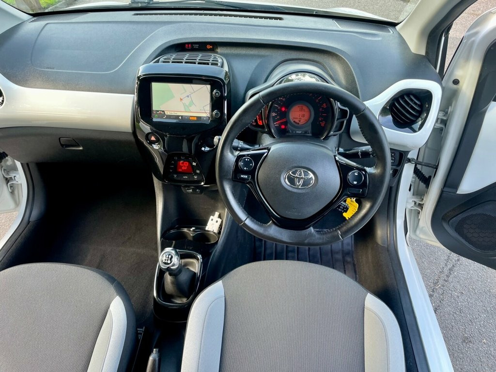 Lovely Low Mileage Aygo That's Come From A Retired Driver. This Aygo Has With Satellite Navigation, Bluetooth Phone Connectivity, Reverse Camera, Auto Headlights, Multi Function Steering Wheel, Driver Information Trip Computer And Lots More. Low Insurance Group, Service History And 1 Former Owner. x-nav, White Flash, x-touch 7in Multimedia Touch Screen and , Reversing Camera, Automatic Air Conditioning, Steering Wheel - Audio and Telephone Con, Dusk Sensing Headlights, Daytime Running Lights - LED, Speed Limiter, Electric Front Windows, Electrically Adjustable Heated Door Mirr, Electric Power Steering - EPS, Remote Central Locking, ABS - Anti Lock Braking System, EBS - Emergency Brake Signal, VSC - Vehicle Stability Control, HAC - Hill Start Assist Control, Supplemental Restraint System - SRS - Ai, Front Passenger Airbag On-Off Switch, Tyre Pressure Warning System, Front Seat Belt Reminder, Rear Seat Belt Reminder, Seat Belt - Pre-Tensioners and Force Lim, ISOFIX Fixing Points, Steeri