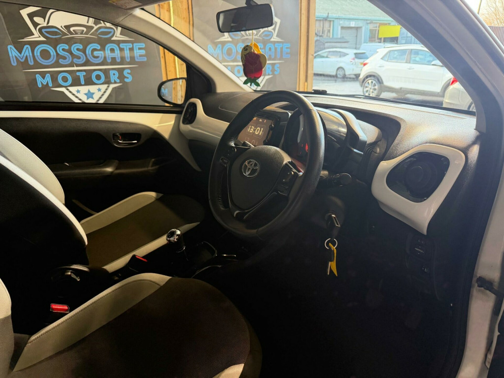 Discover this 2018 Toyota AYGO VVT-i x-style, a car that combines efficiency with modern convenience. This particular model boasts a 1.0L petrol engine and meets Euro 6 emission standards, making it a responsible choice. Inside, you'll find automatic air conditioning for a comfortable cabin temperature, and dusk sensing headlights that illuminate the road automatically. The x-touch 7in multimedia touch screen is your hub for entertainment and navigation, complete with Bluetooth connectivity. For added ease, a reversing camera with parking assistance is included, helping you manoeuvre with confidence.This Toyota AYGO x-style is designed to be economical to run. It achieves an impressive 67 miles per gallon, which is a significant advantage for your fuel costs. Furthermore, its low insurance group rating means cheaper premiums, and its low CO2 emissions highlight its environmental consideration. These factors combined demonstrate how this AYGO offers a more cost effective and considerate driving experience compared to many other vehicles in its class.. 15in Alloy Wheels - 10 Spoke - Gloss Black, 3-Spoke Leather Steering Wheel, ABS - Anti Lock Braking System, Air Vent Surrounds - Gloss Black, Automatic Air Conditioning, Body Coloured Dashboard, Centre Console - Gloss Black, Chrome Insert on Gear Shift, Chrome Inside Door Handles, Clean Air Filter, Cupholder - Front and Rear, DAB Digital Radio, Daytime Running Lights - LED, Door Handles - Body Coloured, Door Mirrors - Body Colour, Dusk Sensing Headlights, EBS - Emergency Brake Signal, Electric Front Windows, Electric Power Steering - EPS, Electrically Adjustable Heated Door Mirrors, Front 12V Power Outlet, Front Fog Lights, Front Passenger Airbag On-Off Switch, Front Seat Belt Reminder, Front x-tension - Gloss Black, Gear Shift Surround - Gloss Black, Glovebox, Grey Front X, HAC - Hill Start Assist Control, Headlights - Electronic Levelling, ISOFIX Fixing Points, Integrated Rear Spoiler, Leather Gear Shift, Manual Rear View Mirror, OUTstand, Projector Halogen Headlight with LED Tracer Lights, Rear Headrests x2, Rear Privacy Glass, Rear Seat Belt Reminder, Rear Window Demister, Recline and Slide Adjustment - Driver and Front Passengers, Red Rear Accent, Remote Central Locking, Reversing Camera, Seat Belt - Pre-Tensioners and Force Limiters, Seats - 50-50 Split Folding Rear, Seats - Drivers Height Adjustment, Steering Wheel - Audio and Telephone Controls, Steering Wheel - Manual Tilt Adjustment, Storage - Front Door Pockets, Storage - Rear Door Pockets, Storage Pocket in Central Console, Supplemental Restraint System - SRS - Airbags - 6 Airbags, Tonneau Cover, Tyre Pressure Warning System, Tyre Repair Kit, USB Connection, VSC - Vehicle Stability Control, x-touch 7in Multimedia Touch Screen and Reversing Camera.