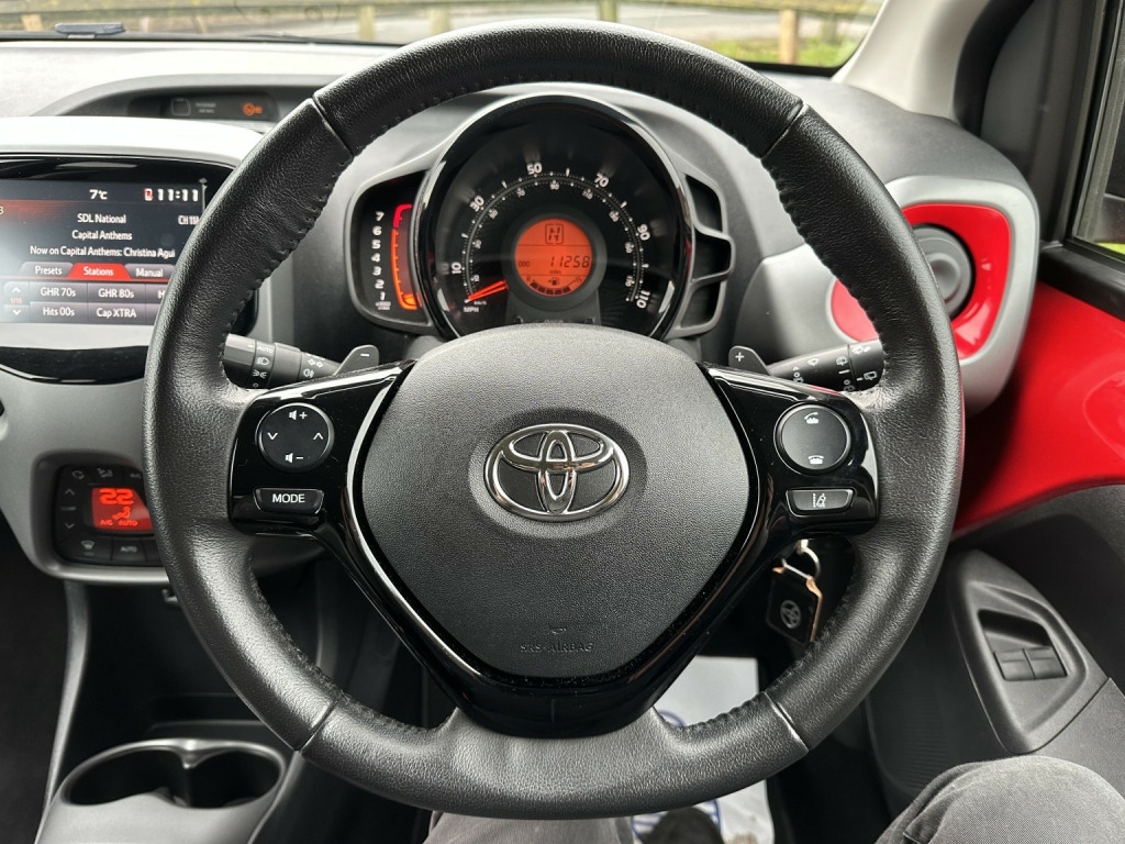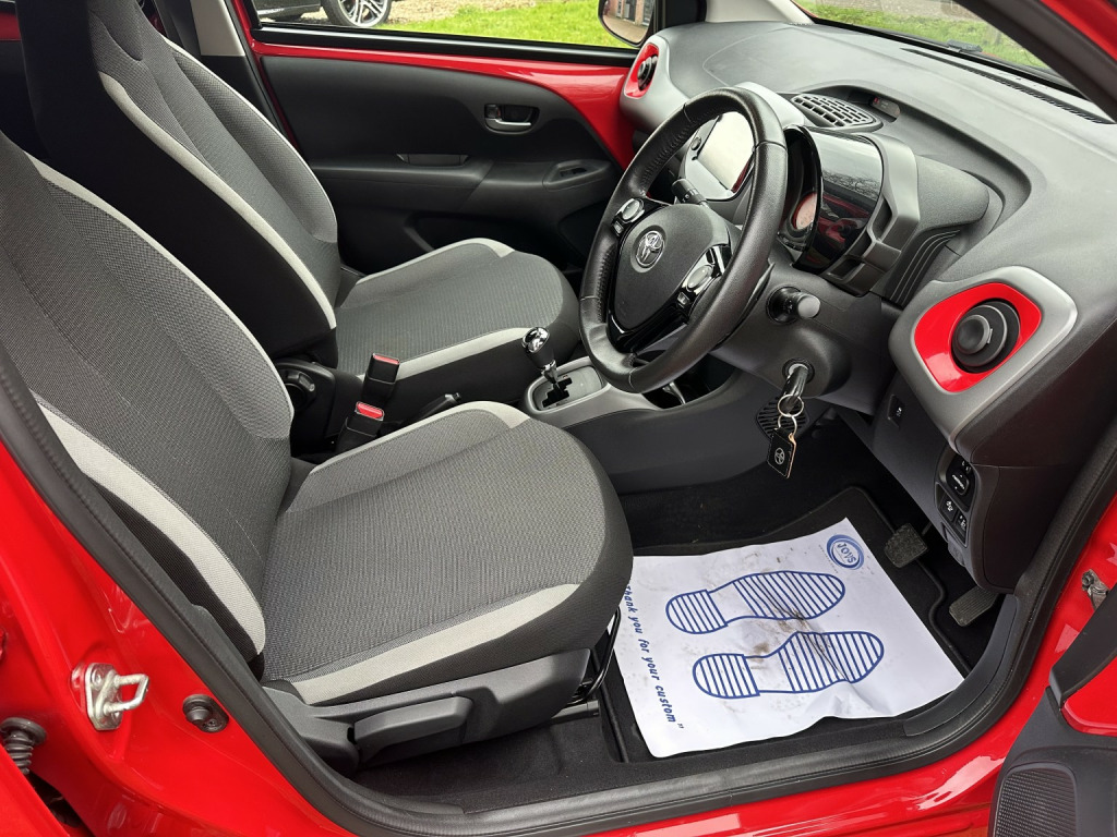 Drive away in this lovely and exceptionally low mileage Toyota Aygo X-Trend Red edition with CVT automatic gearbox!, , This car is in like new overall condition and has covered a genuine, and incredibly low, 11k miles!! Its finished in gloss red which shines from top to toe and is superb throughout! The car is HPI clear, has 4 excellent tyres and comes with a Comprehensive Service History. MOT runs until October 2026. , This car has been well maintained since new by its owners! It has a lovely service history with 2 services, both of which were at Toyota dealers. It was last serviced at 10k miles and will be freshly serviced ready for the new owner! It comes complete with 2 keys, original book pack, service records and V5C. , The interior is in great overall condition with no wear at all! The exterior is exceptional and in nearly new condition though being a used car may have tiny marks/stone chips etc. Any prospective buyer will not be disappointed. , This is the most desirable X-Trend Red variant which includes remote central locking (2 keys), loads of airbags, power steering, automatic climate control with ice cold air conditioning, diamond cut alloy wheels, electric windows, heated rear screen, electrically adjustable mirrors, onboard trip computer, adjustable steering wheel, automatic lights , LED daytime running lights, rear parking sensors, reversing camera, APPLE CAR PLAY/Android auto, city stop crash protection and loads more!, , The engine and drive train is silky smooth, and can genuinely return 50mpg! This car has just ticked over 11k miles; this is absolutely nothing for one of these superb Toyota 3 cylinder engines, especially considering its history! Suspension is knock free and the engine is a delight! This is a lovely example and drives exceptionally.