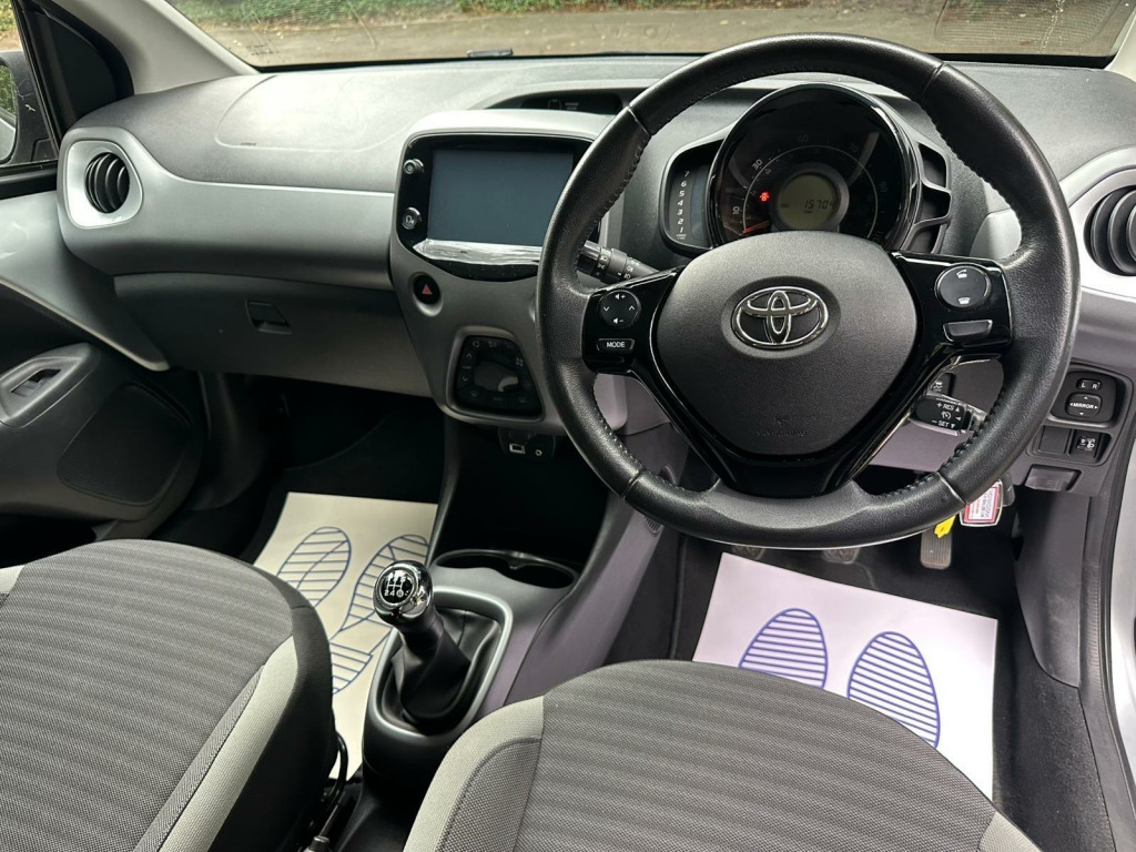 SUPPLIED WITH FULL SERVICE INC TIMING BELT IF REQ! 12 MONTHS MOT! 12 MONTHS FREE AA BREAKDOWN COVER! AND 3 MONTHS PERSONAL PARTS AND LABOUR WARRANTY! We as a garage have been established since 1997 and from the beginning, have always worked hard to provide the best possible service to our customers. One of the key elements of this service is our 3 month personal warranty. It is supplied with the majority of our cars, free of charge and covers any faults which may occur with the car in the first 3 months of purchase! Unlike conventional warranty booklets the warranty is held with us personally. This unique approach guarantees that you receive the best possible service and that the problem is solved conveniently and successfully. 2019 Toyota AYGO VVT-i x-trend presents an exceptional opportunity with its remarkably low mileage of just 15,000 miles. As a 1.0L petrol model, this Euro 6 compliant vehicle offers a blend of efficiency and practicality. The x-trend trim level comes equipped with a 7in x-touch multimedia system, featuring Bluetooth connectivity for seamless audio streaming and hands free calls, alongside smartphone integration for both Apple CarPlay and Android Auto. For added convenience and safety, it includes auto headlights and a reversing camera with rear parking assistance.The appeal of this AYGO is further enhanced by its impressive fuel economy, achieving a notable 57 miles per gallon. This, combined with its low CO2 emissions and placement in a low insurance group, indicates that this vehicle is more economical to run and maintain compared to many others in its class. These highlights make it a sensible and cost effective choice for everyday driving. in alloy wheels - 8 spoke - black machined-faced, 3-spoke leather steering wheel, 7in x-touch multimedia system, abs - anti lock braking system, auto headlights, automatic air conditioning, bluetooth connectivity, chrome insert on gear shift, chrome inside door handles, clean air filter, cupholder - front and rear, dab digital radio, daytime running lights - led and rear leds, decal kit - front and rear bumper and side sills, door handles - body coloured, door mirrors - body colour, electric front windows, electric power steering - eps, electrically adjustable heated door mirrors, emergency brake-light signal - ebs - hazard type, front 12v power outlet, front fog lights, front passenger airbag on-off switch, front seat belt reminder, glovebox, hac - hill start assist control, headlights - electronic levelling, isofix fixing points, instrument panel - body coloured, integrated rear spoiler, leather gear shift, manual rear view mirror, manual tilt steering wheel, projector halogen headlight with led tracer lights, rear headrests x2, rear privacy glass, rear seat belt reminder, rear window demister, recline and slide adjustment - driver and front passengers, reversing camera, seat belt - pre-tensioners and force limiters, seats - 50-50 split folding rear, seats - drivers height adjustment, smartphone integration - apple car play and android auto, space saver spare wheel, steering wheel - audio and telephone controls, storage - front door pockets, storage - rear door pockets, storage pocket in central console, supplemental restraint system - srs - airbags - 6 airbags, tonneau cover, tyre pressure warning system, usb connection, unique design air vents with colour surround, vsc - vehicle stability control