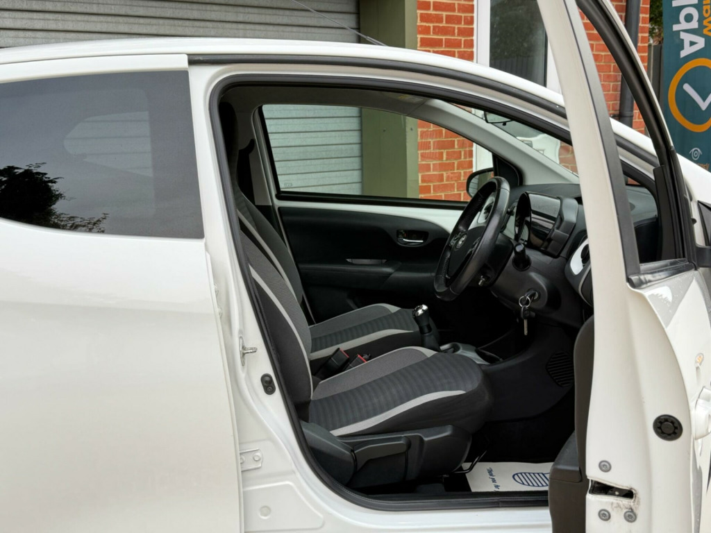 HPI Clear, free 6 months warranty, Full Service History with a recent full service & long MOT remaining (last MOT advisories rectified). Free 30 miles delivery. 2 keys. ULEZ compliant. Just 2 owners from new. This amazing car is ready to drive away same day!!!We have for you here an excellent, a very high in demand and popular Toyota Aygo in immaculate condition both inside and out. This exceptionally reliable and well maintained car, drives and feels great. Packed with features and extras. This car is economical to run, insure and maintain, and it is a fantastic car at unbeatable price! Only 2 owners from new! Has 2 keys, full service history with a recent full service, recent MOT carried out and the car includes 6 months warranty with options to extend. Full HPI checked and PASSED. HPI certificate provided at NO EXTRA COST. A car that ticks all the boxes! Buy with confidence! Finance options available, contact us for more information.Contact number: 01344926227 Or 07459108076 in alloy wheels - 8 spoke - black machined-faced, 3-spoke leather steering wheel, 4 seat capacity, 7in x-touch multimedia system, abs - anti lock braking system, auto headlights, automatic air conditioning, body coloured side air vent surround, chrome insert on gear shift, chrome interior door handles, clean air filter, cupholder - front and rear, dab digital radio, daytime running lights - led and rear leds, decal kit - front and rear bumper and side sills, door handles - body coloured, door mirrors - body colour, electric front windows, electric power steering - eps, electrically adjustable heated door mirrors, emergency brake-light signal - ebs - hazard type, force limiters on rear seatbelts, front 12v power outlet, front fog lights, front passenger airbag on-off switch, front seat belt reminder, glovebox, hac - hill start assist control, headlights - electronic levelling, isofix fixing points, instrument panel - body coloured, integrated rear spoiler, led rear brake lights, leather gear shift, manual rear view mirror, manual tilt steering wheel, projector halogen headlight with led tracer lights, rear headrests x2, rear privacy glass, rear seat belt reminder, rear window demister, recline and slide adjustment - driver and front passengers, reversing camera, seat belt - pre-tensioners and force limiters, seats - 50-50 split folding rear, seats - drivers height adjustment, smartphone integration - powered by pioneer, space saver spare wheel, steering wheel - audio and telephone controls, storage - front door pockets, storage - rear door pockets, storage pocket in central console, supplemental restraint system - srs - airbags - 6 airbags, tonneau cover, tyre pressure warning system, usb and aux connection, unique design air vents with colour surround, vsc - vehicle stability control, vanity mirror on driver and passengers sun visor, apple carplay, android auto, rear parking camera, mirror link, essential protection pack, graphite fabric - dark and light grey