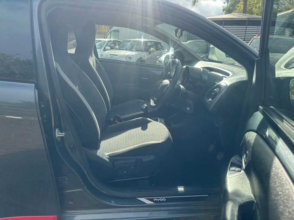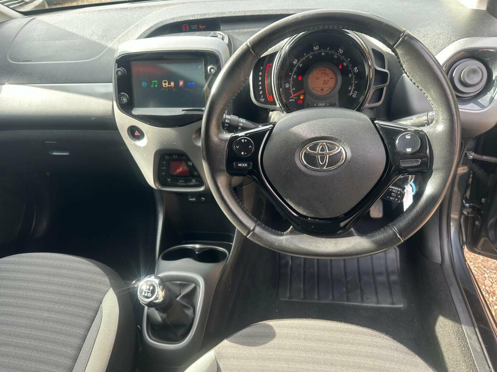 This stunning Toyota AYGO 1.0 VVT-i x-trend Euro 6 5dr, is in pristine condition inside and out. One owner from new and finished in Grey with alloy wheels and a sleek black interior, its a head-turner. , , As an X-trend model it comes packed with features: , Apple carplay & Android auto, Reverse Camera, Park sensors, Cruise control, Bluetooth, Air conditioning, Electric windows , Electric mirrors, Remote central locking , Privacy glass, Multi-function steering wheel , Alloy wheels, And much more!, This vehicle has just been serviced, has 2 keys and is ready for its next owner. The car boasts a full service history with the following services:, 1st - PDi - 2019 @ delivery miles , 2nd service - 2020 @ 9k miles, 3rd service - 2021 @ 18k miles , 4th service - 2022 @ 25k miles , 5th service - 2023 @ 29k miles , 6th service - 2025 @ 33k miles , **** PLEASE CALL AND CONFIRM CAR IS ON-SITE AND AVAILABLE FOR VIEWING BEFORE TRAVELLING TO US AS NOT ALL CARS ARE KEPT ON-SITE. *****, At Totally Trade Direct, we pride ourselves on offering a RAC Fully Comprehensive 3 Month Warranty with all our vehicles which can be extended to 12/24/36 months and includes a 12 month breakdown cover. Our prices are checked daily to ensure competitive prices, and each vehicle undergoes a rigorous Pre-Delivery Inspection (PDI), which will be provided at the time of collection. All of our vehicles are HPI clear, and will come with a minimum of 6 months MOT. If you require any further information on this vehicle, or, you would like to arrange a viewing, please contact us here. We are based in the picturesque setting of North Middlesex golf club, Whetstone N20 0NL and are open 7 days a week. We are also an approved RAC dealer so you really can buy with confidence. We can also take your old car in Part Exchange, and have both HP and PCP finance funding options available with £0 deposit!, (Excludes part exchange to clear) and £0 deposit finance available.
