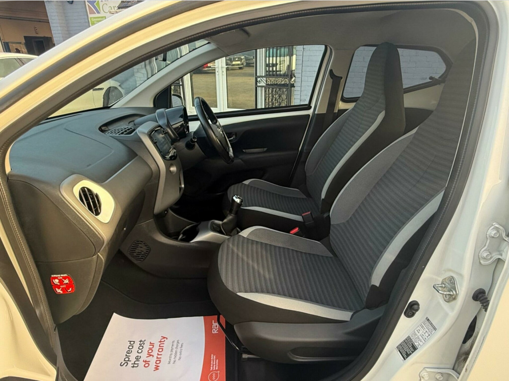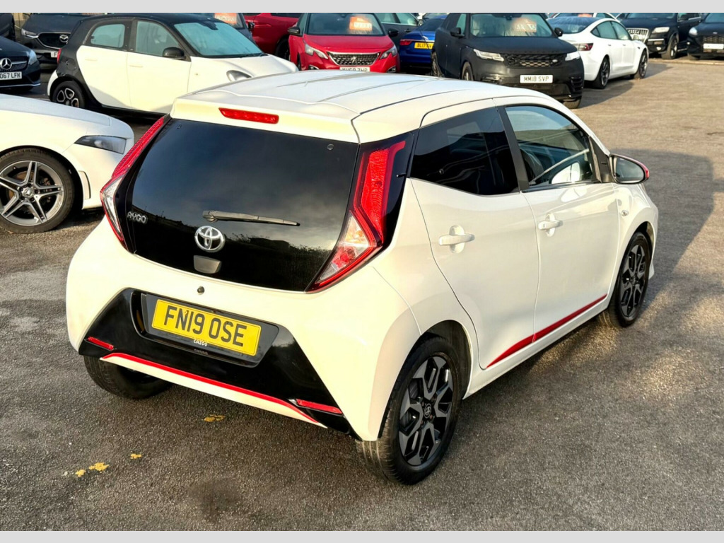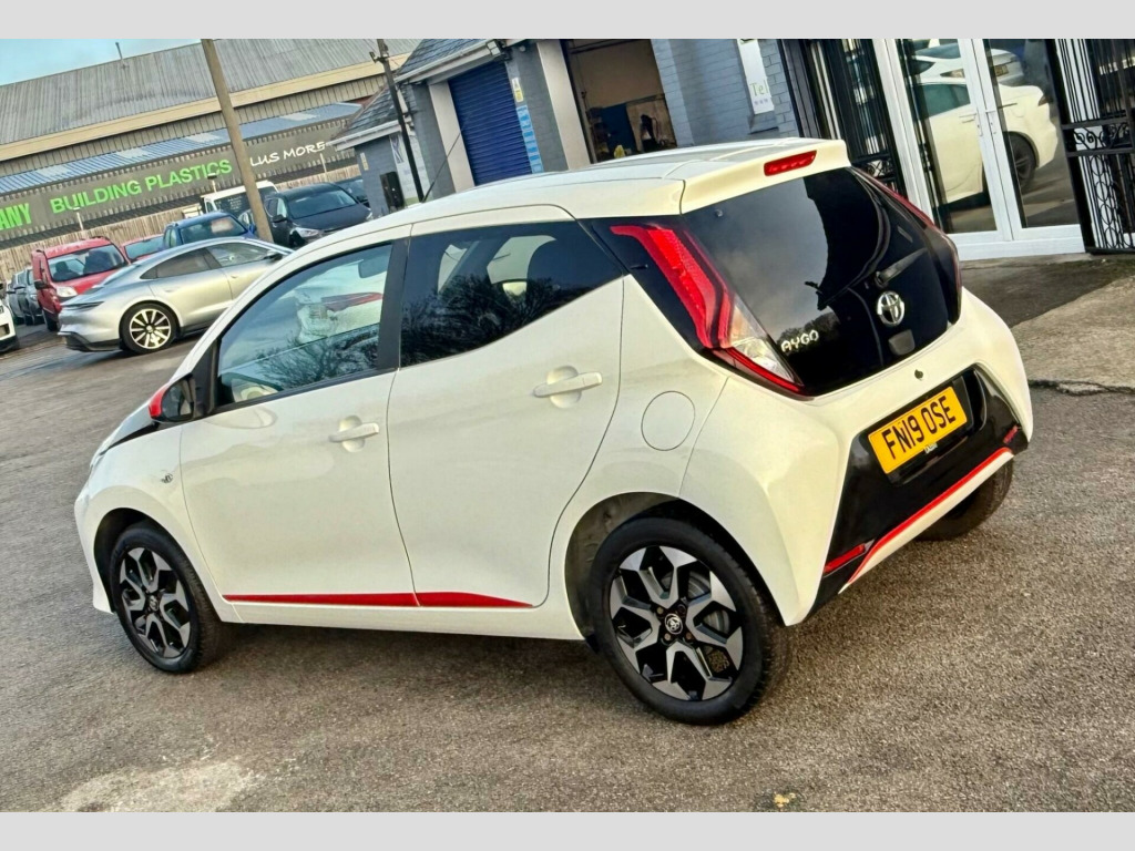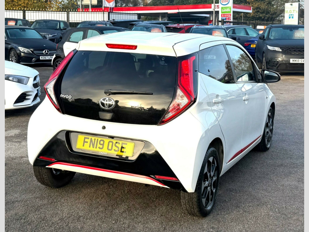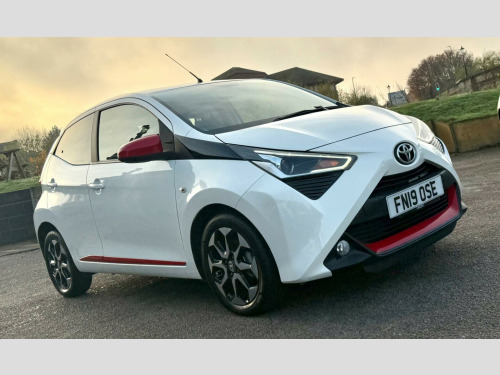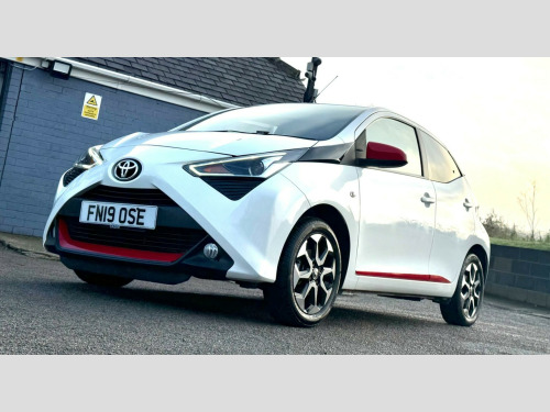 2 YEARS WARRANTY PARTS AND LABOUR + This 2019 Toyota AYGO VVT-i x-trend is a smart choice for those seeking an economical and well equipped city car. Powered by a 1.0L petrol engine, this Euro 6 compliant model offers a smooth driving experience. Inside, you'll find a 7in x-touch multimedia system that includes Bluetooth connectivity, allowing for seamless integration with your smartphone via Apple CarPlay and Android Auto. The convenience continues with automatic air conditioning and automatic headlights, ensuring comfort and ease on every journey.The AYGO x-trend stands out with its impressive fuel economy, achieving a highlight of 57 miles per gallon, which indicates it is more economical than many similar vehicles. Furthermore, its low insurance group rating and low CO2 emissions highlight its cost effectiveness and environmental consideration, making it an appealing option for budget conscious and eco aware drivers alike. in alloy wheels - 8 spoke - black machined-faced, 3-spoke leather steering wheel, 7in x-touch multimedia system, abs - anti lock braking system, auto headlights, automatic air conditioning, bluetooth connectivity, chrome insert on gear shift, chrome inside door handles, clean air filter, cupholder - front and rear, dab digital radio, daytime running lights - led and rear leds, decal kit - front and rear bumper and side sills, door handles - body coloured, door mirrors - body colour, electric front windows, electric power steering - eps, electrically adjustable heated door mirrors, emergency brake-light signal - ebs - hazard type, front 12v power outlet, front fog lights, front passenger airbag on-off switch, front seat belt reminder, glovebox, hac - hill start assist control, headlights - electronic levelling, isofix fixing points, instrument panel - body coloured, integrated rear spoiler, leather gear shift, manual rear view mirror, manual tilt steering wheel, projector halogen headlight with led tracer lights, rear headrests x2, rear privacy glass, rear seat belt reminder, rear window demister, recline and slide adjustment - driver and front passengers, reversing camera, seat belt - pre-tensioners and force limiters, seats - 50-50 split folding rear, seats - drivers height adjustment, smartphone integration - apple car play and android auto, space saver spare wheel, steering wheel - audio and telephone controls, storage - front door pockets, storage - rear door pockets, storage pocket in central console, supplemental restraint system - srs - airbags - 6 airbags, tonneau cover, tyre pressure warning system, usb connection, unique design air vents with colour surround, vsc - vehicle stability control