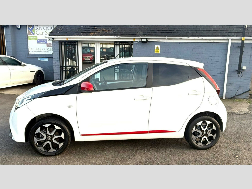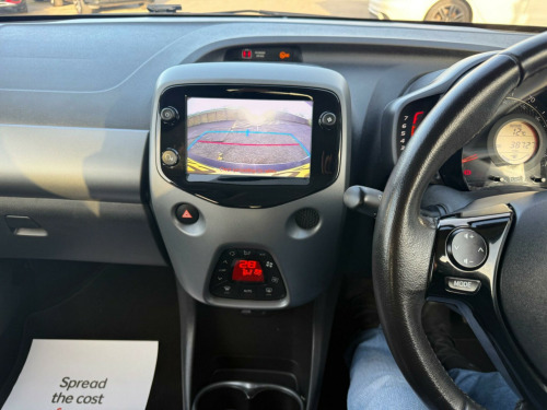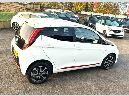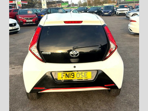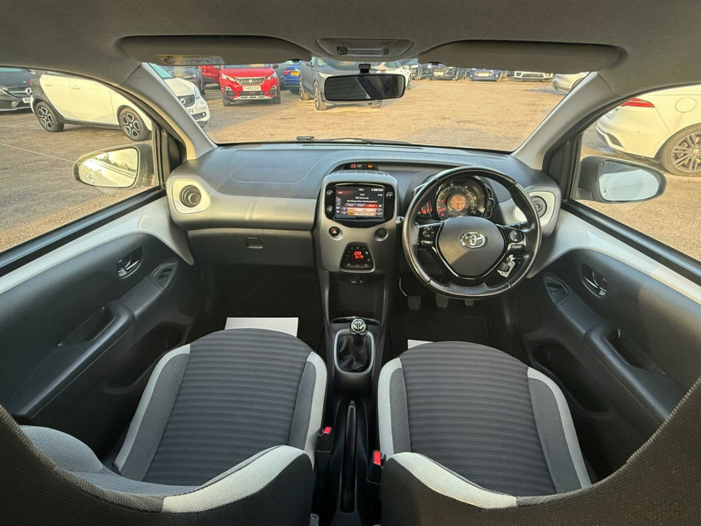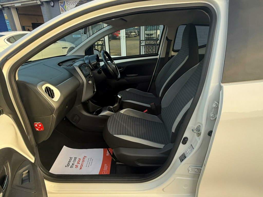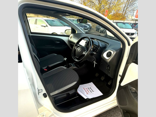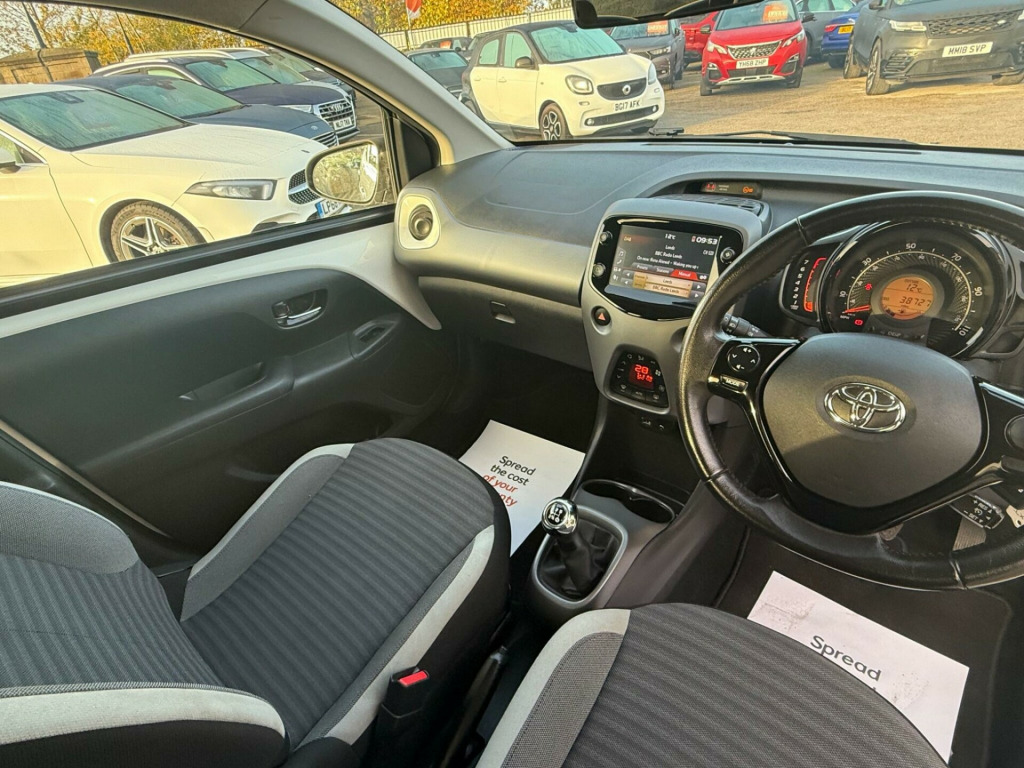 2 YEARS WARRANTY PARTS AND LABOUR + This 2019 Toyota AYGO VVT-i x-trend is a smart choice for those seeking an economical and well equipped city car. Powered by a 1.0L petrol engine, this Euro 6 compliant model offers a smooth driving experience. Inside, you'll find a 7in x-touch multimedia system that includes Bluetooth connectivity, allowing for seamless integration with your smartphone via Apple CarPlay and Android Auto. The convenience continues with automatic air conditioning and automatic headlights, ensuring comfort and ease on every journey.The AYGO x-trend stands out with its impressive fuel economy, achieving a highlight of 57 miles per gallon, which indicates it is more economical than many similar vehicles. Furthermore, its low insurance group rating and low CO2 emissions highlight its cost effectiveness and environmental consideration, making it an appealing option for budget conscious and eco aware drivers alike. in alloy wheels - 8 spoke - black machined-faced, 3-spoke leather steering wheel, 7in x-touch multimedia system, abs - anti lock braking system, auto headlights, automatic air conditioning, bluetooth connectivity, chrome insert on gear shift, chrome inside door handles, clean air filter, cupholder - front and rear, dab digital radio, daytime running lights - led and rear leds, decal kit - front and rear bumper and side sills, door handles - body coloured, door mirrors - body colour, electric front windows, electric power steering - eps, electrically adjustable heated door mirrors, emergency brake-light signal - ebs - hazard type, front 12v power outlet, front fog lights, front passenger airbag on-off switch, front seat belt reminder, glovebox, hac - hill start assist control, headlights - electronic levelling, isofix fixing points, instrument panel - body coloured, integrated rear spoiler, leather gear shift, manual rear view mirror, manual tilt steering wheel, projector halogen headlight with led tracer lights, rear headrests x2, rear privacy glass, rear seat belt reminder, rear window demister, recline and slide adjustment - driver and front passengers, reversing camera, seat belt - pre-tensioners and force limiters, seats - 50-50 split folding rear, seats - drivers height adjustment, smartphone integration - apple car play and android auto, space saver spare wheel, steering wheel - audio and telephone controls, storage - front door pockets, storage - rear door pockets, storage pocket in central console, supplemental restraint system - srs - airbags - 6 airbags, tonneau cover, tyre pressure warning system, usb connection, unique design air vents with colour surround, vsc - vehicle stability control