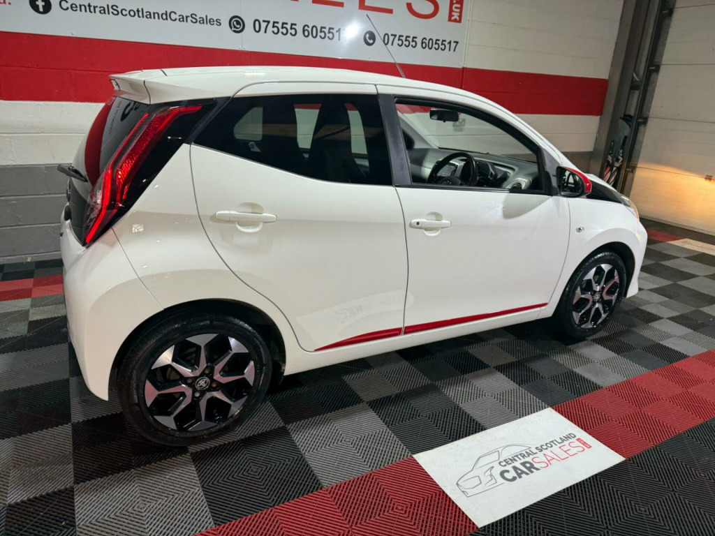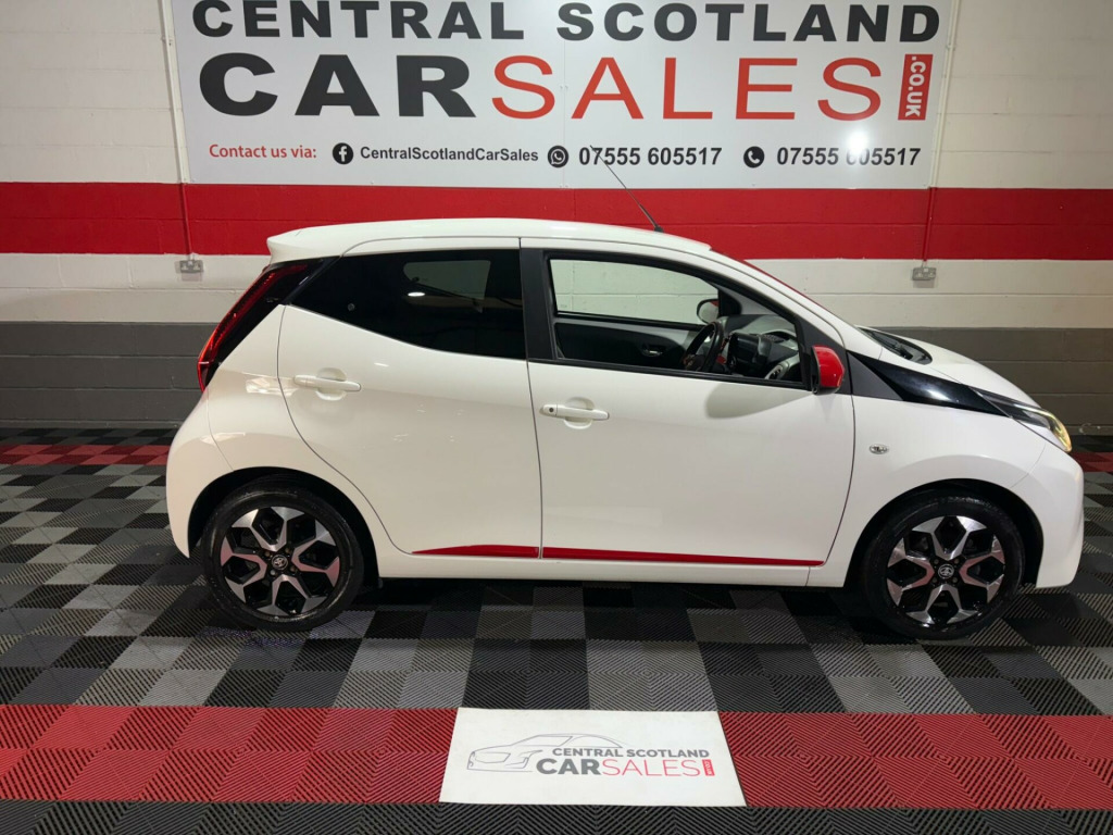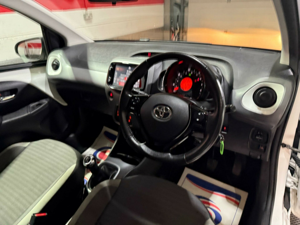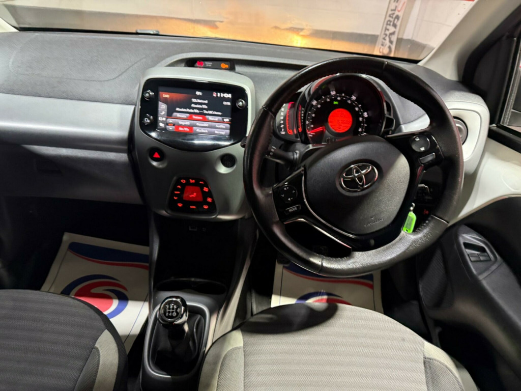 This 2019 Toyota AYGO VVT-i x-trend boasts a full service history, offering peace of mind alongside its stylish design. This Euro 6 compliant model features a 1.0L petrol engine and comes with a 12 month MOT provided on purchase, along with a 2 month warranty. Inside, you'll find a body coloured centre console, and for added convenience, it includes a Parking Pack with rear parking sensors and a reversing camera, as well as auto headlights. The Protection Plus Pack further enhances its appeal.The AYGO x-trend stands out with its impressive fuel economy, achieving a highlight of 57 mpg, which indicates it is more economical than many similar vehicles. Its low CO2 emissions and low insurance group also contribute to lower running costs, making it a sensible choice for everyday driving. rking pack, protection plus pack, tyre repair kit, body coloured centre console, graphite fabric - dark and light grey, 15in alloy wheels - 8 spoke - black machined-faced, 3-spoke leather steering wheel, 7in x-touch multimedia system, abs - anti lock braking system, auto headlights, automatic air conditioning, bluetooth connectivity, chrome insert on gear shift, chrome inside door handles, clean air filter, cupholder - front and rear, dab digital radio, daytime running lights - led and rear leds, decal kit - front and rear bumper and side sills, door handles - body coloured, door mirrors - body colour, electric front windows, electric power steering - eps, electrically adjustable heated door mirrors, emergency brake-light signal - ebs - hazard type, front 12v power outlet, front fog lights, front passenger airbag on-off switch, front seat belt reminder, glovebox, hac - hill start assist control, headlights - electronic levelling, isofix fixing points, instrument panel - body coloured, integrated rear spoiler, leather gear shift, manual rear view mirror, manual tilt steering wheel, projector halogen headlight with led tracer lights, rear headrests x2, rear privacy glass, rear seat belt reminder, rear window demister, recline and slide adjustment - driver and front passengers, reversing camera, seat belt - pre-tensioners and force limiters, seats - 50-50 split folding rear, seats - drivers height adjustment, smartphone integration - apple car play and android auto, space saver spare wheel, steering wheel - audio and telephone controls, storage - front door pockets, storage - rear door pockets, storage pocket in central console, supplemental restraint system - srs - airbags - 6 airbags, tonneau cover, tyre pressure warning system, usb connection, unique design air vents with colour surround, vsc - vehicle stability control