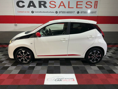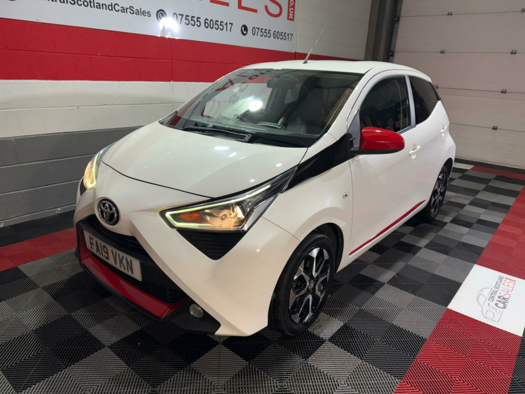 This 2019 Toyota AYGO VVT-i x-trend boasts a full service history, offering peace of mind alongside its stylish design. This Euro 6 compliant model features a 1.0L petrol engine and comes with a 12 month MOT provided on purchase, along with a 2 month warranty. Inside, you'll find a body coloured centre console, and for added convenience, it includes a Parking Pack with rear parking sensors and a reversing camera, as well as auto headlights. The Protection Plus Pack further enhances its appeal.The AYGO x-trend stands out with its impressive fuel economy, achieving a highlight of 57 mpg, which indicates it is more economical than many similar vehicles. Its low CO2 emissions and low insurance group also contribute to lower running costs, making it a sensible choice for everyday driving. in alloy wheels - 8 spoke - black machined-faced, 3-spoke leather steering wheel, 7in x-touch multimedia system, abs - anti lock braking system, auto headlights, automatic air conditioning, bluetooth connectivity, chrome insert on gear shift, chrome inside door handles, clean air filter, cupholder - front and rear, dab digital radio, daytime running lights - led and rear leds, decal kit - front and rear bumper and side sills, door handles - body coloured, door mirrors - body colour, electric front windows, electric power steering - eps, electrically adjustable heated door mirrors, emergency brake-light signal - ebs - hazard type, front 12v power outlet, front fog lights, front passenger airbag on-off switch, front seat belt reminder, glovebox, hac - hill start assist control, headlights - electronic levelling, isofix fixing points, instrument panel - body coloured, integrated rear spoiler, leather gear shift, manual rear view mirror, manual tilt steering wheel, projector halogen headlight with led tracer lights, rear headrests x2, rear privacy glass, rear seat belt reminder, rear window demister, recline and slide adjustment - driver and front passengers, reversing camera, seat belt - pre-tensioners and force limiters, seats - 50-50 split folding rear, seats - drivers height adjustment, smartphone integration - apple car play and android auto, space saver spare wheel, steering wheel - audio and telephone controls, storage - front door pockets, storage - rear door pockets, storage pocket in central console, supplemental restraint system - srs - airbags - 6 airbags, tonneau cover, tyre pressure warning system, usb connection, unique design air vents with colour surround, vsc - vehicle stability control, parking pack, protection plus pack, tyre repair kit, body coloured centre console, graphite fabric - dark and light grey