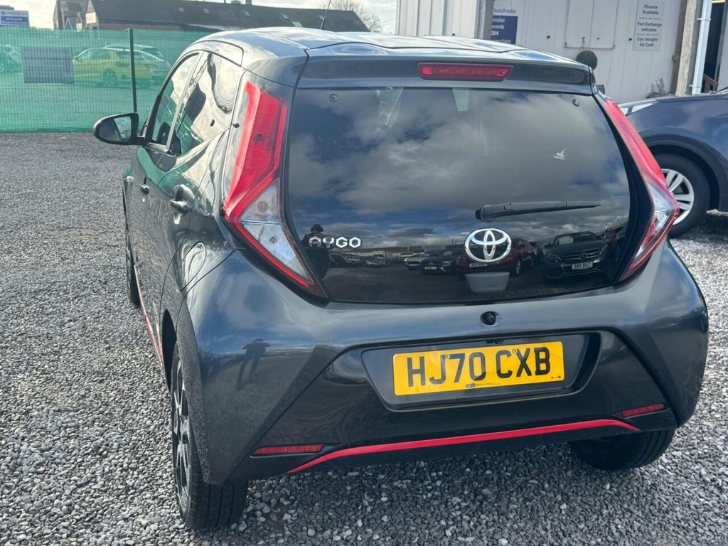 This 2020 Toyota AYGO VVT-i x-trend is a smart choice for those seeking an economical and well equipped compact car. Powered by a 1.0L Euro 6 petrol engine, this model offers a compelling blend of efficiency and practicality. Inside, you'll find the 7in x-touch Multimedia System, complete with Bluetooth connectivity and smartphone integration through Pioneer, supporting both Android Auto and Apple CarPlay. Comfort is enhanced by automatic air conditioning with climate control, while convenience is provided by auto headlights and a reversing camera for easier parking. A NEW MOT AND COMPLETED 22/01/2026 ULEZ-DAB-CARPLAY-REVERSE CAMERA-ISOFIX-LIVE VIDEO AVAILABLE - ALL CARS COME WITH A NATION WIDE WARRANTY & ARE HPI CHECKED-NO ADMIN FEES-HOME DELIVERY AVAILABLE- PX WELCOME -Trading standard Approved -FINANCE AVAILABLE & ALL CREDIT SCORES CONSIDERED The AYGO x-trend stands out with its impressive fuel economy, achieving a highlight of 57 miles per gallon, which indicates it is more economical than many similar vehicles. Furthermore, its low insurance group rating suggests lower running costs, and its low CO2 emissions highlight its environmental consideration compared to other cars in its class. This combination of features and cost saving benefits makes the 2020 Toyota AYGO VVT-i x-trend a sensible and appealing option. 15in Alloy Wheels - 8 Spoke - Black Mach, 3-Spoke Leather Steering Wheel, 4 Seat Capacity, 7in x-touch Multimedia System, ABS - Anti Lock Braking System, Auto Headlights, Automatic Air Conditioning, Body Coloured Side Air Vent Surround, Chrome Insert on Gear Shift, Clean Air Filter, Cupholder - Front and Rear, DAB Digital Radio, Daytime Running Lights - LED and Rear LE, Decal Kit - Front and Rear Bumper and Si, Door Handles - Body Coloured, Door Mirrors - Body Colour, Electric Front Windows, Electric Power Steering - EPS, Electrically Adjustable Heated Door Mirr, Emergency Brake-Light Signal - EBS - Haz, Front 12V Power Outlet, Front Fog Lights, Front Passenger Airbag On-Off Switch, Front Se