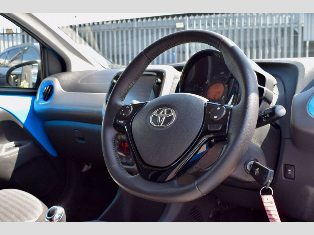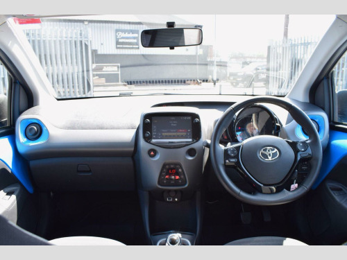 October 2019 69 Toyota AYGO 1.0 VVT-i x-trend Funroof x-shift finished in Cyan Splash with grey/black interior. Only 16800 miles covered by just one owner from new which is supported with excellent stamped service history totalling 5 services up to and including 2025 with the most recent having been performed in house ready for the next owner. This car is presented in fantastic condition inside and out as you would expect - bodywork, alloys and interior all very well maintained and meticulously cared for by the same mature owner from new. Supplied with all correct documentation, handbooks etc and subjected to our usual strict pre delivery inspection and preparation process ensuring all cosmetic and mechanical elements are in good order including 4 brand new tyres and new front brake discs and pads. Well equipped with a long list of features, highlights including: 15in Alloy Wheels - 8 Spoke - Black Machined-Faced, Auto Headlights, DAB Digital Radio, Electrically Adjustable Heated Door Mirrors, HAC - Hill Start Assist Control, Projector Halogen Headlight with LED Tracer Lights, Rear Privacy Glass, Reversing Camera, Smartphone Integration - Apple Car Play and Android Auto, Space Saver Spare Wheel, USB Connection and more. , UK wide delivery available. Please get in touch for details. , PAYMENT: We accept debit cards for payments up to £500. For larger payments we accept BACS (bank transfer) only. Please check transfer processing times and limits with your bank if you plan to pay on collection as we are unable to release cars without cleared funds. Please also bring anything you may need to access your online banking on the day including securekeys, card readers etc. We accept cash payments up to £9000 which are subject to a 2% banking fee. Please note a £250 admin fee is applicable for purchases funded by third party finance lenders. , Please note: Although every effort is made to ensure the accuracy of every advert and vehicle specification, system and human errors can occur from time to time and it is advised to check for confirmation.