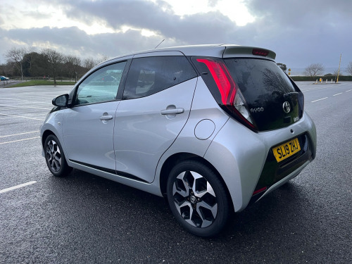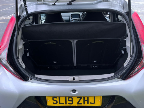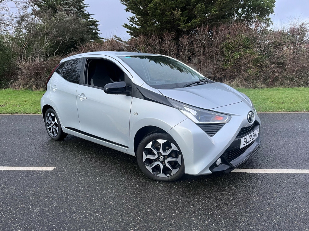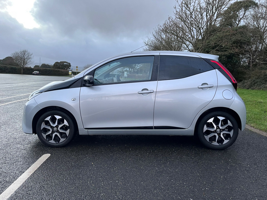 2019 Toyota Aygo Service history Reversing camera Part exchange welcome , in alloy wheels - 8 spoke - black machined-faced, chrome inside door handles, decal kit - front and rear bumper and side sills, door handles - body coloured, door mirrors - body colour, electric front windows, electrically adjustable heated door mirrors, integrated rear spoiler, rear privacy glass, rear window demister, space saver spare wheel, 3-spoke leather steering wheel, automatic air conditioning, chrome insert on gear shift, clean air filter, cupholder - front and rear, glovebox, instrument panel - body coloured, leather gear shift, manual rear view mirror, manual tilt steering wheel, rear headrests x2, recline and slide adjustment - driver and front passengers, seats - 50-50 split folding rear, seats - drivers height adjustment, steering wheel - audio and telephone controls, storage - front door pockets, storage - rear door pockets, storage pocket in central console, tonneau cover, unique design air vents with colour surround, 7in x-touch multimedia system, bluetooth connectivity, dab digital radio, front 12v power outlet, smartphone integration - apple car play and android auto, usb connection, abs - anti lock braking system, emergency brake-light signal - ebs - hazard type, front passenger airbag on-off switch, front seat belt reminder, hac - hill start assist control, isofix fixing points, rear seat belt reminder, seat belt - pre-tensioners and force limiters, supplemental restraint system - srs - airbags - 6 airbags, vsc - vehicle stability control, auto headlights, daytime running lights - led and rear leds, front fog lights, headlights - electronic levelling, projector halogen headlight with led tracer lights, electric power steering - eps, reversing camera, tyre pressure warning system