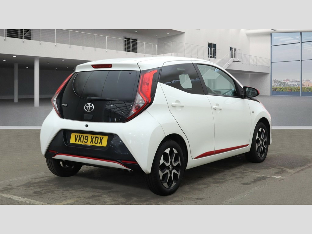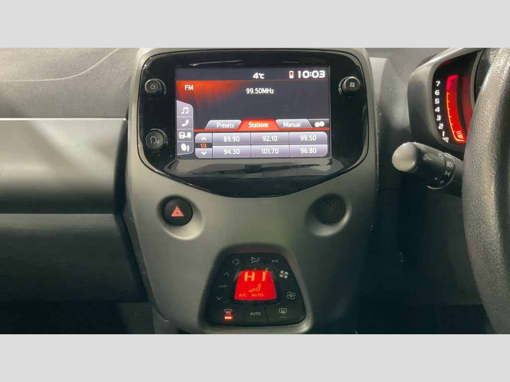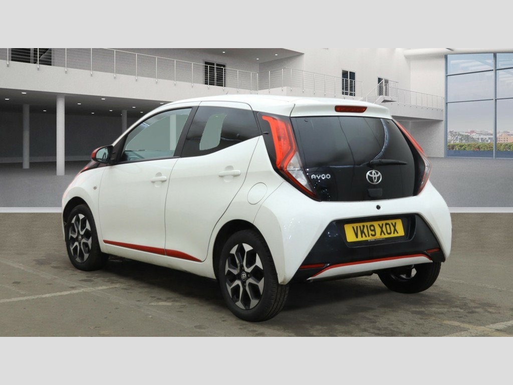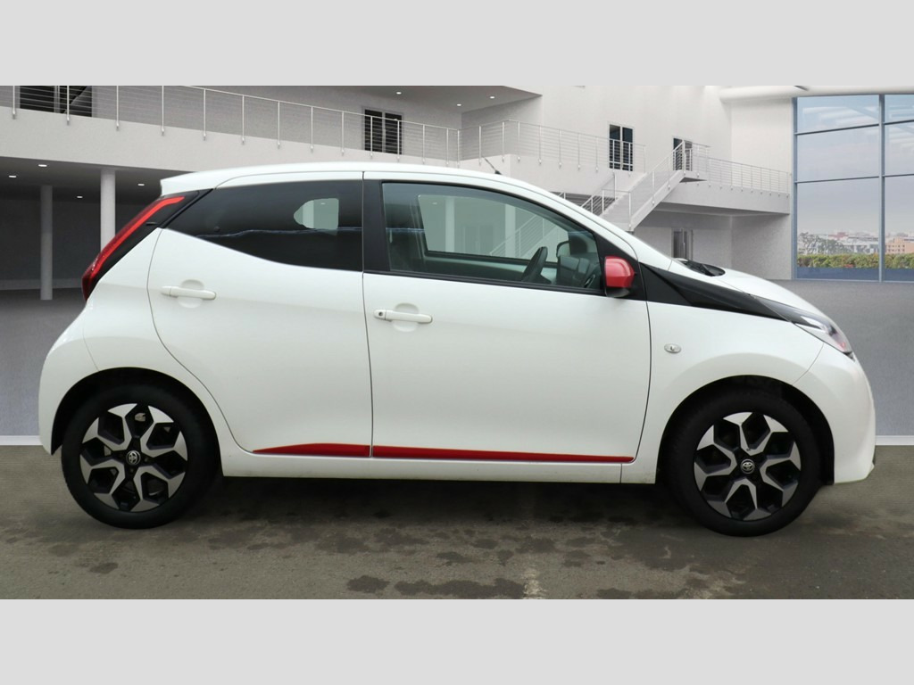 This 2019 Toyota Aygo 1.0 VVT-i x-trend Hatchback with just 52989 miles on the clock is a stylish and efficient choice for city driving. Powered by a Petrol engine, this 5-door, 4-seater vehicle is ULEZ compliant and comes with a valid MOT until 06/10/2026. With its Euro 6 rating and 71 ps output, it offers a smooth and responsive manual drive, ideal for navigating urban streets. Its eye-catching exterior features include 15in Alloy Wheels, Chrome Inside Door Handles, and a stylish Decal Kit, while the interior boasts comfortable and practical features like Body Coloured Door Handles and Body Coloured Door Mirrors. With a compact yet spacious design, this Hatchback is perfect for daily commutes or weekend getaways, combining reliability, economy, and modern style in one versatile package. in alloy wheels - 8 spoke - black machined-faced, chrome inside door handles, decal kit - front and rear bumper and side sills, door handles - body coloured, door mirrors - body colour, electric front windows, electrically adjustable heated door mirrors, integrated rear spoiler, rear privacy glass, rear window demister, space saver spare wheel, 3-spoke leather steering wheel, automatic air conditioning, chrome insert on gear shift, clean air filter, cupholder - front and rear, glovebox, instrument panel - body coloured, leather gear shift, manual rear view mirror, manual tilt steering wheel, rear headrests x2, recline and slide adjustment - driver and front passengers, seats - 50-50 split folding rear, seats - drivers height adjustment, steering wheel - audio and telephone controls, storage - front door pockets, storage - rear door pockets, storage pocket in central console, tonneau cover, unique design air vents with colour surround, 7in x-touch multimedia system, bluetooth connectivity, dab digital radio, front 12v power outlet, smartphone integration - apple car play and android auto, usb connection, abs - anti lock braking system, emergency brake-light signal - ebs - hazard type, front passenger airbag on-off switch, front seat belt reminder, hac - hill start assist control, isofix fixing points, rear seat belt reminder, seat belt - pre-tensioners and force limiters, supplemental restraint system - srs - airbags - 6 airbags, vsc - vehicle stability control, auto headlights, daytime running lights - led and rear leds, front fog lights, headlights - electronic levelling, projector halogen headlight with led tracer lights, electric power steering - eps, reversing camera, tyre pressure warning system