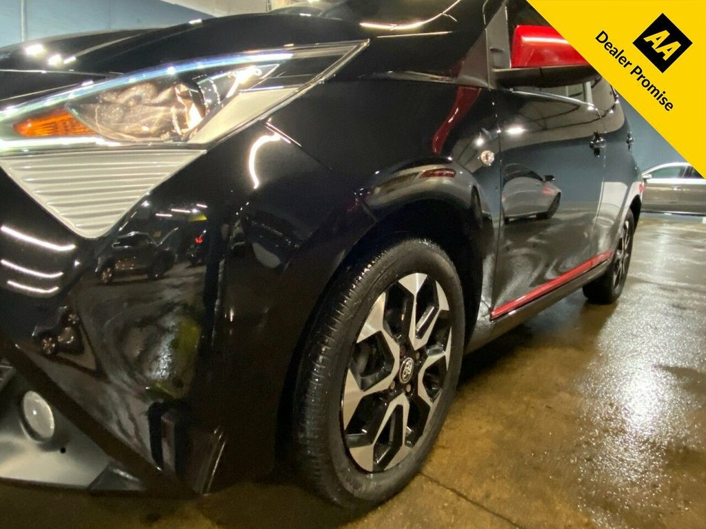 This 2021 Toyota AYGO VVT-i x-trend boasts a full dealership service history, offering peace of mind for its next owner. This stylish hatchback is equipped with a 1.0L petrol engine and meets Euro 6 emissions standards. Inside, you'll find the 7in x-touch Multimedia System, complete with Bluetooth connectivity and smartphone integration powered by Pioneer, offering seamless access to Android Auto and Apple CarPlay. The AYGO also features automatic headlights that turn on when needed, automatic air conditioning for a comfortable cabin temperature, and a reversing camera to aid with parking. The AYGO x-trend stands out with its impressive fuel economy, achieving a highlight of 58 miles per gallon, which indicates it is more economical than many other vehicles in its class. Furthermore, its low insurance group rating suggests that running costs will be kept to a minimum. The low CO2 emissions also highlight its efficiency and environmental consideration compared to similar cars. Bold Black, 15in Alloy Wheels - 10 Spoke - Black Mac, 3-Spoke Leather Steering Wheel, 4 Seat Capacity, 4 Speaker Sound System, 7in x-touch Multimedia System, ABS - Anti Lock Braking System, Analogue Tachometer, Auto Headlights, Automatic Air Conditioning, Black Roof Lining, Body Coloured Side Air Vent Surround, Chrome Insert on Gear Shift, Clean Air Filter, Cupholder - Front and Rear, DAB Digital Radio, Data Communication Module, Daytime Running Lights - LED and Rear LE, Decal Kit - Front and Rear Bumper and Si, Door Handles - Body Coloured, Door Mirrors - Body Colour, Electric Front Windows, Electric Power Steering - EPS, Electrically Adjustable Heated Door Mirr, Emergency Brake-Light Signa