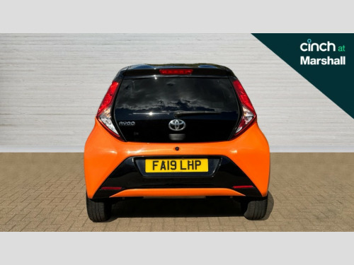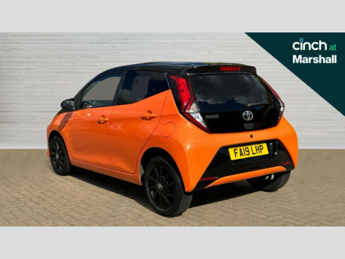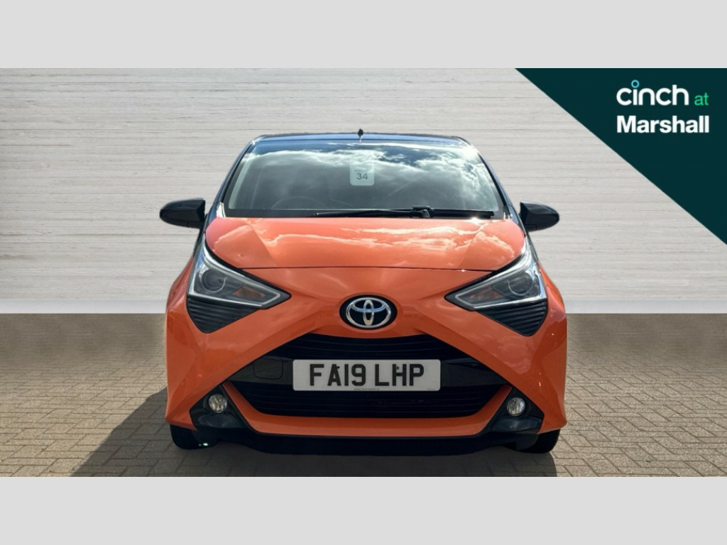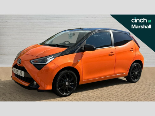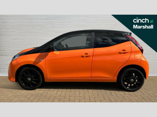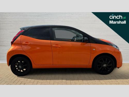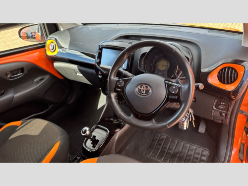 Toyota AYGO 1.0 VVT-i X-Cite 6 5dr x-shift 7" touch screen, Bluetooth system, Digital clock, Electric power steering, Fuel indicator with low level warning, Lights on warning, Rear view camera, Smartphone integration powered by pioneer compatible with Apple CarPlay and Android Auto, Tachometer, Vehicle Stability Control (VSC), 4 speakers, Auxiliary input socket, DAB Digital radio, iPod connection, MP3 connection, Multimedia System, Stereo radio, USB connection, 2 speed wipers/variable intermittent/mist function, Automatic headlights, Body colour bumpers, Body colour door handles, Electric adjustable door mirrors, Electric front windows, Electric headlamp adjustment, Front fog lights, Gloss black door mirrors, Green tinted glass, Heated door mirrors, Heated rear windscreen, LED daytime running lights, LED rear lights, Manually dimming rear view mirror, Metallic paint, Projector headlamps, Rain sensor windscreen wipers, Rear privacy glass, Rear spoiler, Rear window demister, Rear wiper, Roof mounted aerial, 12V Accessory socket, 3 spoke leather steering wheel, 50/50 split folding rear seat, Air recirculation system, Auto air conditioning, Carpet mats, Centre console storage, Chrome insert to gearknob, Chrome interior door handles, Driver and passenger sunvisors, Driver's seat height adjuster, Driver/passenger seat recline/slide adjust, Driver/passenger vanity mirrors with covers, Front and rear door pockets, Front cupholder, Front map reading lights, Glovebox, Height adjustable front head restraints, Isofix system on outer rear seats, Leather gear knob, Pollen filter, Rear cupholders, Rear headrests, Steering wheel mounted radio/phone controls, Stepless tilt adjustable steering column, Storage bins on all doors, Storage pockets in centre console, Tonneau cover, Zest cloth upholstery, ABS, Driver and passenger airbags, Emergency brake assist, ESP, Fasten seatbelt reminder, Force limiting rear seatbelts, Front side airbags, Height adjustable front seatbelts with pre-tensioners and load limiters, Hill start assist, Passenger airbag deactivate switch, Rear child proof door locks, Side curtain airbags, Tyre pressure warning, Engine immobiliser, Lockable fuel cap, Remote central locking, Air vent surround in body colour, 15" 10 spoke gloss black alloy wheels, Space saver spare wheel