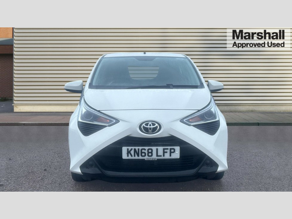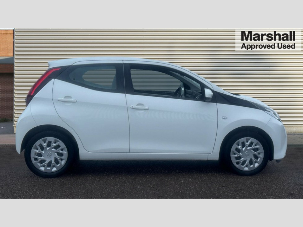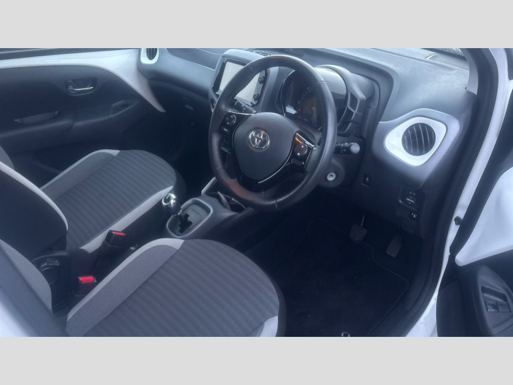 Toyota AYGO 1.0 VVT-i X-Play 5dr x-shift 7" touch screen, Bluetooth system, Digital clock, Electric power steering, Fuel indicator with low level warning, Lights on warning, Rear view camera, Tachometer, Vehicle Stability Control (VSC), Auxiliary input socket, DAB Digital radio, iPod connection, MP3 connection, Multimedia System, Stereo radio, USB connection, 2 speed wipers/variable intermittent/mist function, Body colour bumpers, Body colour door handles, Body colour door mirrors, Carbon rear diffuser, Electric adjustable door mirrors, Electric front windows, Green tinted glass, Headlamp levelling, Heated door mirrors, Heated rear windscreen, LED daytime running lights, LED rear lights, Projector headlamps, Rear spoiler, Rear window demister, Rear wiper, Roof mounted aerial, 12V Accessory socket, 3 spoke leather steering wheel, 50/50 split folding rear seat, Air conditioning, Air recirculation system, Centre console storage, Chrome insert to gearknob, Chrome interior door handles, Cloth upholstery, Driver and passenger sunvisors, Driver's seat height adjuster, Driver/passenger seat recline/slide adjust, Driver/passenger vanity mirrors with covers, Front and rear door pockets, Front cupholder, Front map reading lights, Glovebox, Graphite cloth upholstery, Height adjustable front head restraints, Isofix system on outer rear seats, Leather gear knob, Pollen filter, Rear cupholders, Rear headrests, Steering wheel mounted radio/phone controls, Stepless tilt adjustable steering column, Storage bins on all doors, Storage pockets in centre console, Tonneau cover, ABS, Driver and passenger airbags, Emergency brake assist, ESP, Fasten seatbelt reminder, Front side airbags, Height adjustable front seatbelts with pre-tensioners and load limiters, Hill start assist, Passenger airbag deactivate switch, Rear child proof door locks, Side curtain airbags, Tyre pressure warning, Engine immobiliser, Lockable fuel cap, Remote central locking, Tyre repair kit
