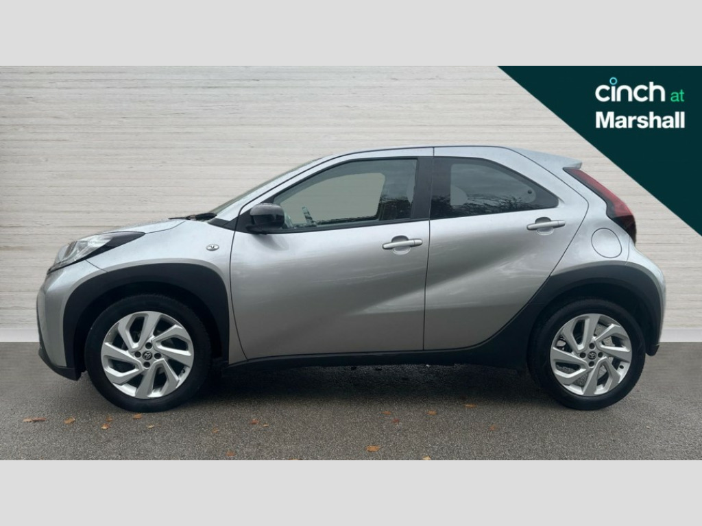 Toyota Aygo X 1.0 VVT-i Pure 5dr 4.2" TFT colour screen, Adjustable speed limiter, Analogue speedometer, Bluetooth connectivity, Digital tachograph, Driver attention alert system, eCall emergency call system, Electric power steering, Intersection turn assist, Key reminder warning, Noise reduction kit, Pre collision system with emergency steering assist, Reversing camera with static guide lines, Smart phone integration with Apple car play/Android Auto, Speed limit display, Start and stop, Vehicle Stability Control (VSC), 4 speakers, DAB digital audio broadcast, Toyota touch 2 multimedia System with 7" Screen display, USB connector, Auto headlights, Automatic headlights cut-off, Bicycle towing hook, Black lower front grille, Black rear bumper, Black side protection mouldings, Black upper front grille, Black wheel arch mouldings, Body colour door handles, Body coloured front bumper, Boot door scuff plate, Electric heated door mirrors, Follow me home headlights, Front power windows, Gloss black door mirrors, Headlight cut-off reminder, LED daytime running lights, LED front light guide, LED High mounted stop lamp, Manual day/night rear view mirror, Manual headlight levelling, Pagoda roof, Power adjustable door mirrors, Projector halogen headlights, Rain sensor, Rear combination lights LED bulb type, Rear side wing doors, Rear windscreen defogger, Rear windscreen wiper, Short antenna, Variable intermittent windscreen wipers, 12v power outlet - front, 2 seat bench in 2nd row, 3 spoke leather steering wheel, 50/50 split folding rear seat, Adhesive roof headlining, Adjustable speed limiter switch on steering wheel, Audio and telephone switches on steering wheel, Black insert on steering wheel, Boot light, Centre room light, Chrome interior door handles, Chrome surround on air conditioning buttons, Clean air filter, Fabric upholstery, Floor mats, Front and rear cup holders, Front head rest deco art, Front head restraints, Height adjustable driver seat, Intelligent adaptive cruise control switch on steering wheel, ISOFIX child restraint system on rear seats, Lane departure alert switch on steering wheel, Leather gearshift knob, Light grey roof lining, Manual air conditioning, Manual tilt steering wheel, Manually reclining and sliding driver seat, Manually reclining and sliding front passenger seat, Multimedia switches on steering wheel, Pollen filter, Rear door pockets, Rear head restraints, Satin silver insert on gear shift knob, Silver stitching on gear shift knob, Single compartment glovebox with lights, Single front passenger seat, Soft tonneau cover, Sun visors with mirror on driver and passenger side, Voice recognition switch on steering wheel, Toyota safety sense pack - Aygo X, Anti lock braking system + Electronic brake force distribution, Child safety door lock, Emergency brake light signal (EBS), Hill start assist control (HAC), Passenger airbag on/off switch, Seat belt reminder for front and rear seats, Supplement restraints system (SRS) - 6 airbags, Traction control, Tyre pressure warning system, Immobiliser, Remote power door locks, Black air vent surround, Black wheel centre caps, Tyre repair kit