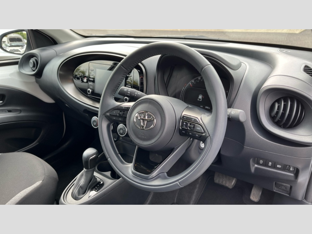Toyota Aygo X 1.0 VVT-i Pure 5dr Auto 4.2" TFT colour screen, Adjustable speed limiter, Analogue speedometer, Bluetooth connectivity, Digital tachograph, Driver attention alert system, eCall emergency call system, ECO-driving indicator, Electric power steering, Intersection turn assist, Key reminder warning, Noise reduction kit, Pre collision system with emergency steering assist, Reversing camera with static guide lines, Smart phone integration with Apple car play/Android Auto, Speed limit display, Start and stop, Vehicle Stability Control (VSC), 4 speakers, 9" HD multimedia display touch screen with Toyota smart connect, DAB digital audio broadcast, USB connector, Auto headlights, Automatic headlights cut-off, Bicycle towing hook, Black lower front grille, Black rear bumper, Black side protection mouldings, Black upper front grille, Black wheel arch mouldings, Body colour door handles, Body coloured front bumper, Boot door scuff plate, Electric heated door mirrors, Follow me home headlights, Front power windows, Gloss black door mirrors, Headlight cut-off reminder, LED daytime running lights, LED front light guide, LED High mounted stop lamp, Manual day/night rear view mirror, Manual headlight levelling, Pagoda roof, Power adjustable door mirrors, Power back door, Projector halogen headlights, Rain sensor, Rear combination lights LED bulb type, Rear side wing doors, Rear windscreen defogger, Rear windscreen wiper, Short antenna, Variable intermittent windscreen wipers, 12v power outlet - front, 2 seat bench in 2nd row, 3 spoke leather steering wheel, 50/50 split folding rear seat, Adhesive roof headlining, Adjustable speed limiter switch on steering wheel, Audio and telephone switches on steering wheel, Black insert on steering wheel, Boot light, Centre room light, Chrome interior door handles, Chrome surround on air conditioning buttons, Clean air filter, Fabric upholstery, Floor mats, Front and rear cup holders, Front head rest deco art, Front head restraints, Gear shift indicator, Height adjustable driver seat, Intelligent adaptive cruise control switch on steering wheel, ISOFIX child restraint system on rear seats, Lane departure alert switch on steering wheel, Leather gearshift knob, Light grey roof lining, Manual air conditioning, Manual tilt steering wheel, Manually reclining and sliding driver seat, Manually reclining and sliding front passenger seat, Multimedia switches on steering wheel, Pollen filter, Rear door pockets, Rear head restraints, Resin console box storage, Satin silver insert on gear shift knob, Silver stitching on gear shift knob, Single compartment glovebox with lights, Single front passenger seat, Soft tonneau cover, Sun visors with mirror on driver and passenger side, Voice recognition switch on steering wheel, Toyota safety sense pack - Aygo X, Anti lock braking system + Electronic brake force distribution, Child safety door lock, Emergency brake light signal (EBS), Hill start assist control (HAC), Passenger airbag on/off switch, Seat belt reminder for front and rear seats, Supplement restraints system (SRS) - 6 airbags, Traction control, Tyre pressure warning system, Immobiliser, Remote power door locks, Black air vent surround, Black wheel centre caps, Tyre repair kit