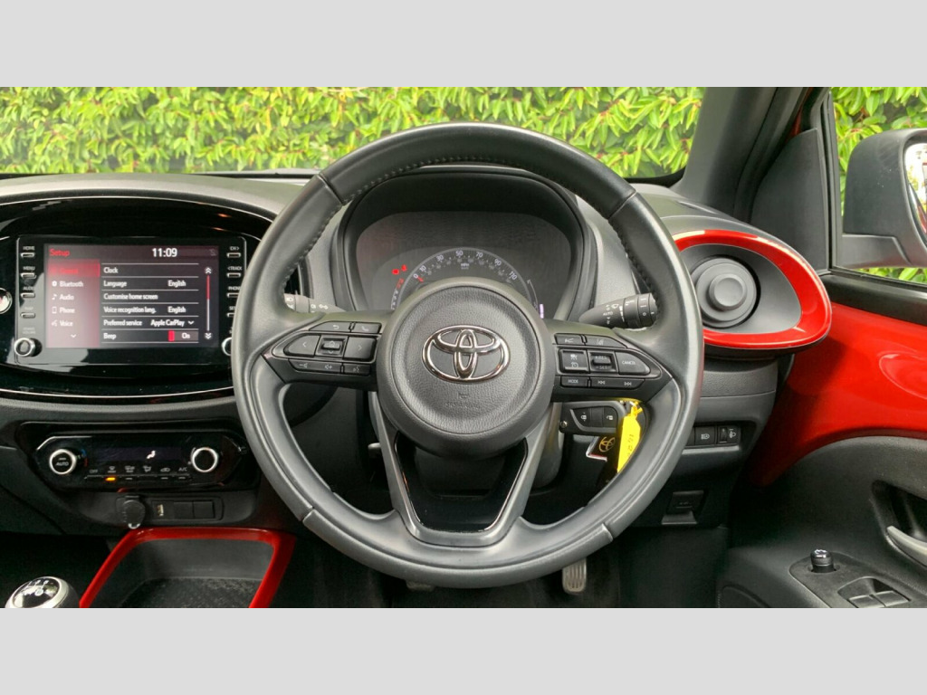 This 2023 Toyota Aygo X VVT-i Edge is a Toyota manufacturer approved vehicle with only one owner and a remarkably low mileage of just 11,206 miles. This 1.0L petrol model, registered in 2023, boasts a Euro 6 emission class and comes with a 12 month warranty for your peace of mind. Its MOT is valid until January 2026, and it benefits from partial service history, with the last service completed on 2025-07-07 at 10,102 miles. Notable features include a Parking Pack with front and rear sensors, a reversing camera, and smartphone integration for both Apple CarPlay and Android Auto. You'll also appreciate the convenience of auto headlights and Bluetooth connectivity.