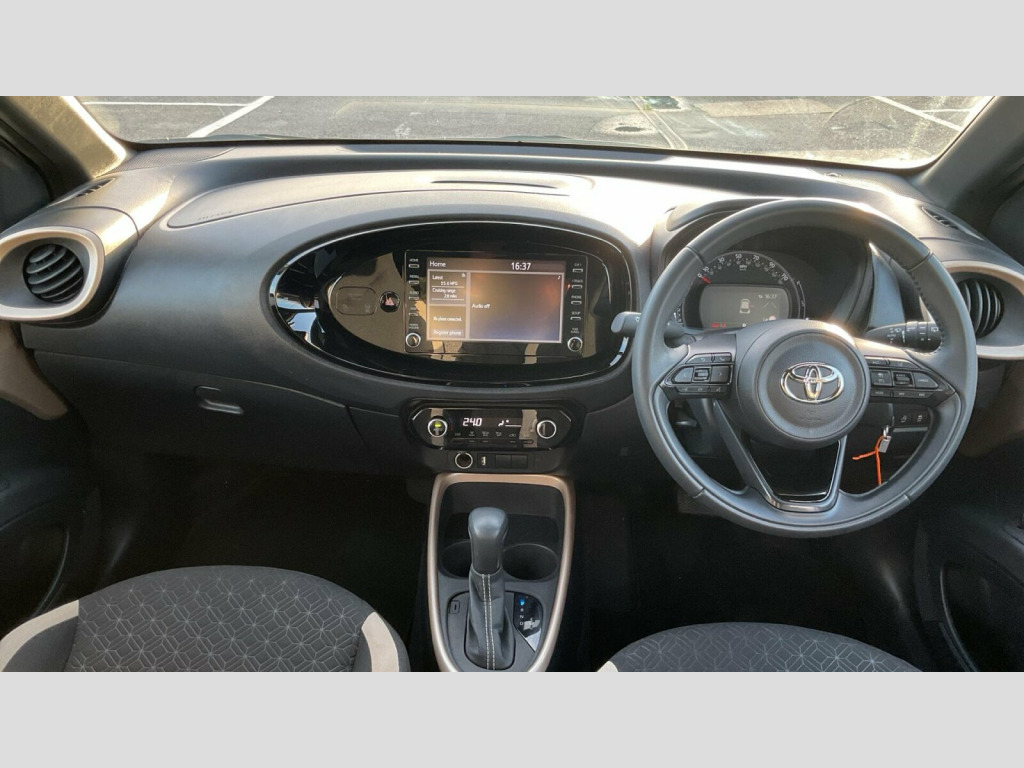 This 2022 Toyota Aygo X Edge Automatic is a Toyota manufacturer approved vehicle with a full service history, having had only one owner and its last service completed on 20th June 2025 at 23,754 miles. It boasts an MOT valid until June 2026 and comes with a 12 month warranty for your peace of mind. This Euro 6 compliant 1.0 litre petrol model is equipped with THE DESIRABLE PARKING PACK, featuring front and rear parking sensors, automatic headlights, and seamless smartphone integration with Apple CarPlay and Android Auto. Enjoy effortless journeys with Bluetooth connectivity and Toyota Safety Sense, which includes adaptive cruise control.