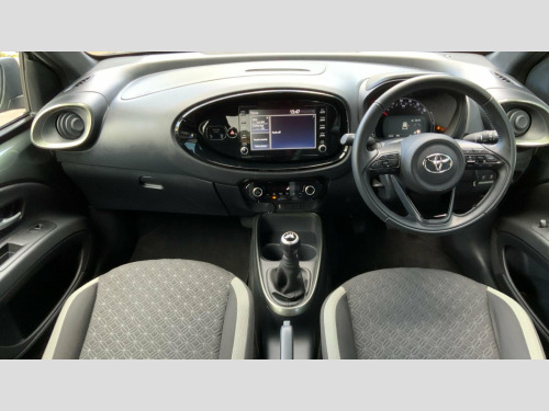 This 2022 Toyota Aygo X Edge is a Toyota manufacturer approved vehicle with a full service history, having had only one owner and a last service completed on 31st January 2025 at 25,731 miles. This Euro 6 compliant 1.0L petrol model comes with a 12 month warranty and a 12 month MOT provided on purchase, ensuring peace of mind. Notable features include smartphone integration with Apple CarPlay and Android Auto, adaptive cruise control as part of Toyota Safety Sense, Bluetooth connectivity, automatic headlights, and automatic air conditioning.