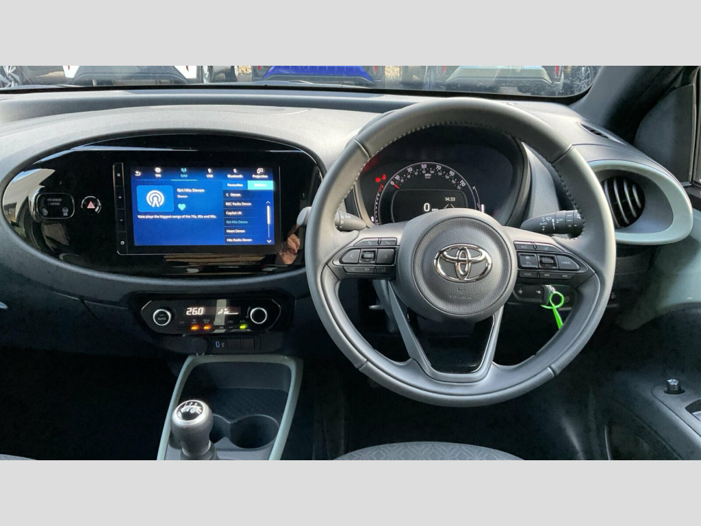 Further enhancing your driving experience, the Aygo X is equipped with Toyota Safety Sense, which also includes Adaptive Cruise Control, and Automatic Air Conditioning for effortless climate control. Auto headlights ensure optimal visibility in varying conditions. This Aygo X stands out with its impressive fuel economy of 59 mpg, a low CO2 emission rating, and a low insurance group, all of which indicate it is a more economical choice compared to similar vehicles. Parking Pack, 18in Alloy Wheels - 4-Double-Spoke - Bi-Tone Dark Grey - Machined-Face, 3-Spoke Leather Steering Wheel, 4.2in Multi-Information Screen, 50-50 Split Folding Rear 2nd Row Rear Seats, 8in Toyota Touch Multimedia System, 9in Toyota Smart Connect Multimedia System, Adaptive Cruise Control Switch on Steering Wheel, Adjustable Speed Limiter - ASL, Adjustable Speed Limiter -ASL- Switch on Steering Wheel, Analogue Speedometer, Anti-Lock Braking System - ABS - with Electronic Brake Force Distribution - EBD, Audio Switches on Steering Wheel, Auto Headlights, Auto Wipers, Automatic Air Conditioning, Automatic Headlight Cut-Off, Black Door Moulding, Black Insert on Steering Wheel, Black Wheel Arch Moulding, Bluetooth Connectivity, Boot Door Scuff Plate, Centre Room Light, Child Safety Door Locks, Chrome Interior Door Handles, Chrome Surround on Air Conditioning Button, Clean Air Filter, Colour Multi-Information Display, Digital Audio Broadcast - DAB, Digital Tachometer, Door Handles - Body Coloured, Door Mirrors - Gloss Black, Electric Heated Door Mirrors, Electric Power Steering - EPS, Emergency Brake-Light Signal - EBS, Emergency Steering Assist, Floor Mats, Follow Me Home Headlights, Front 12V Power Outlet, Front Bumper - Body Coloured, Front Fog Lights, Front LED Light Guide, Front Passenger Airbag On-Off Switch, Front Power Windows, Front Seat Belt Reminder, Gloss Black Upper Front Grille, HAC - Hill Start Assist Control, Headlight Cut-Off Reminder, Headlights - Halogen, Headrests - Front - Deco Art, Height Adjustable Driver Seat, ISOFIX Child Restraint System, Key Reminder Warning, Lane Departure Alert with Switches on Steering Wheel, Manual Headlight Levelling, Manual Tilt Steering Wheel, Manually Reclining Driver Seat, Manually Reclining Front Passengers Seat, Manually Sliding Drivers Seat, Manually Sliding Front Passenger Seat, Mirror on Driver Sun Visor, Mirror on Passenger Sun Visor, Multi-Info Switches on Steering Wheel, Pollen Air Filter, Power Back Door, Power Door Locks, Power-Adjustable Door Mirrors, Pre-Collision System with Pedestrian and Cyclist Detection, Privacy Glass - Rear Side Windows, Rear Headrests x2, Rear Seat Belt Reminder, Rear Window Defogger, Rear Window Wiper, Remote Door Lock, Reversing Camera, Roof - Head Lining Adhesive Head Lining, Short Antenna, Smartphone Integration - Apple Car Play and Android Auto, Speakers x4, Speed Limiter Information, Speed Limiter Switch on Steering Wheel, Steering Assisted Vehicle Stability Control - S-VSC, Storage - Rear Door Pockets, Supplemental Restraint System - SRS - Airbags - 6 Airbags, Telephone Switches on Steering Wheel, Toyota Safety Sense, Traction Control - TRC, Tyre Pressure Warning System, Tyre Repair Kit, USB Connector, Variable Intermittent Windscreen Wipers, Voice Recognition Switch on Steering Wheel, eCall Emergency Call System