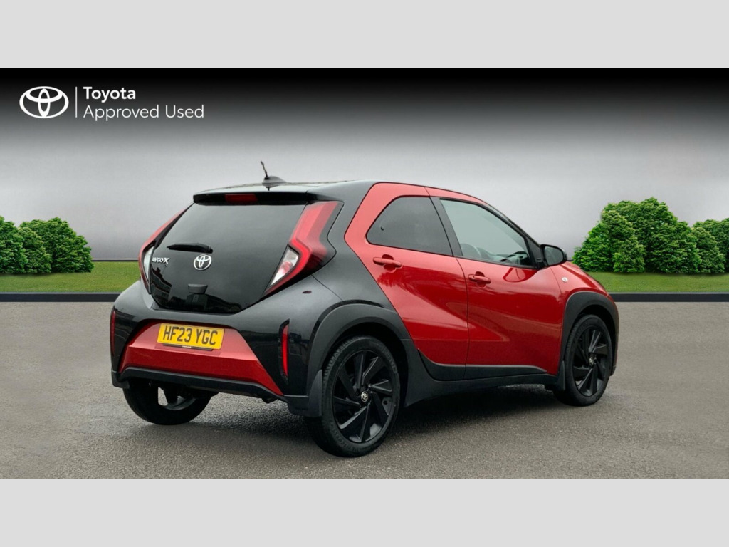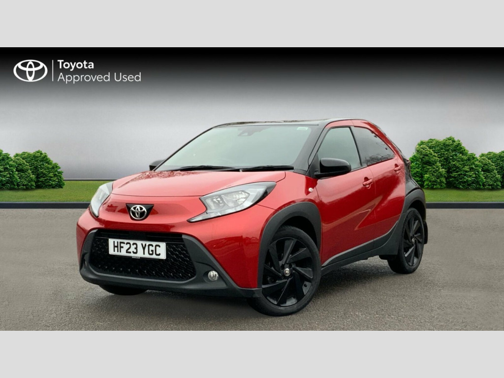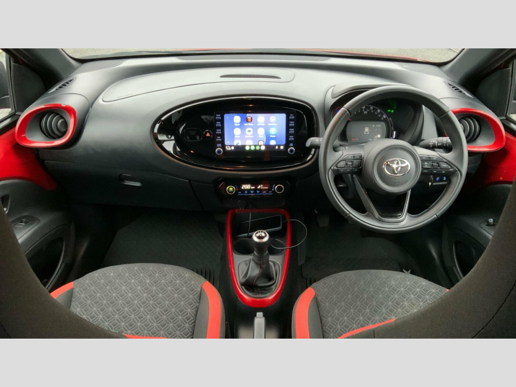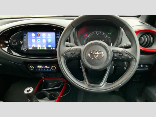 This 2023 Toyota Aygo X Edge is a Toyota manufacturer approved vehicle with a full dealership service history, having had only one owner and its last service completed on 2025-08-02 at 16235 miles. This Euro 6 compliant 1.0L petrol model comes in Fabric - Black and Chilli Red, 18in Alloy Wheels - Matt Black, 18in Alloy Wheels - 4-Double-Spoke - Bi-Tone Dark Grey - Machined-Face, 3-Spoke Leather Steering Wheel, 4.2in Colour Multi-Information Display Screen, 8in Toyota Touch Multimedia System, ABS - Anti Lock Braking System with Emergency Brake-Light System - EBS, Adjustable Speed Limiter -ASL- Switch on Steering Wheel, Analogue Speedometer, Audio Switches on Steering Wheel, Auto Headlights, Auto Wipers, Automatic Air Conditioning, Automatic Headlight Cut-Off, Black Door Moulding, Black Insert on Steering Wheel, Black Wheel Arch Moulding, Bluetooth Connectivity, Boot Door Scuff Plate, Centre Room Light, Child Safety Door Locks, Chrome Interior Door Handles, Chrome Surround on Air Conditioning Button, Clean Air Filter, DAB Digital Radio, Digital Tachometer, Door Handles - Body Coloured, Door Mirrors - Gloss Black, Electric Power Steering - EPS, Floor Mats, Follow Me Home Headlights, Front 12V Power Outlet, Front Bumper - Body Coloured, Front Fog Lights, Front LED Light Guide, Front Passenger Airbag On-Off Switch, Front Power Windows, Front Seat Belt Reminder, Gloss Black Upper Front Grille, HAC - Hill Start Assist Control, Headlight Cut-Off Reminder, Headlights - Halogen, Headrests - Front - Deco Art, ISOFIX Child Restraint System - 2x Rear, Intelligent Adaptive Cruise Control Switch on Steering Wheel, Key Reminder Warning, Lane Departure Alert with Switches on Steering Wheel, Manual Headlight Levelling, Manual Tilt Steering Wheel, Manually Reclining Driver and Passenger Seat, Manually Sliding Driver and Passenger Seat, Multi-Info Switches on Steering Wheel, Pollen Air Filter, Power Back Door, Power-Adjustable - Electric - Heated Door Mirrors, Pre-Collision System with Emergency Steering Assist, Privacy Glass - Rear Side Windows, Rear Headrests x2, Rear Seat Belt Reminder, Rear Window Defogger - De-Icer, Rear Window Wiper, Remote Power Door Locks, Reversing Camera, Roof - Head Lining Adhesive Head Lining, Seats - 50-50 Split Folding Rear, Seats - Drivers Height Adjustment, Short Antenna, Smartphone Integration - Apple Car Play and Android Auto, Speakers x4, Speed Limiter Information, Storage - Rear Door Pockets, Supplemental Restraint System - SRS - Airbags - 6 Airbags, Telephone Switches on Steering Wheel, Toyota Safety Sense, Traction Control - TRC, Tyre Pressure Warning System, Tyre Repair Kit, USB Connector, VSC - Vehicle Stability Control, Vanity Mirror on Driver and Passengers Sun Visor, Variable Intermittent Windscreen Wipers, Voice Recognition Switch on Steering Wheel, eCall Emergency Call System