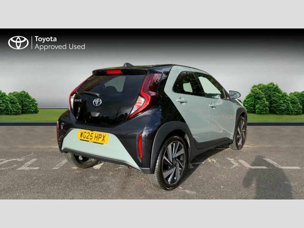This 2025 Toyota Aygo X VVT-i Edge presents an exceptional opportunity with an incredibly low mileage of just 1240 miles, making it virtually as new. As a Toyota manufacturer approved vehicle, it comes with the reassurance of a 12 month warranty and a fresh 12 month MOT provided on purchase. This one owner, Euro 6 compliant model boasts a 1.0L petrol engine and features the desirable Edge trim. Inside, you'll find a host of modern conveniences including automatic air conditioning, Bluetooth connectivity, and a reversing camera for effortless parking. The Toyota Safety Sense suite, complete with adaptive cruise control accessible via the steering wheel, further enhances your driving experience.